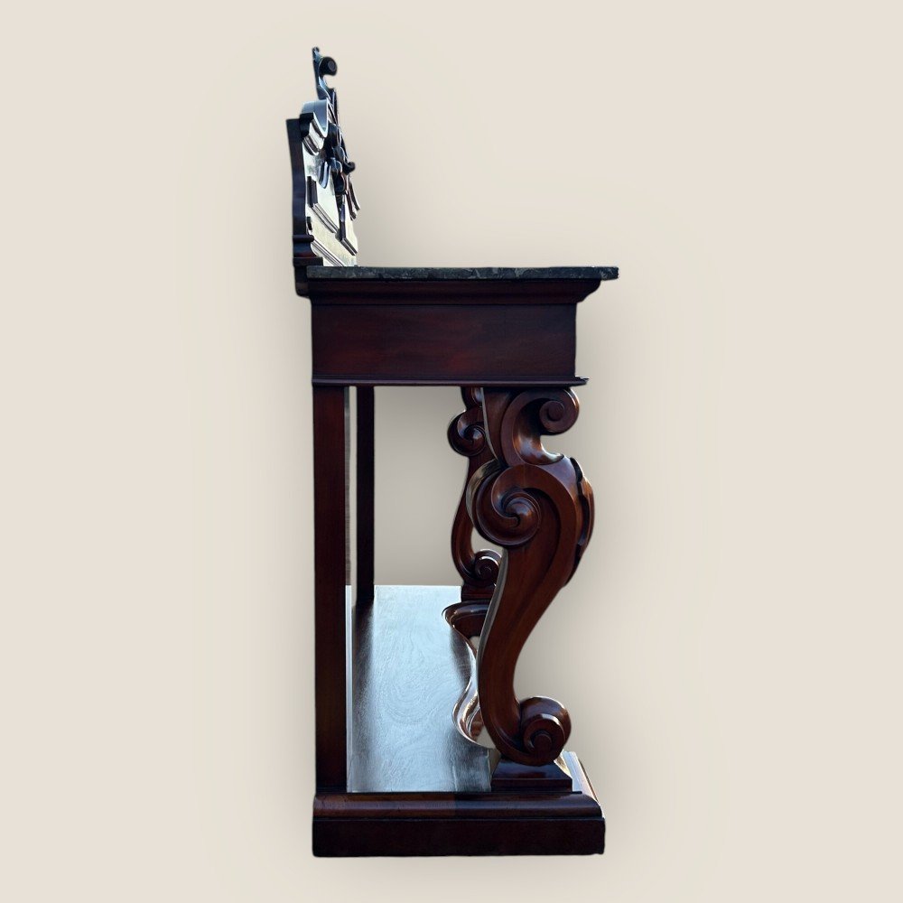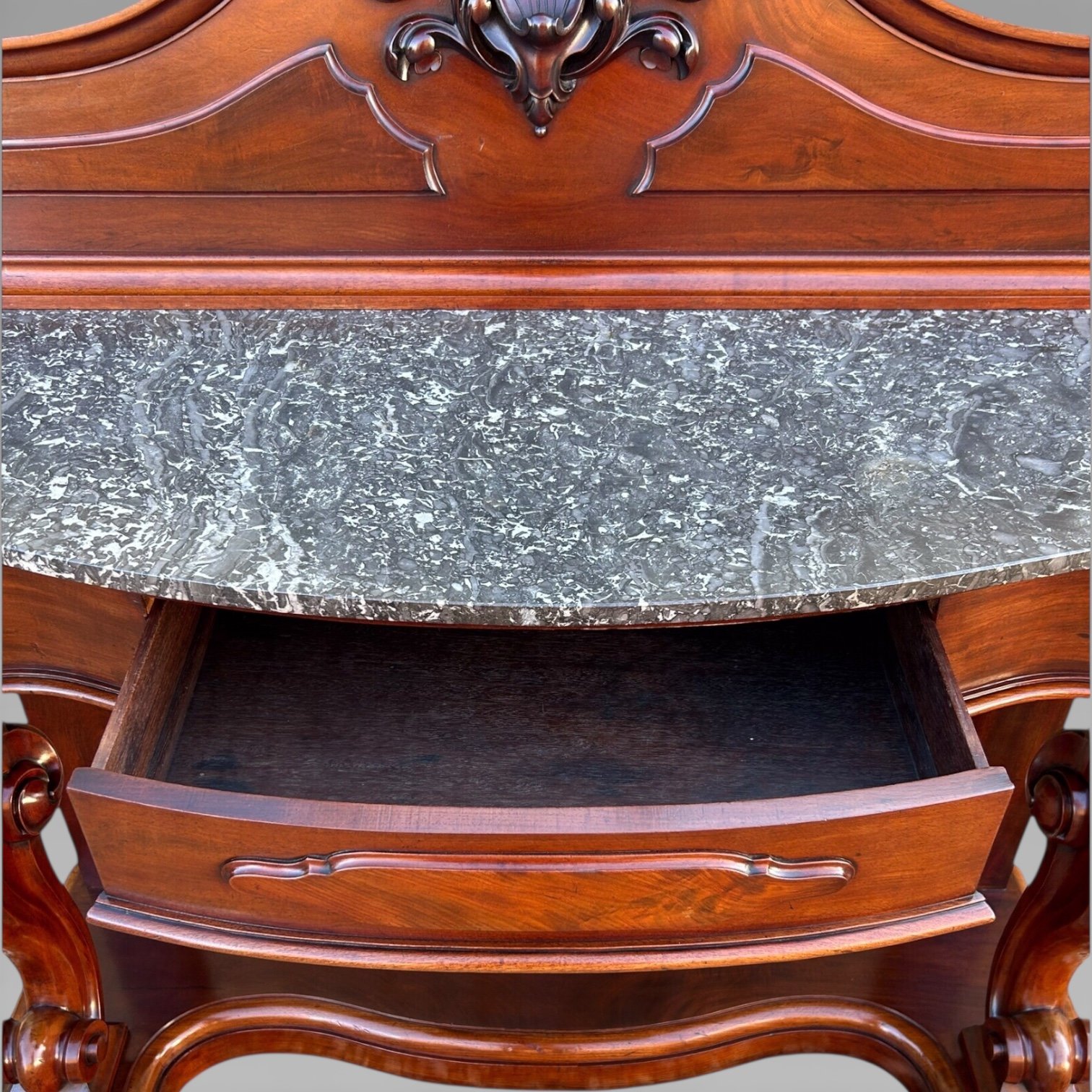 Antique Victorian Mahogany & Marble Topped Carved Console Wall Table With Drawer