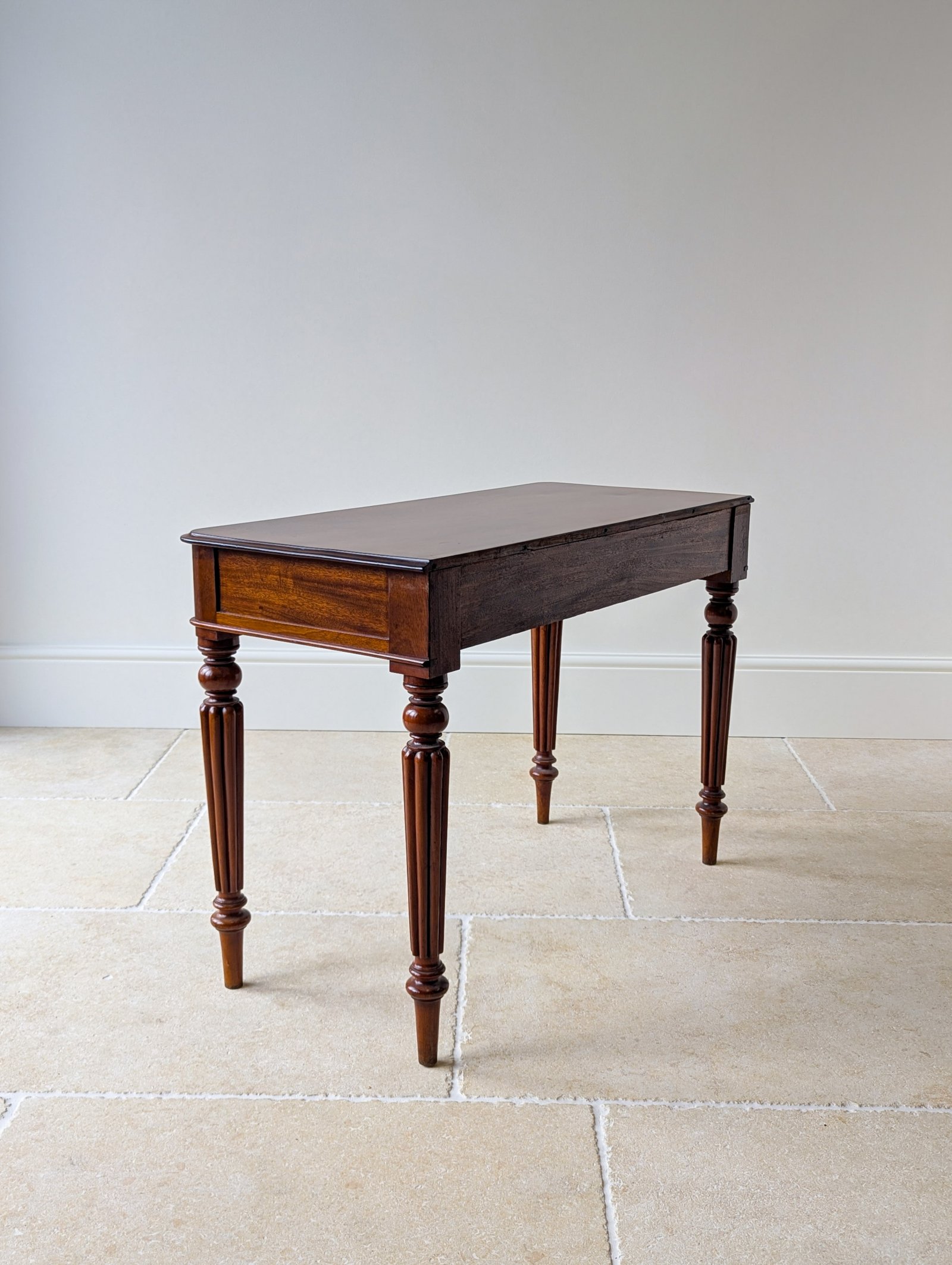 Retaining all the lightness and restraint of earlier 19th-century taste while offering the practicality of a later mid-Victorian piece. Its relatively compact scale makes it well suited for use as a writing or laptop desk, dressing table or side table in a sitting room, hallway or study.