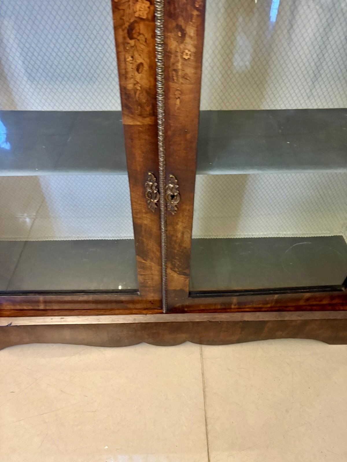 Antique Victorian Quality Figured Burr Walnut & Marquetry Inlaid Display Cabinet