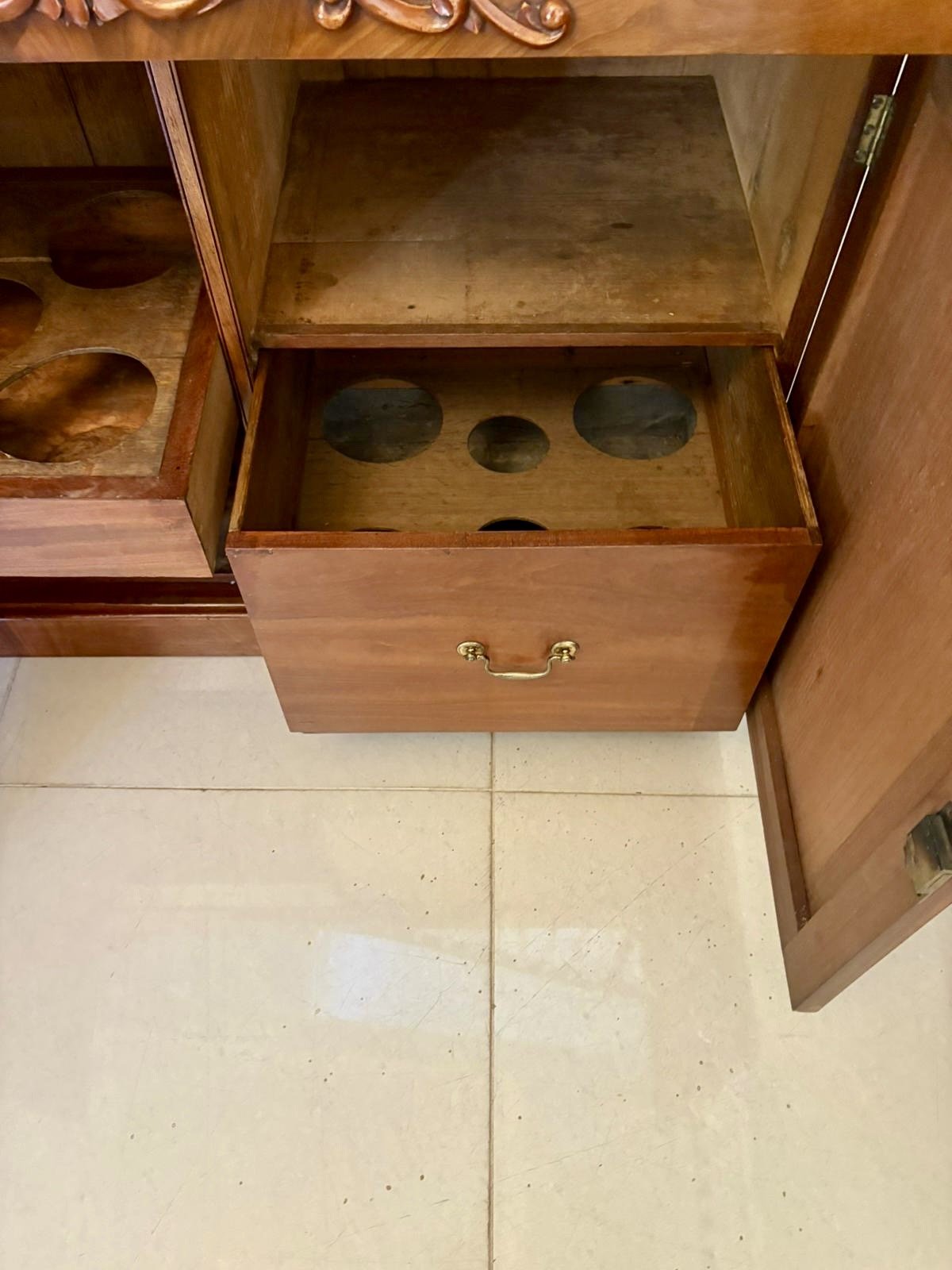 This is a magnificent statement piece, ideal for a dining room, hallway or drawing room, offering both display space on the upper tiers and concealed storage below.