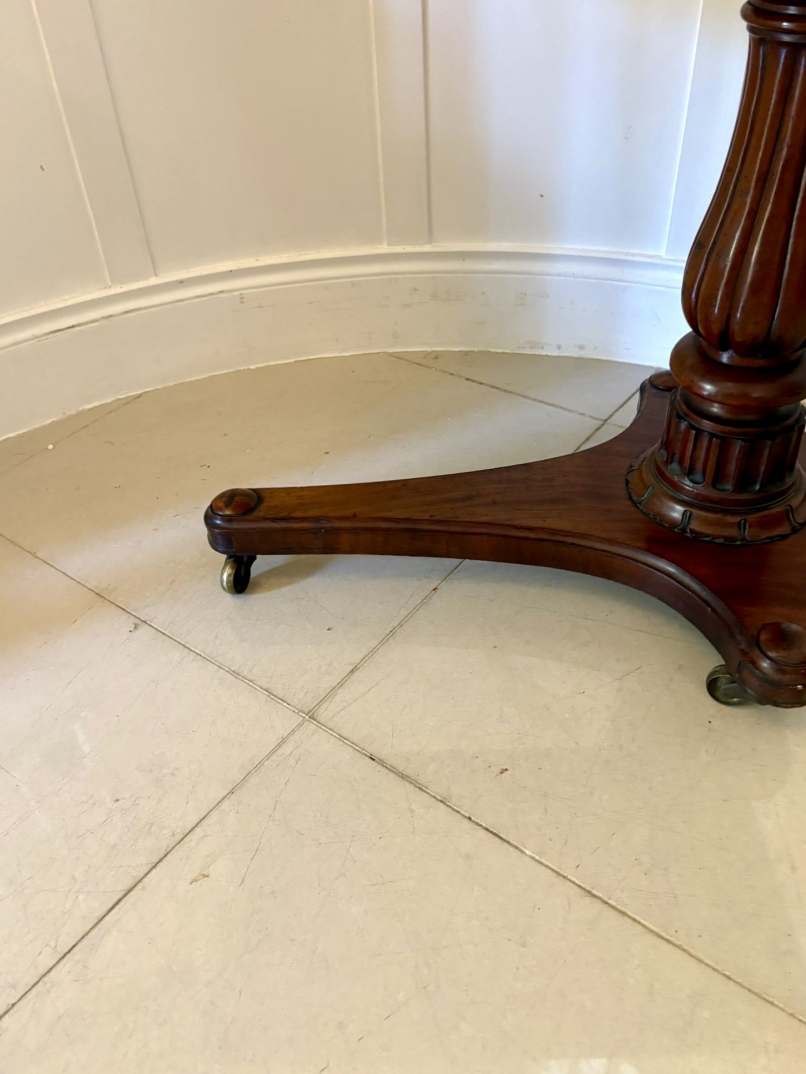 Antique Victorian quality mahogany adjustable reading/side table having an adjustable raising rectangle shaped quality mahogany top supported by a shaped reeded carved pedestal column standing on a platform base with original castors