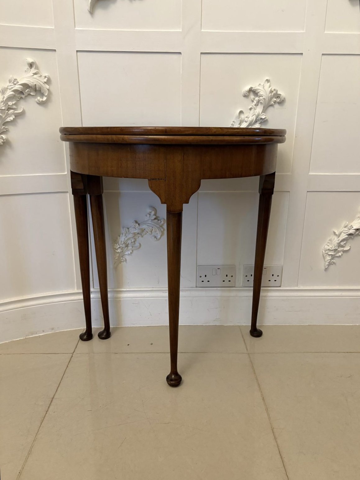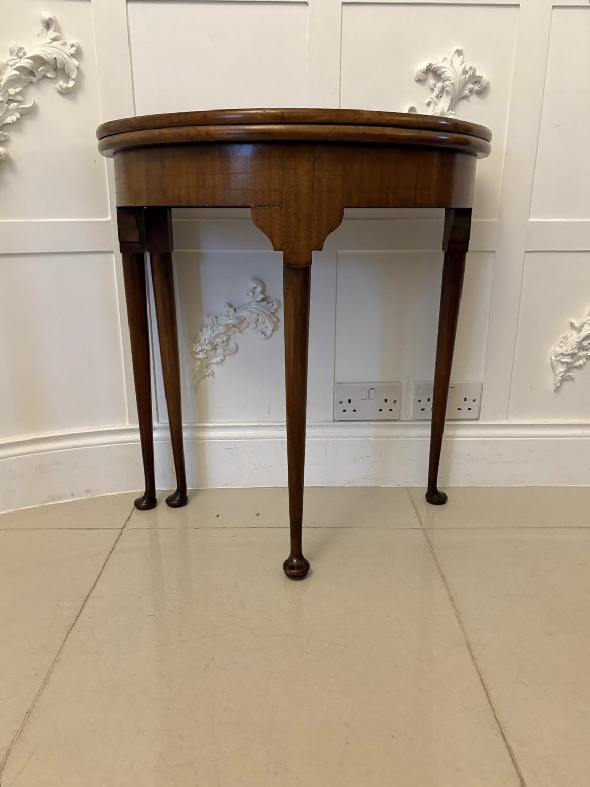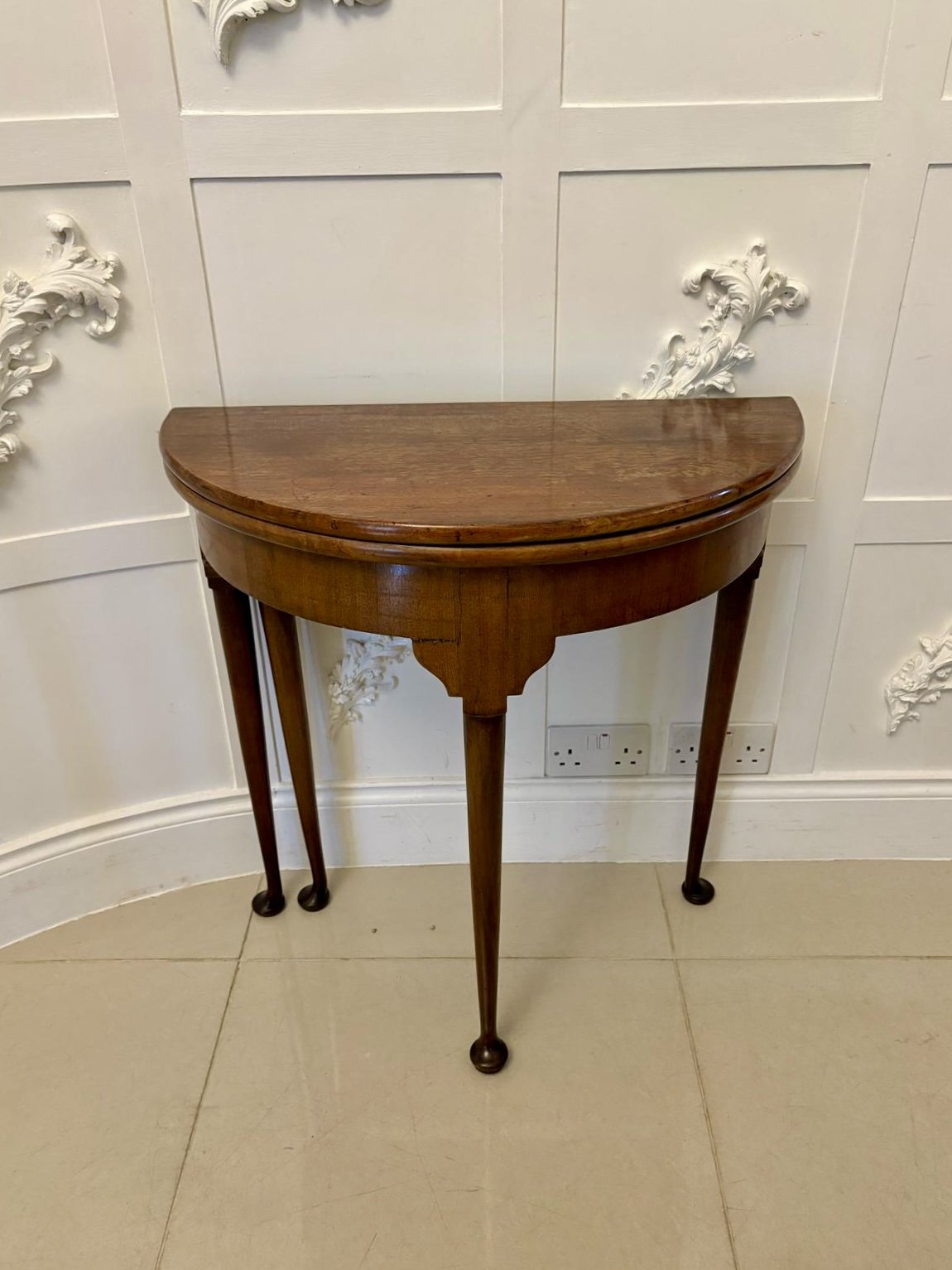 Antique Victorian Quality Mahogany Demi Lune Shaped Card Table