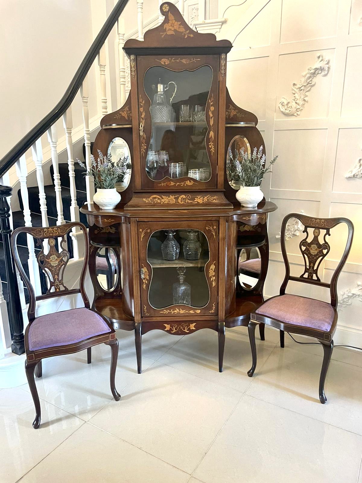 Antique Victorian Quality Marquetry Inlaid Mahogany Display Cabinet