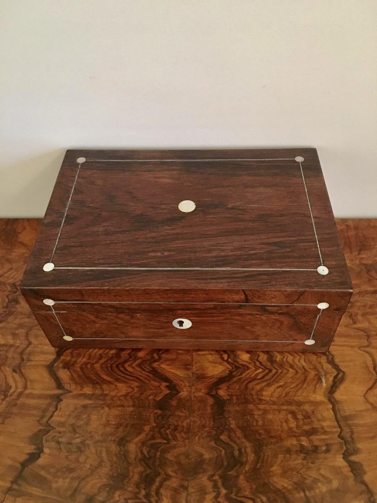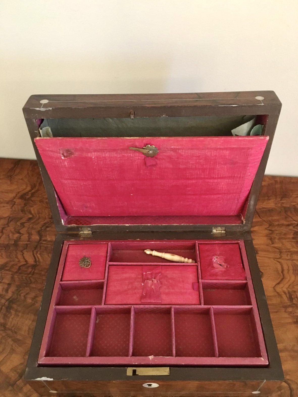 Antique Victorian Rosewood & Mother-Of-Pearl Jewellery/Sewing Box
