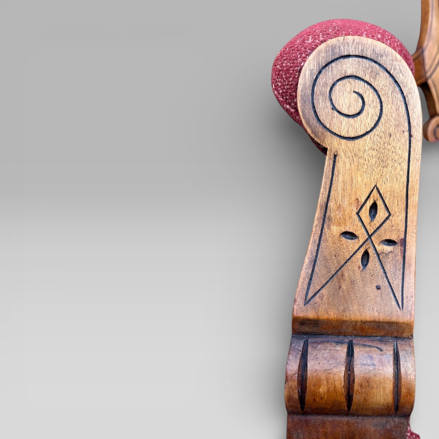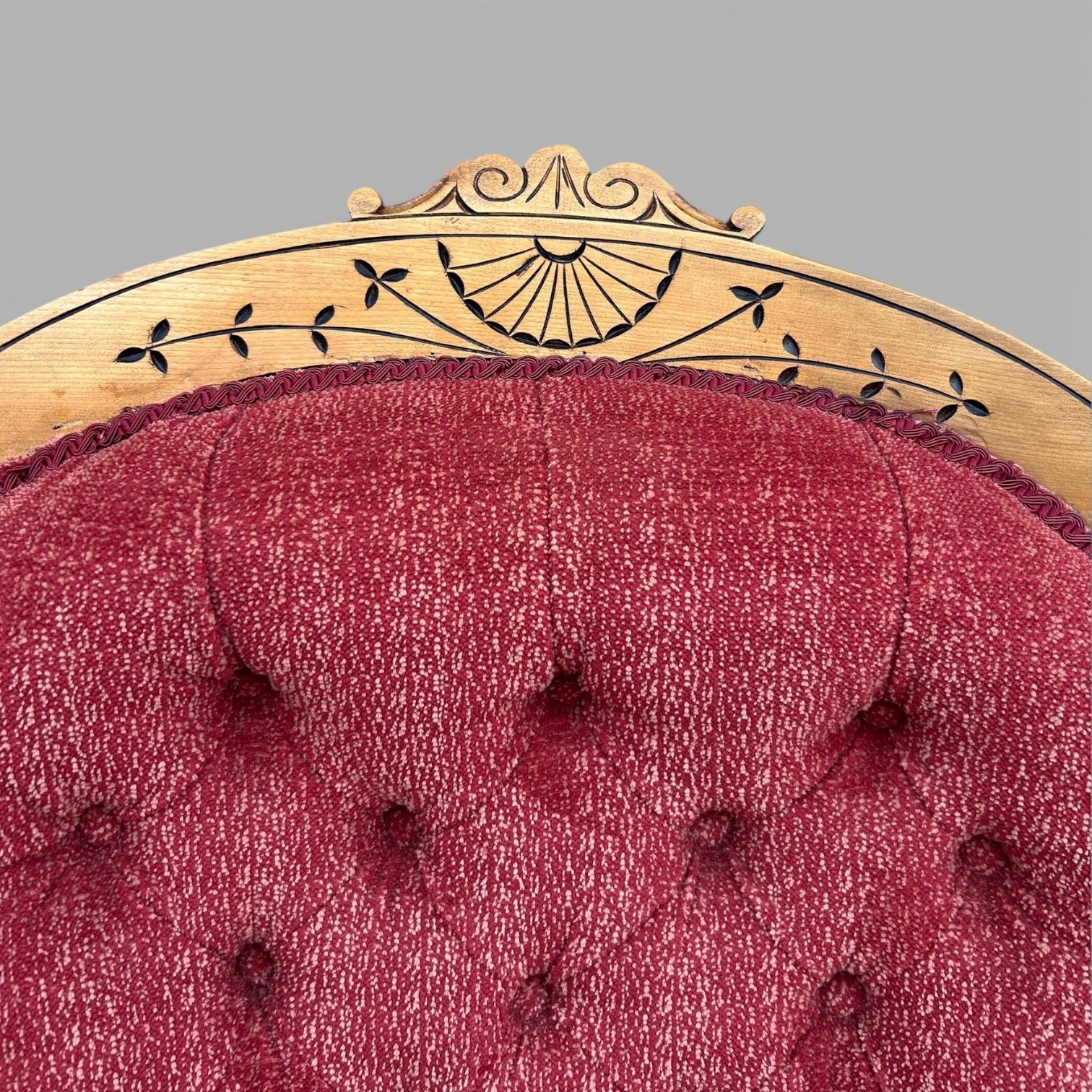 Antique Victorian Satin Burch Red Button Back Armchair with Turned Legs