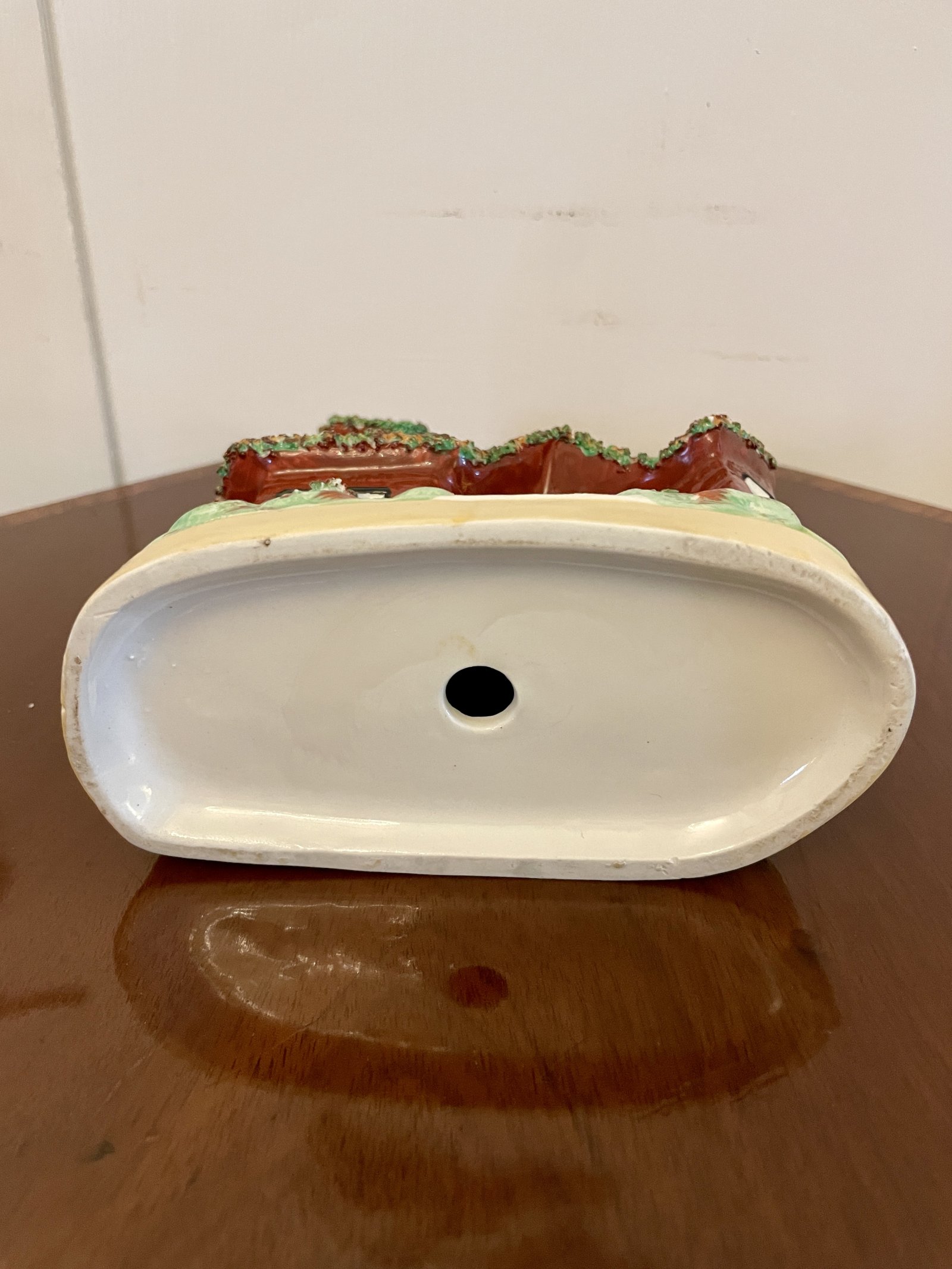 Antique Victorian Staffordshire flatback house of a hand painted thatched three storey cottage.
