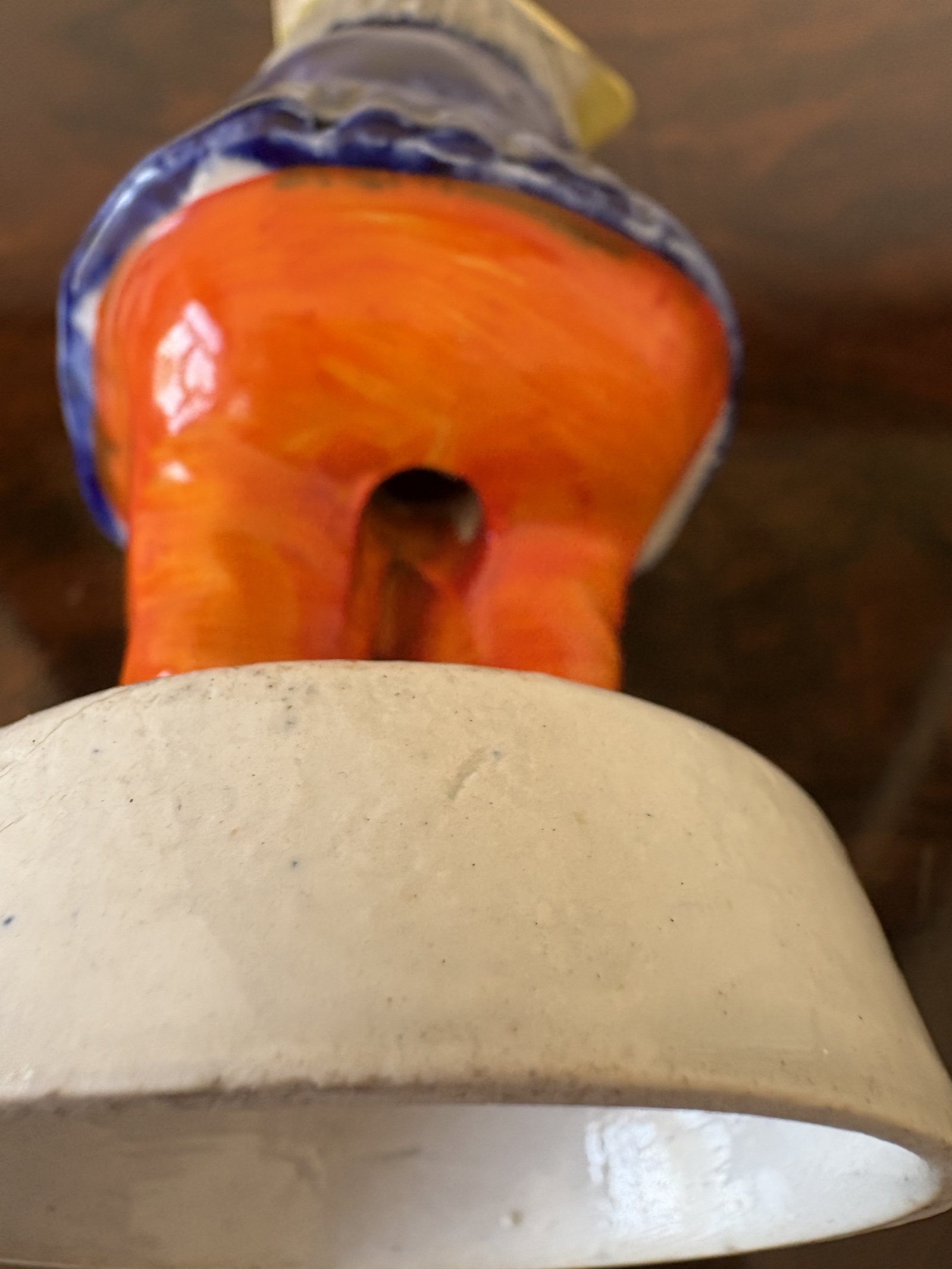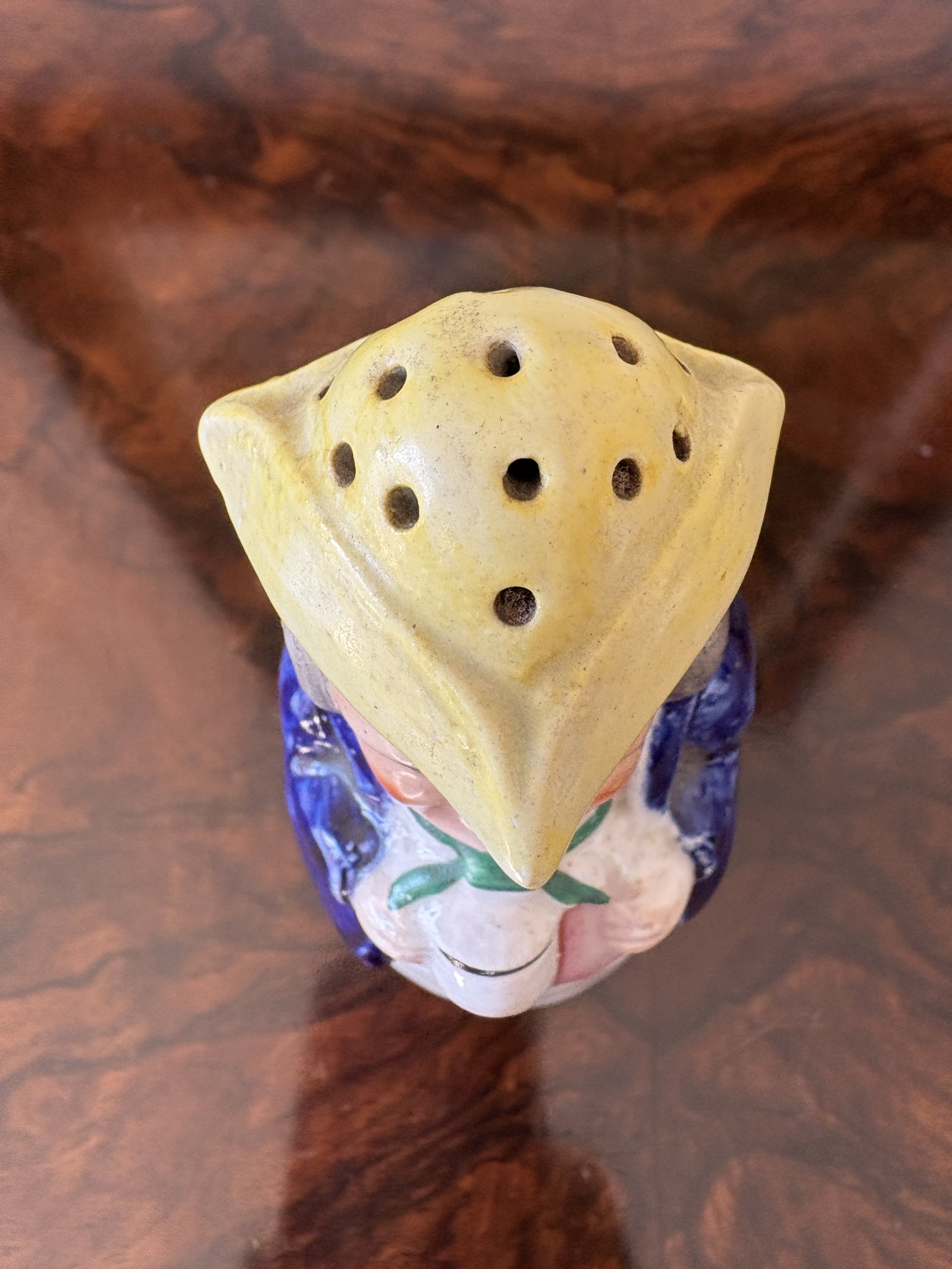 Antique Victorian Staffordshire Toby Pepperpot figure with a hole to the base of the figure for pepper and holes to the top of the hat to dispense.
