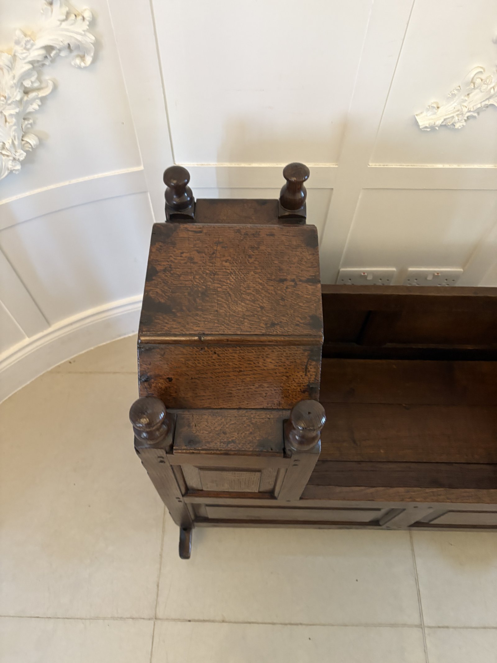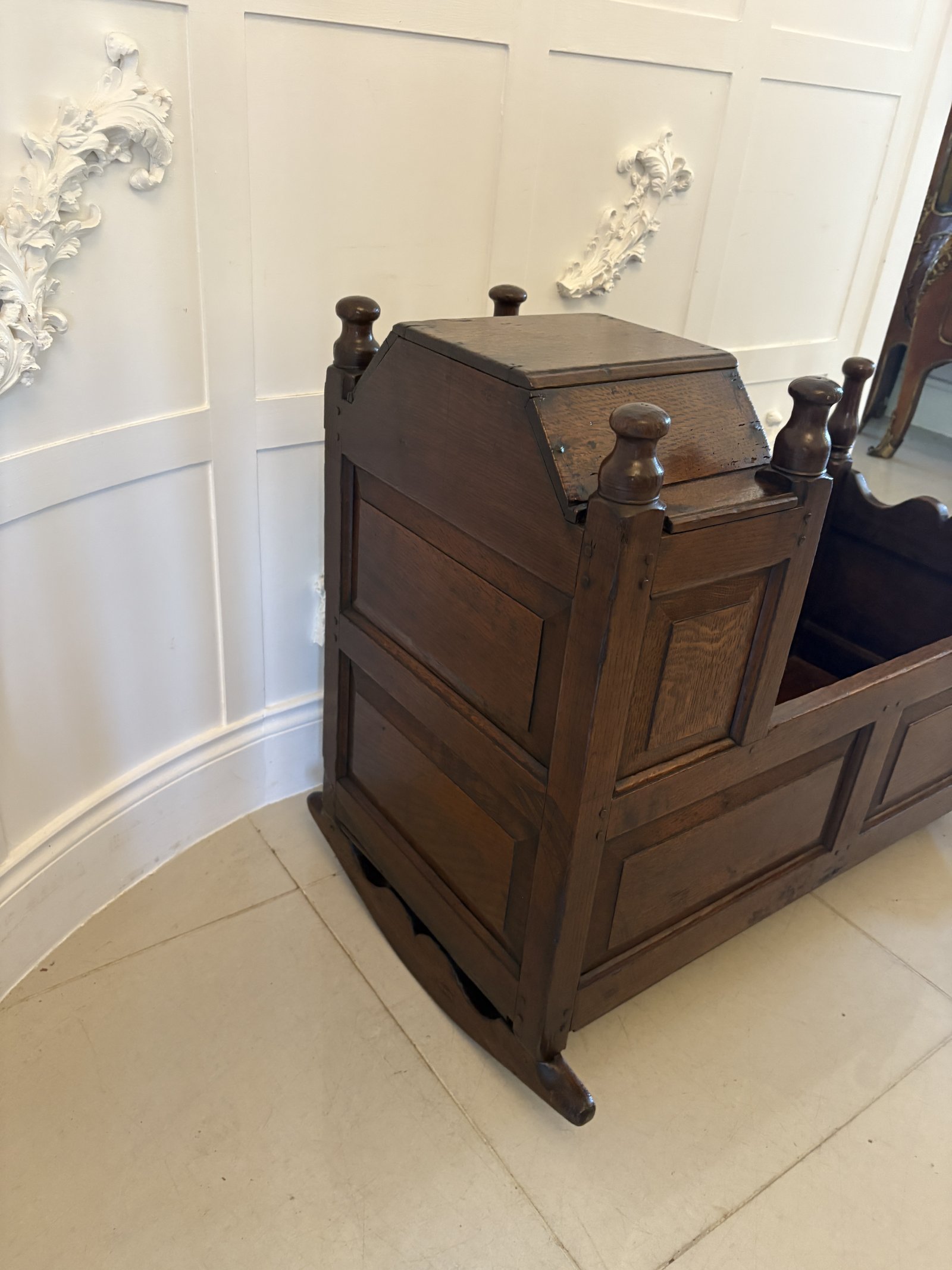 Antique William and Mary Quality Oak Panelled Rocking Crib