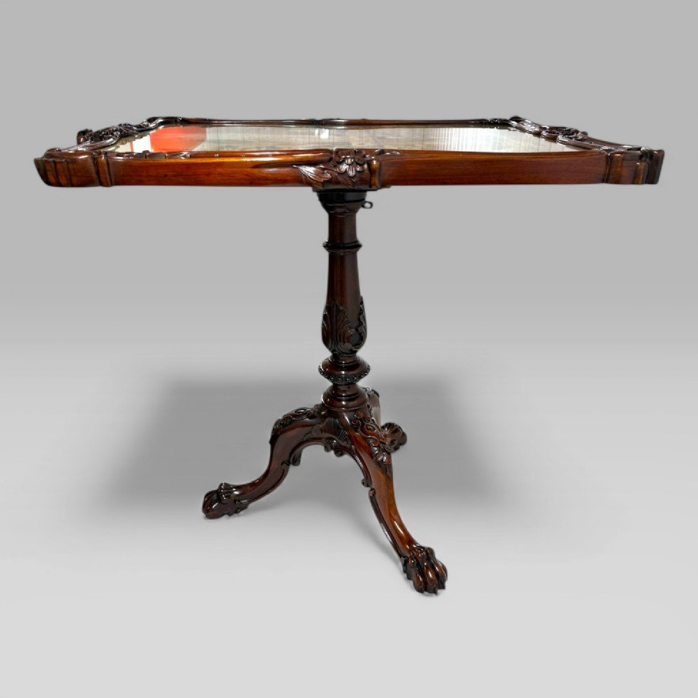 Made by one of Britain’s most esteemed cabinet-making firms, this is a fine English William IV (1830–1837) rosewood carved tilt top table, executed in the manner of Gillows of Lancaster.