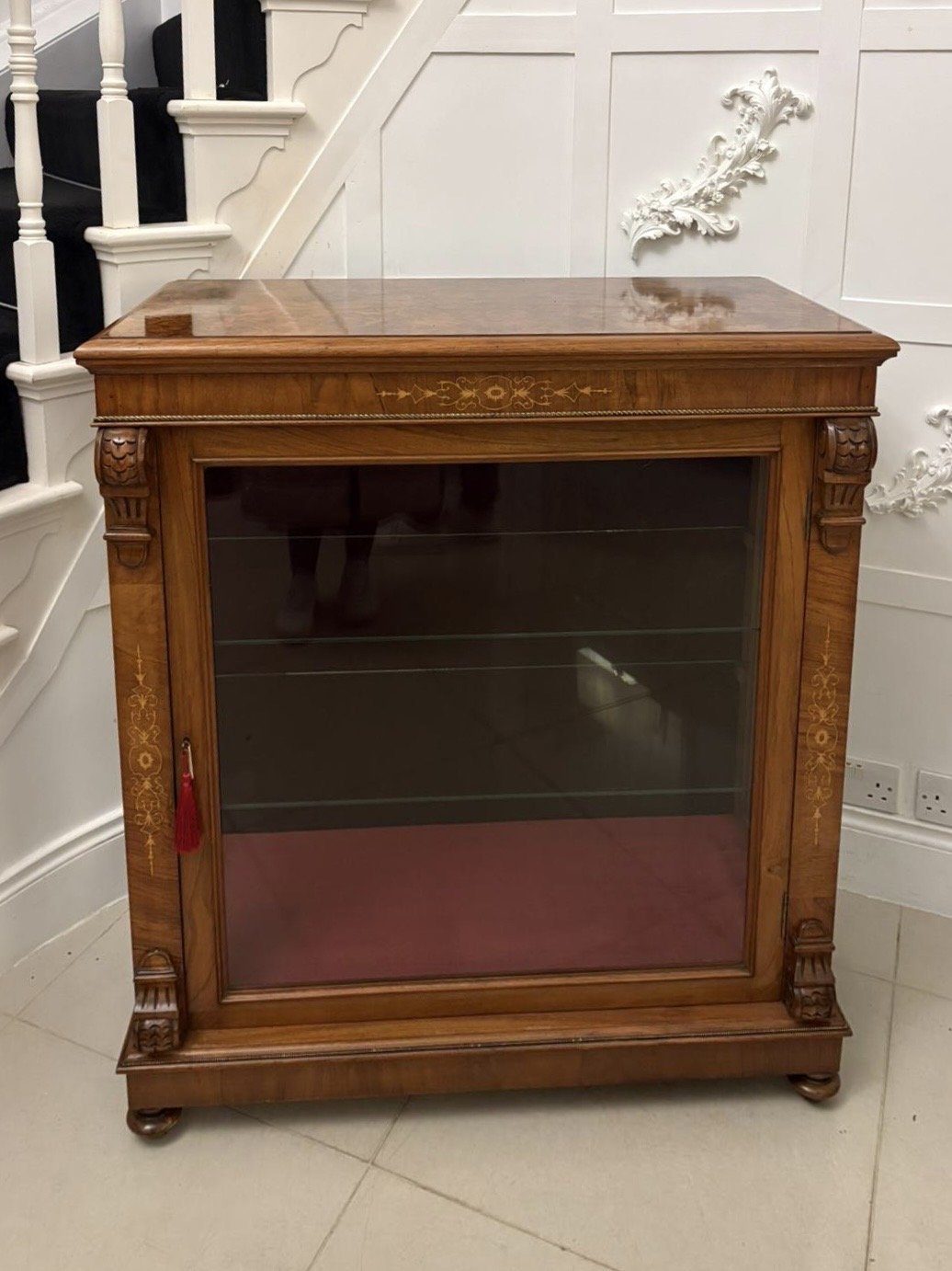A handsome antique Victorian mahogany side / display cabinet distinguished by its fine inlay and elegant proportions.