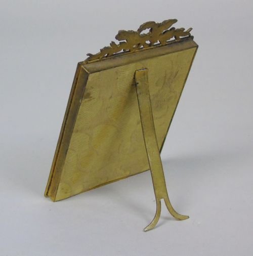 This is a delightful, original painting after Francois Boucher in its original high quality gilt bronze ormolu frame dating from around 1890. The painting is in bold gouache colours and depicts a musical troop in beautiful woodland setting. The easel frame is a heavy gilt bronze ormolu with attractive Regency style crest with torch and quiver of arrows.