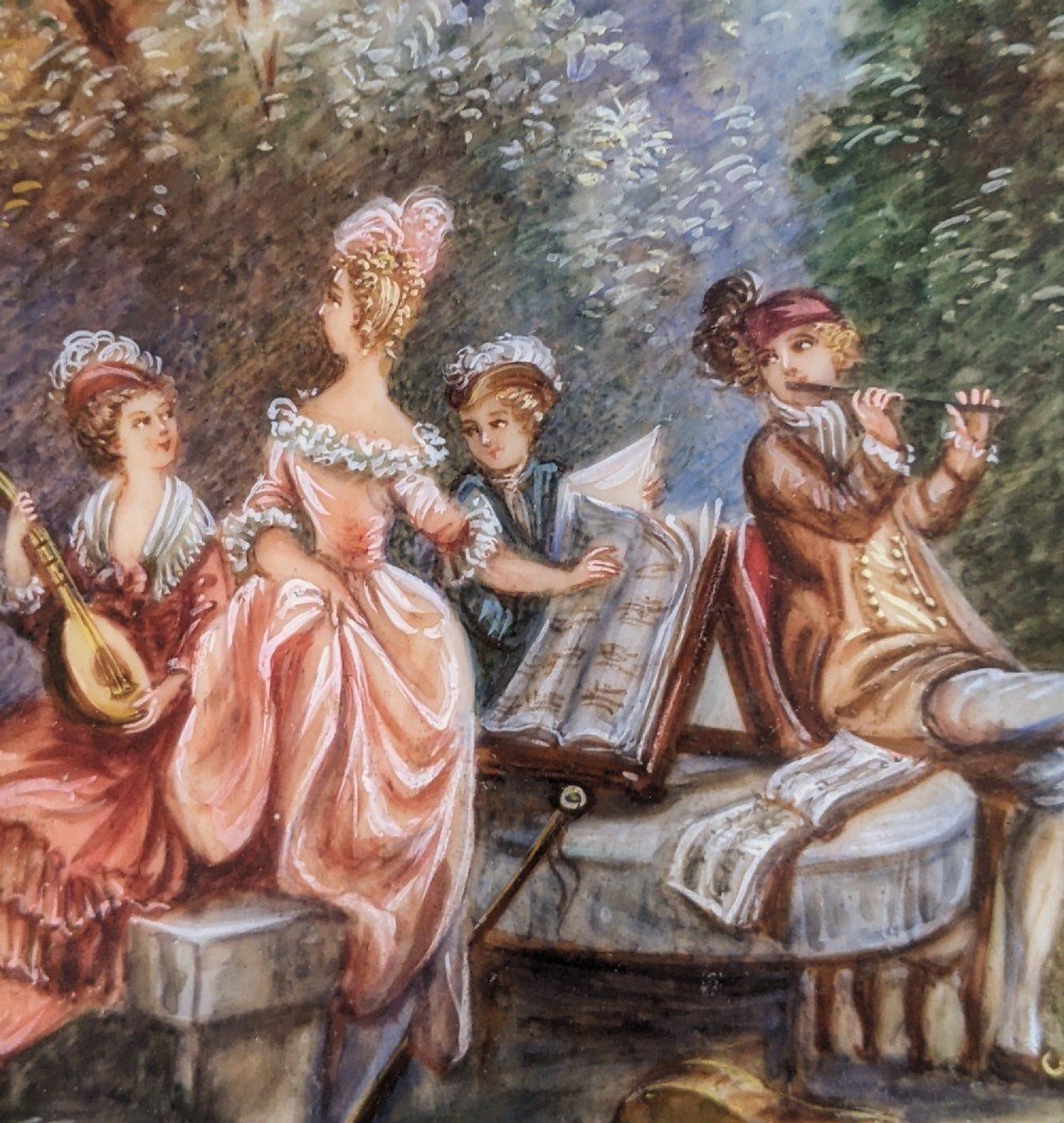 Beautiful Miniature Painting Musicians In Woodland After Boucher