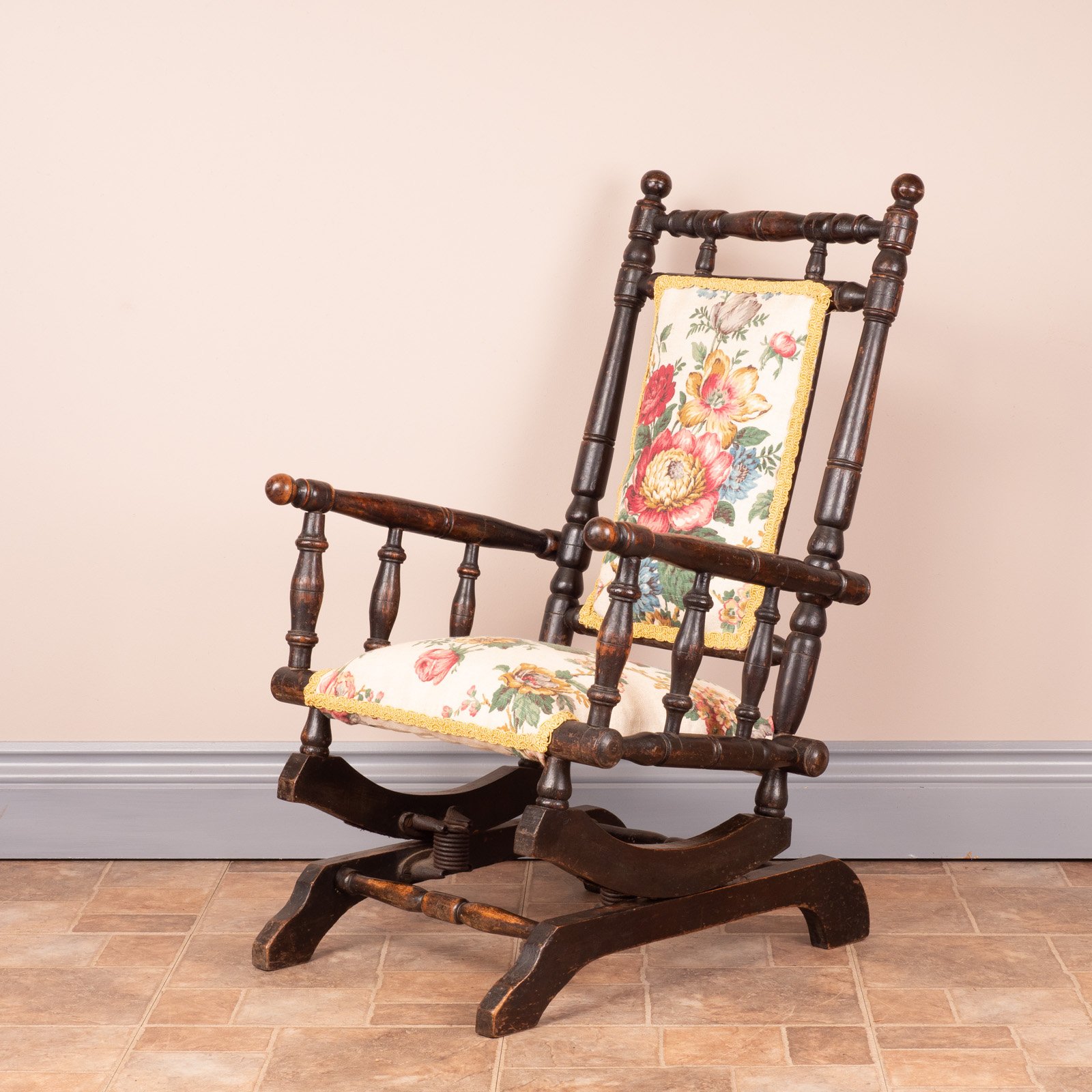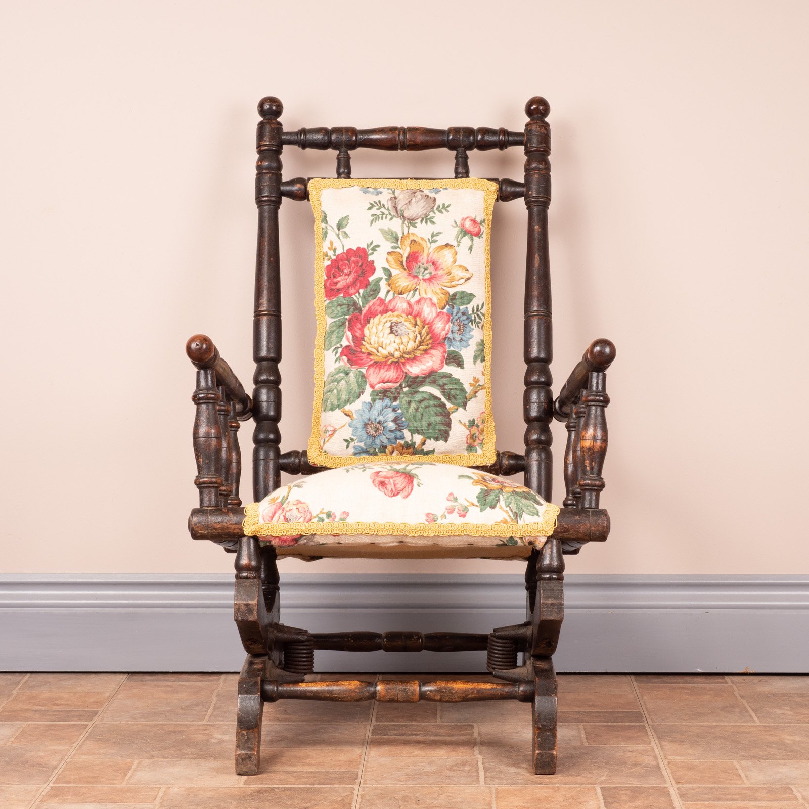This charming Childs Rocking Chair has no doubt seen many a youngster rocking away to their hearts content. With a good-sized base to aid stability, the metal rocker springs help to keep movement under control.