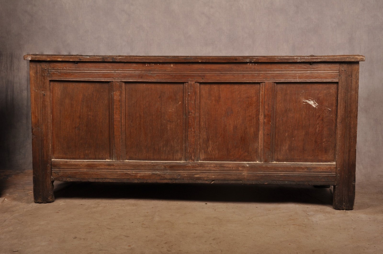 See shipping detailsAn outstanding and large Westmorland Coffer, dated 1673 and initialled M I. The quality of the carving is first class, it is both neatly executed and deeply cut. Having interwoven patterns of celtic influence to the panels and rails with guilloche work to the central uprights. It has a good panelled top and superb colour throughout. The ring hinges have been replaced early in the life of the piece, all other parts are original apart from the bottom boards, the coffer stands well having lost no hight and retaining all original feet.