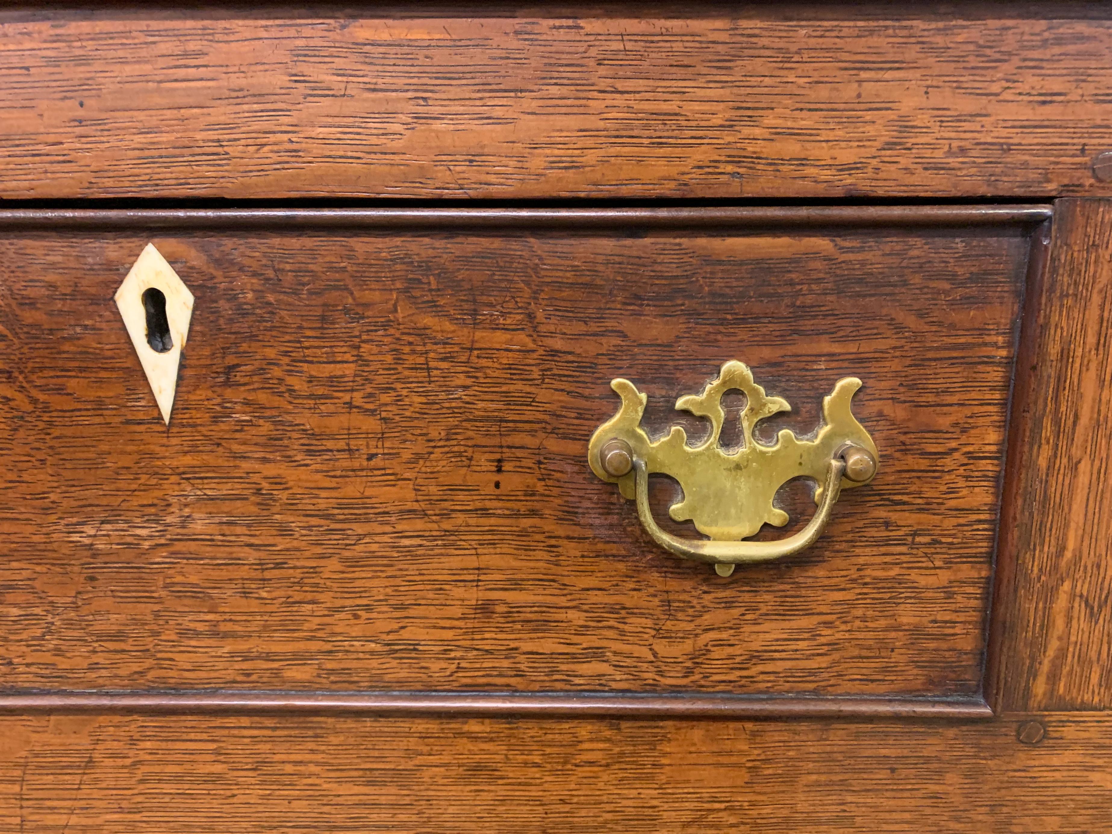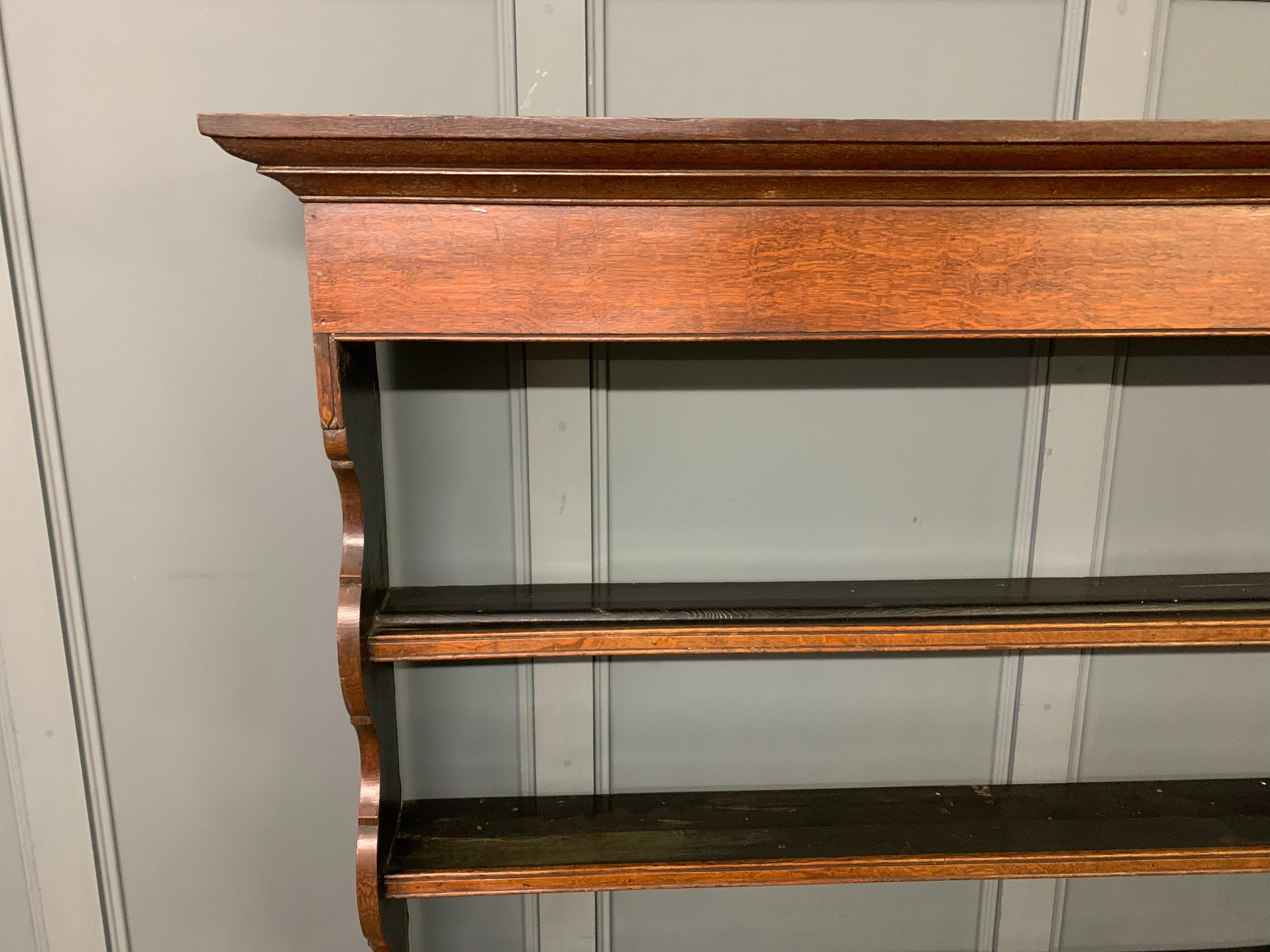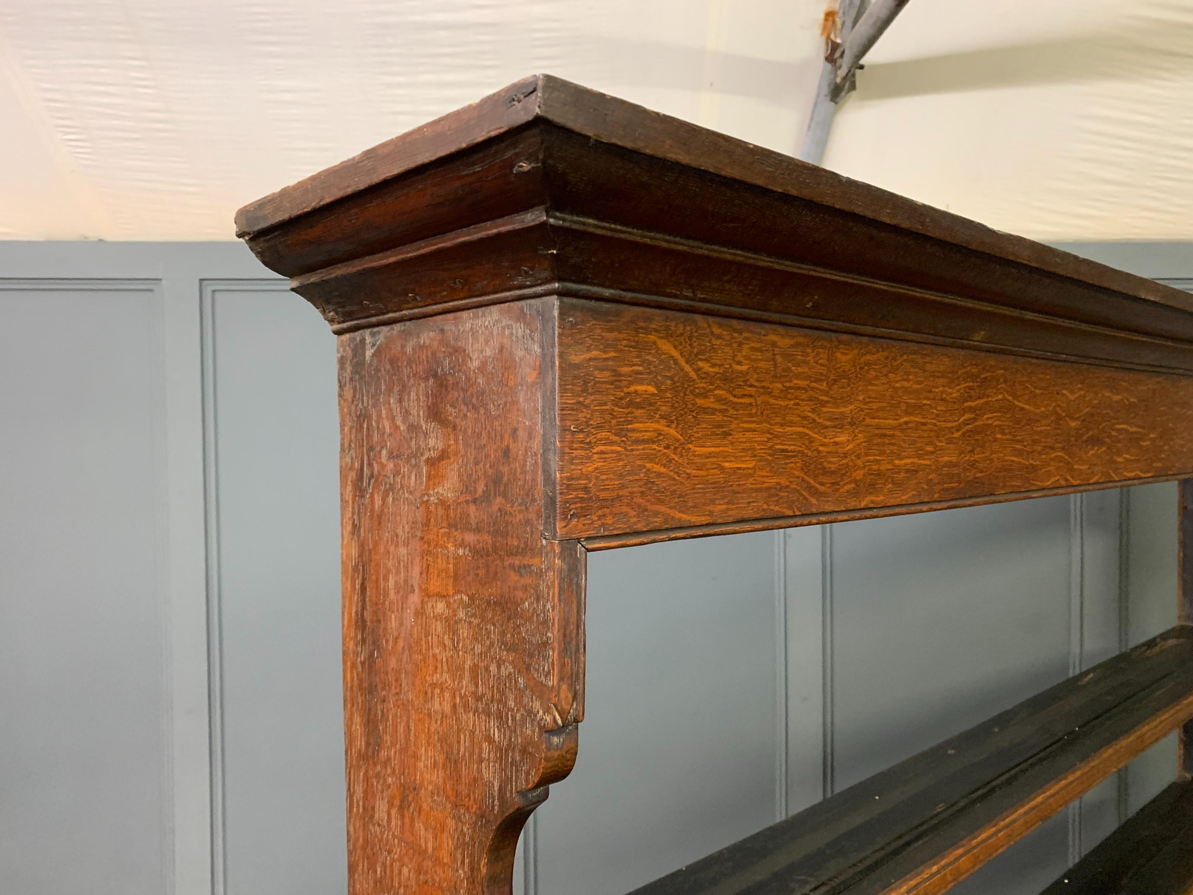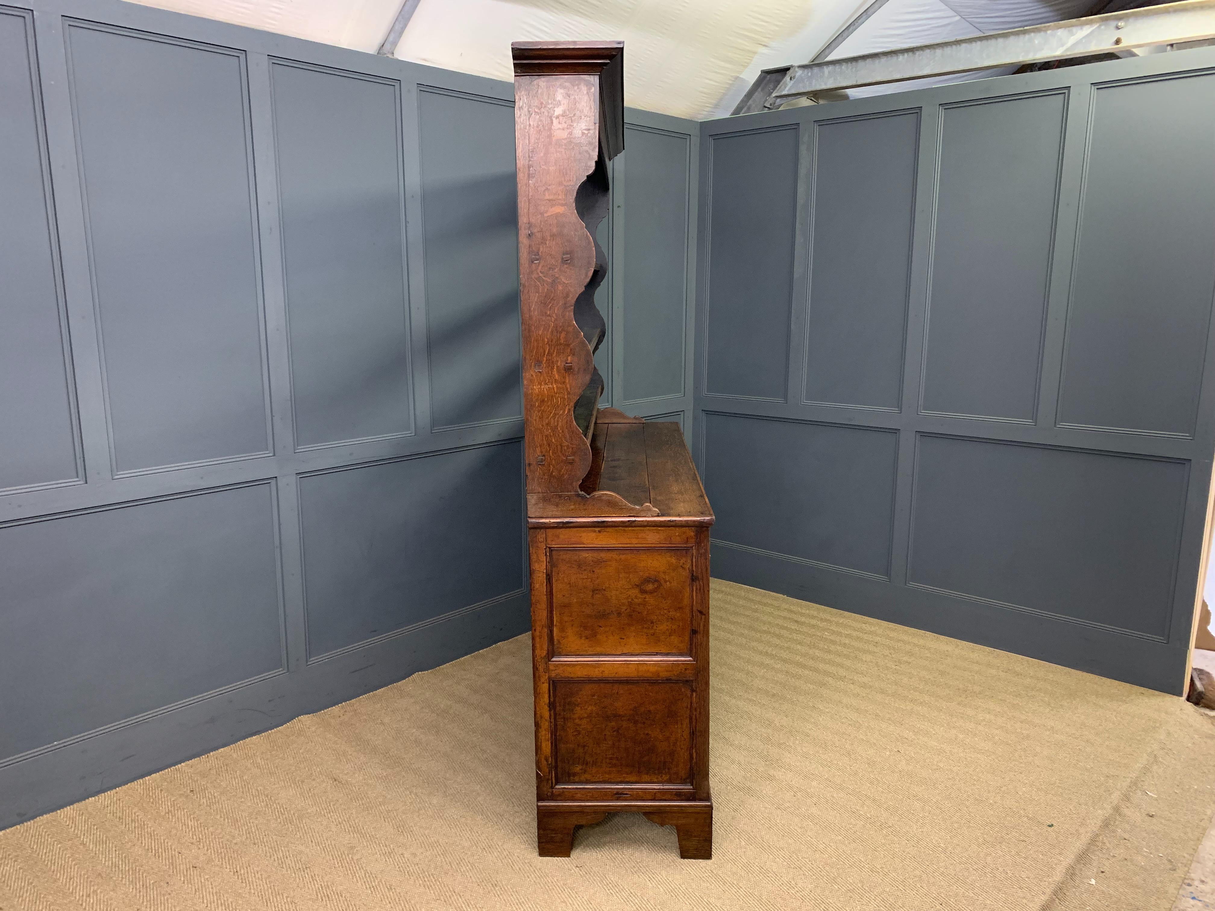 A very good early 19th century Welsh oak dresser. Well constructed in solid oak with bone escutcheons and solid brass handles. The rack with 3 shelves for display. The base section with 3 drawers over 2 cupboards and 3 dummy drawers. Cleaned and waxed in our workshops and now offered for sale with a good colour and patina. Packed full of rustic charm. Plates not included.