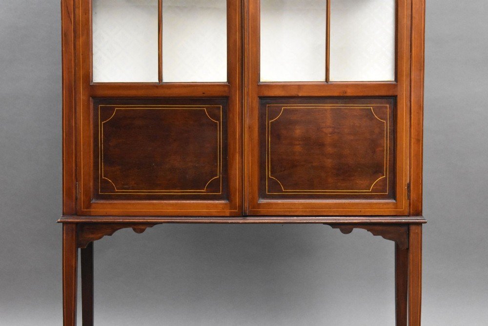 A refined and elegant Edwardian mahogany display cabinet of slender proportions. Dating from circa 1910, this cabinet captures the lightness and symmetry typical of the Edwardian period, with fine craftsmanship evident throughout. Ideal for showcasing treasured collections, this piece combines decorative presence with practical function.