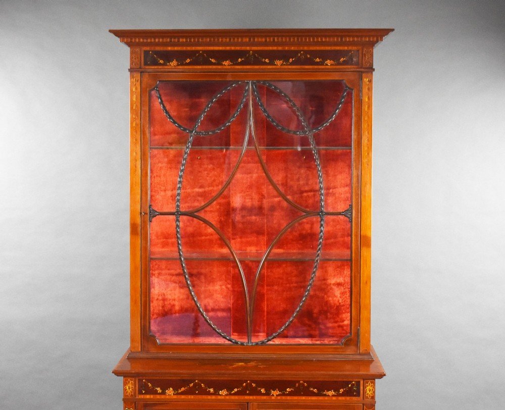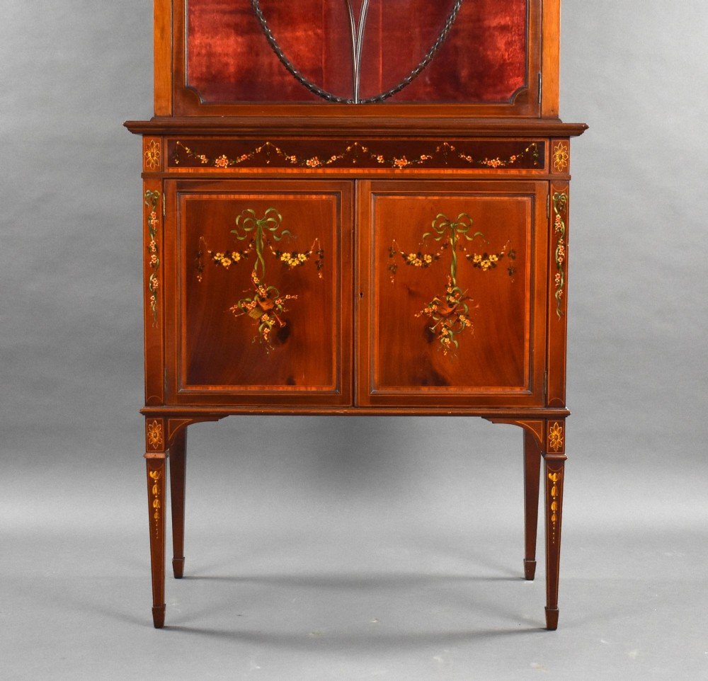 Edwardian Mahogany Satinwood Hand Painted Display Cabinet