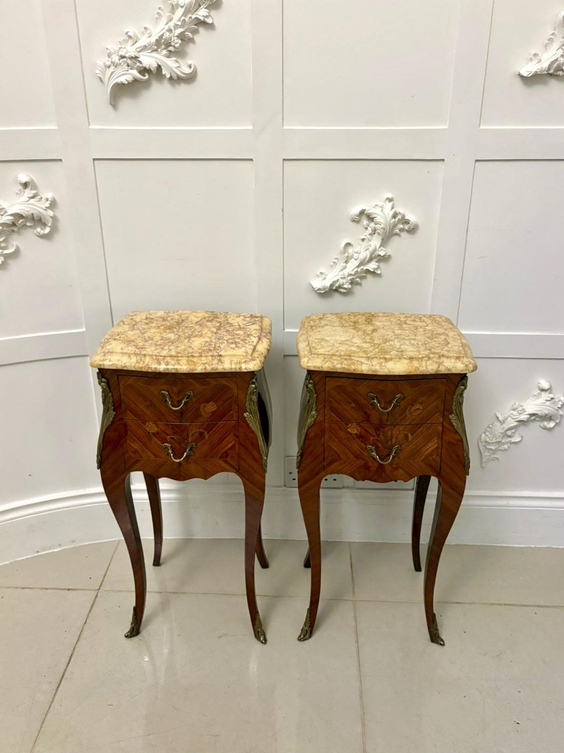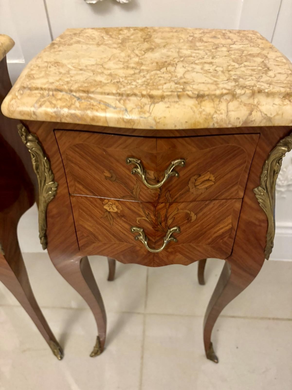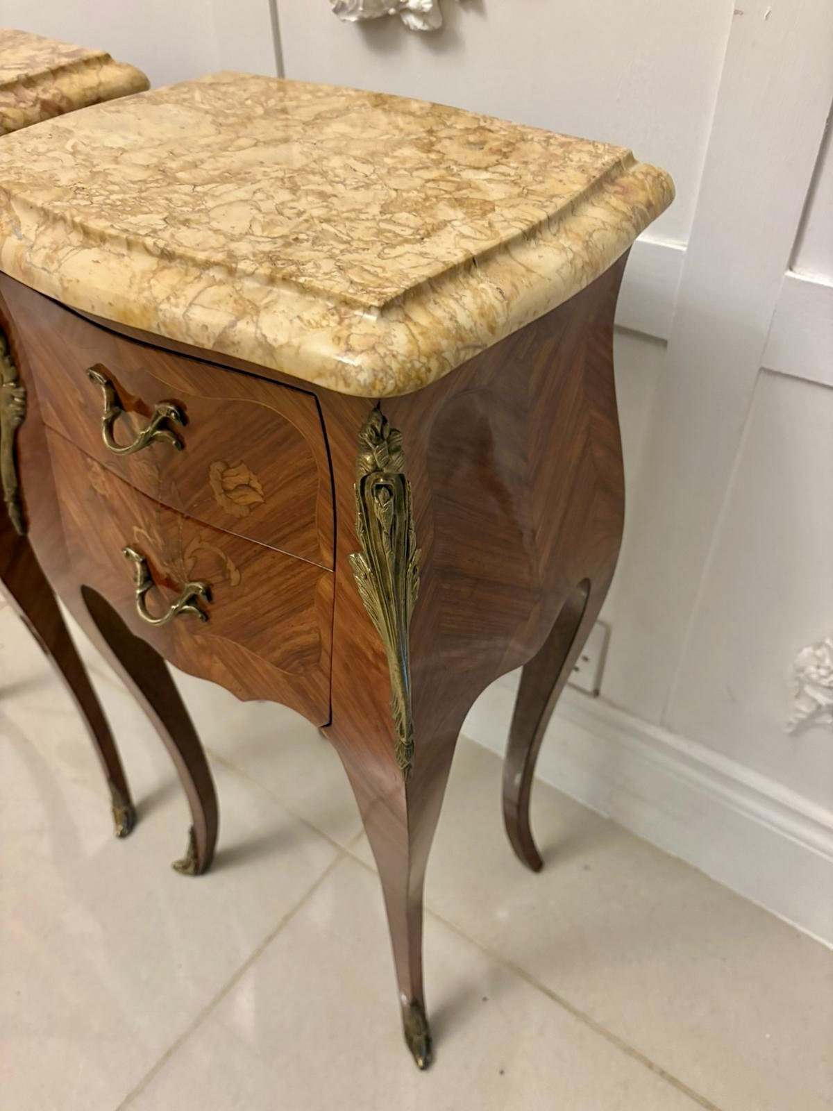 Exceptional Antique Pair of Louis XV Style Kingwood and Marble-Top Bedside Cabinets