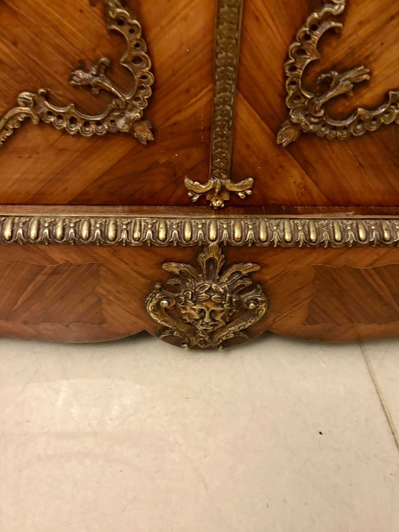 Inside, the cabinet offers a shelved storage compartment blending practicality with decorative artistry. Its craftsmanship, materials and ornamentation reflect the high standards of French cabinetmaking from this period.