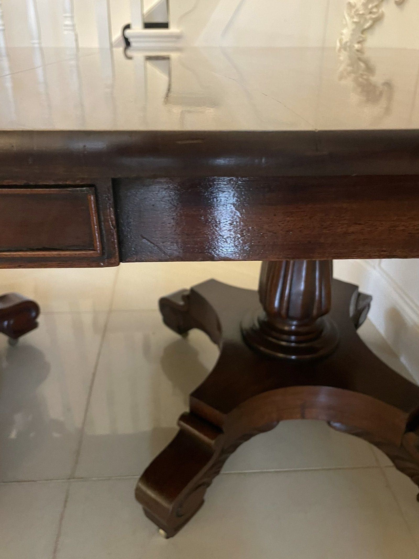 Exceptional Quality Antique Regency Figured Mahogany Triple Pedestal 10/12 Seater Dining Table