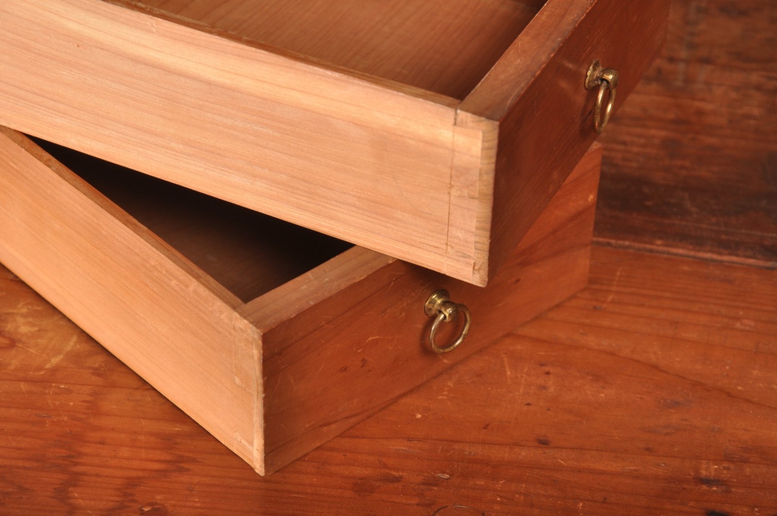 The handles and hinges are all original and keys work all locks. The piece is in exceptional condition throughout with all original backboards unusually also made in Ceder.