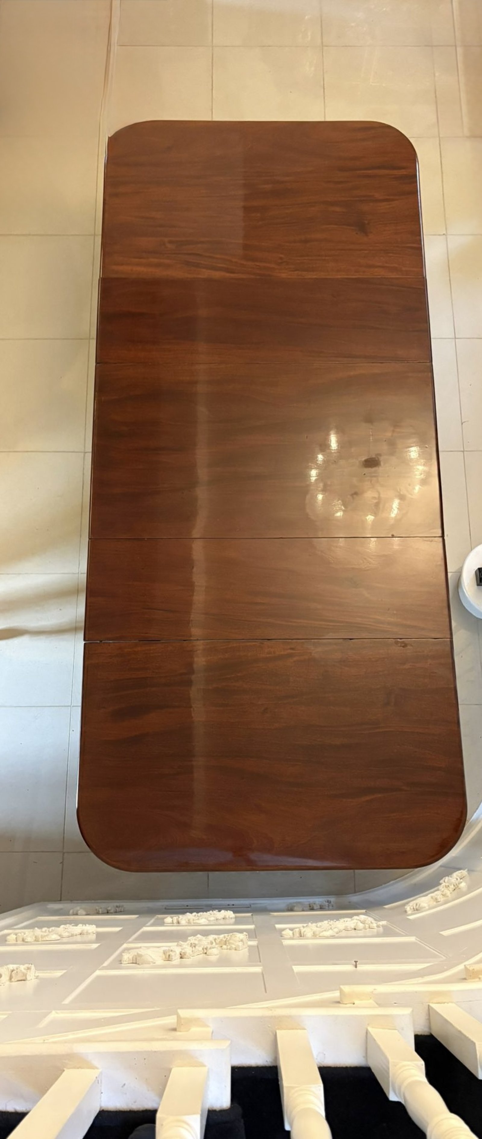 Extended with one, two, or all three leaves for various lengths (seating up to twelve)