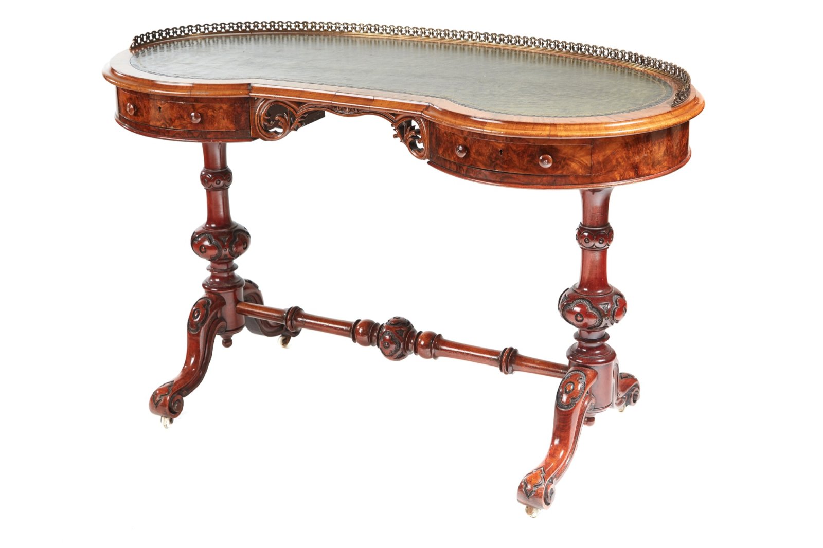Fine Antique Victorian Burr Walnut Kidney Shaped Writing Desk