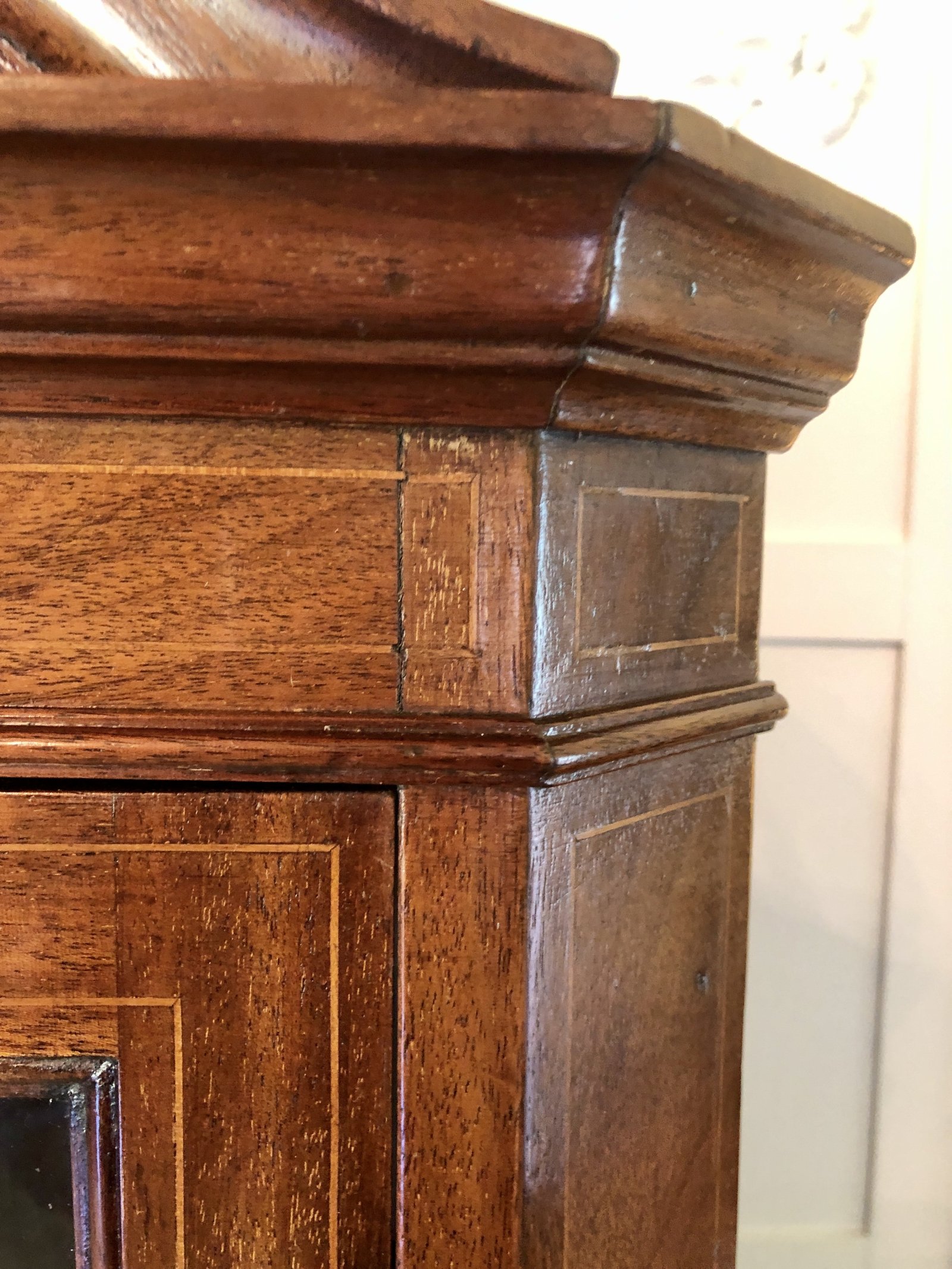 Fine Quality Antique Edwardian Inlaid Mahogany Corner Cupboard