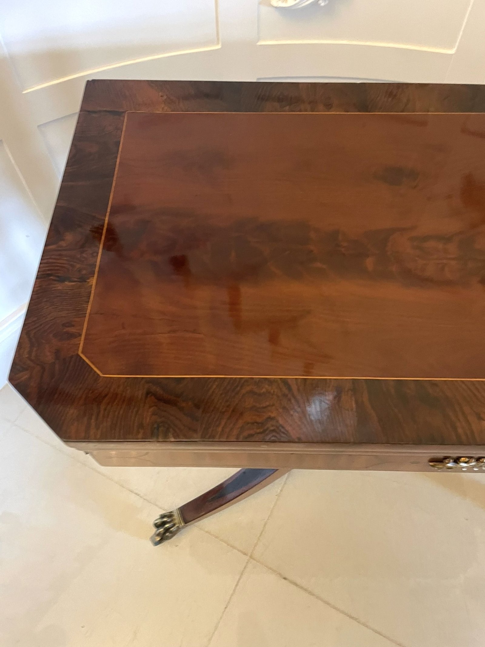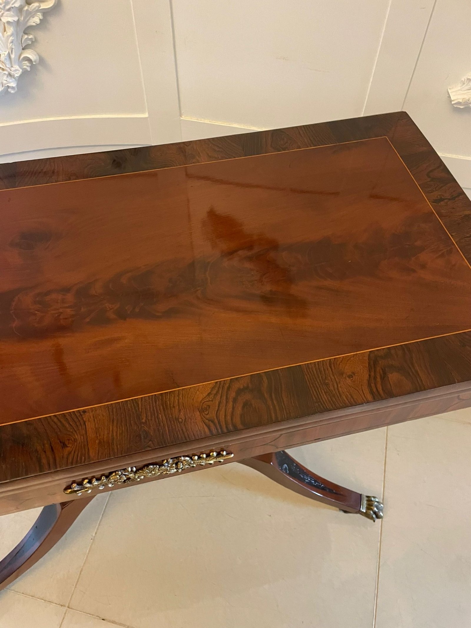 Fine Quality Antique Regency Figured Mahogany Card/Console Table with Gilded Brass Mounts