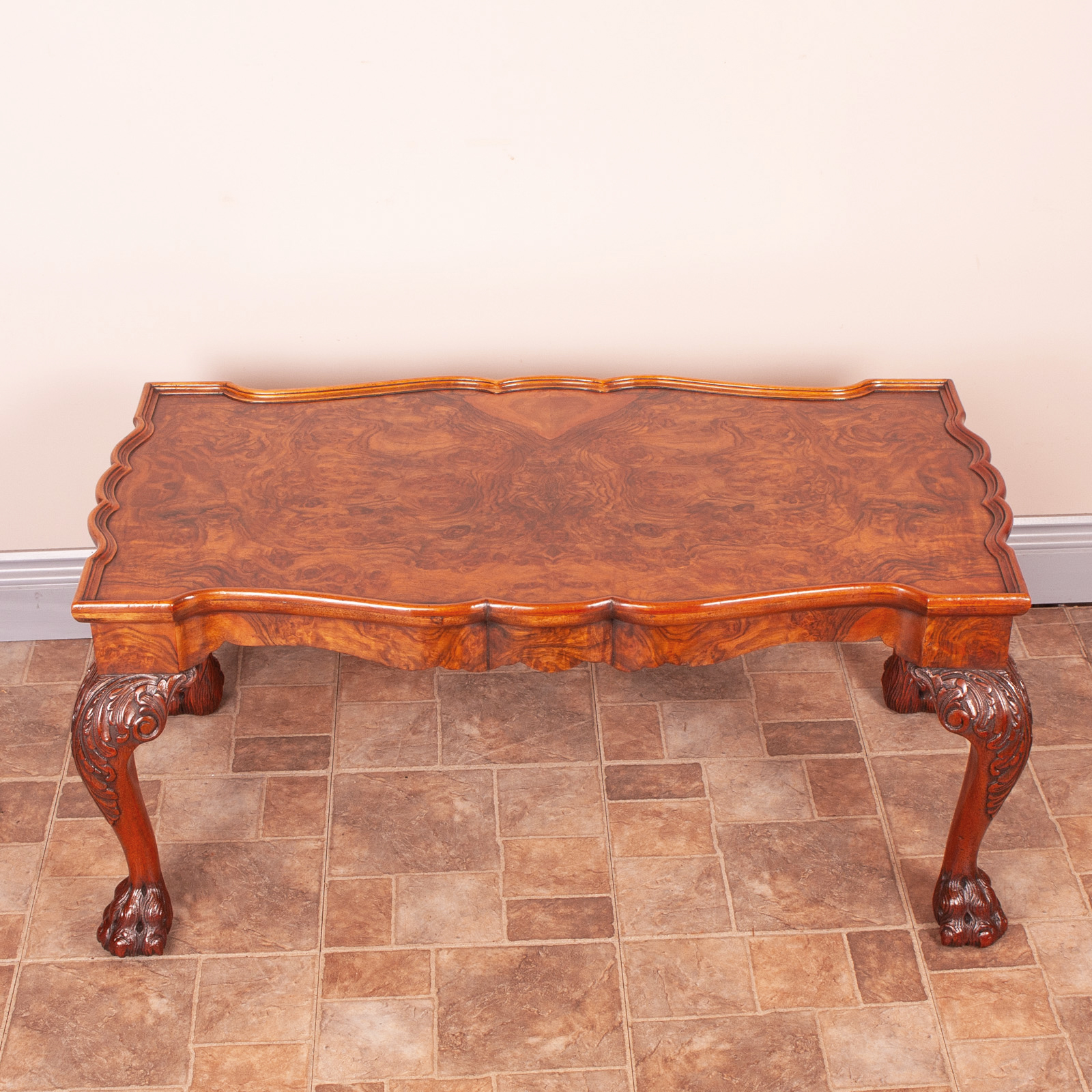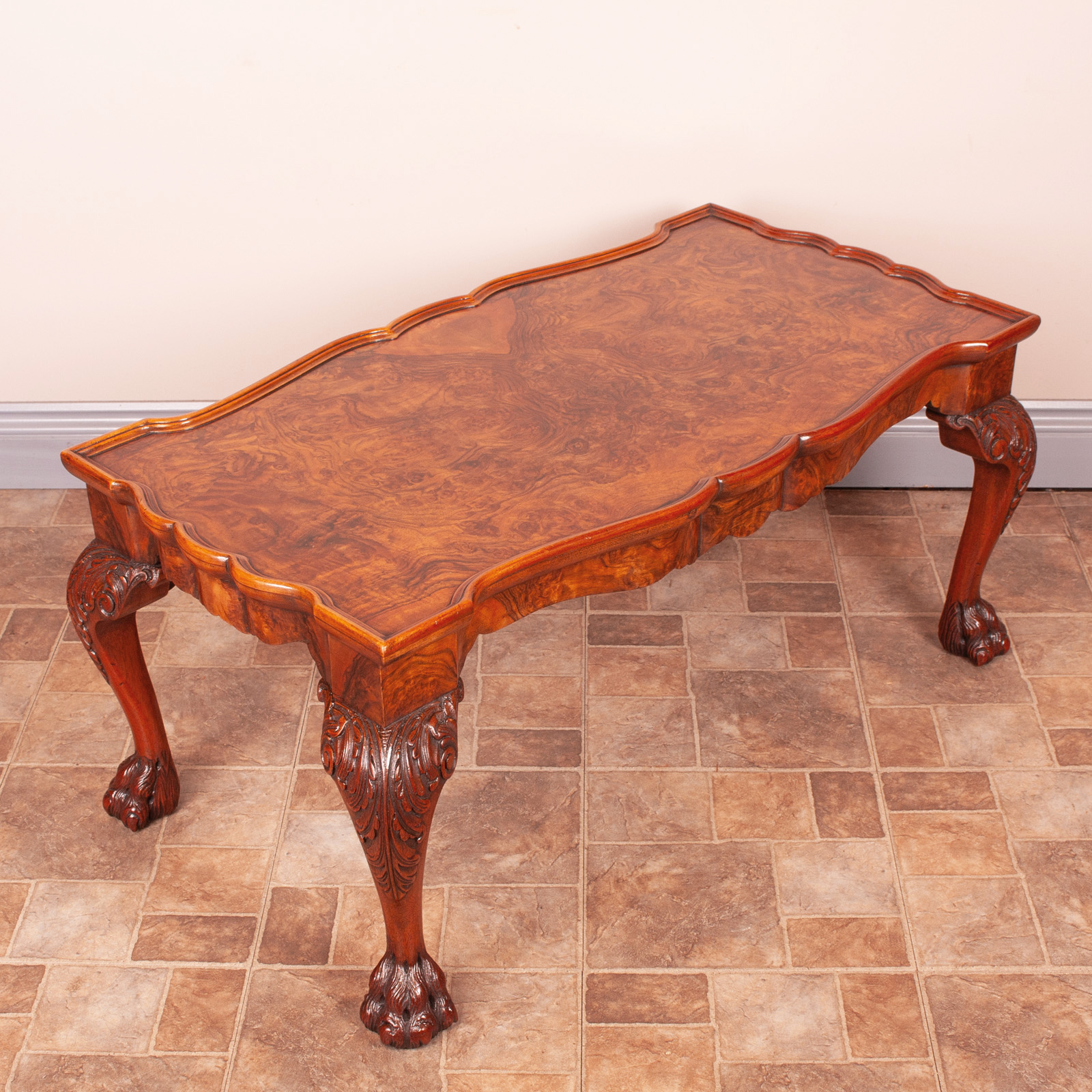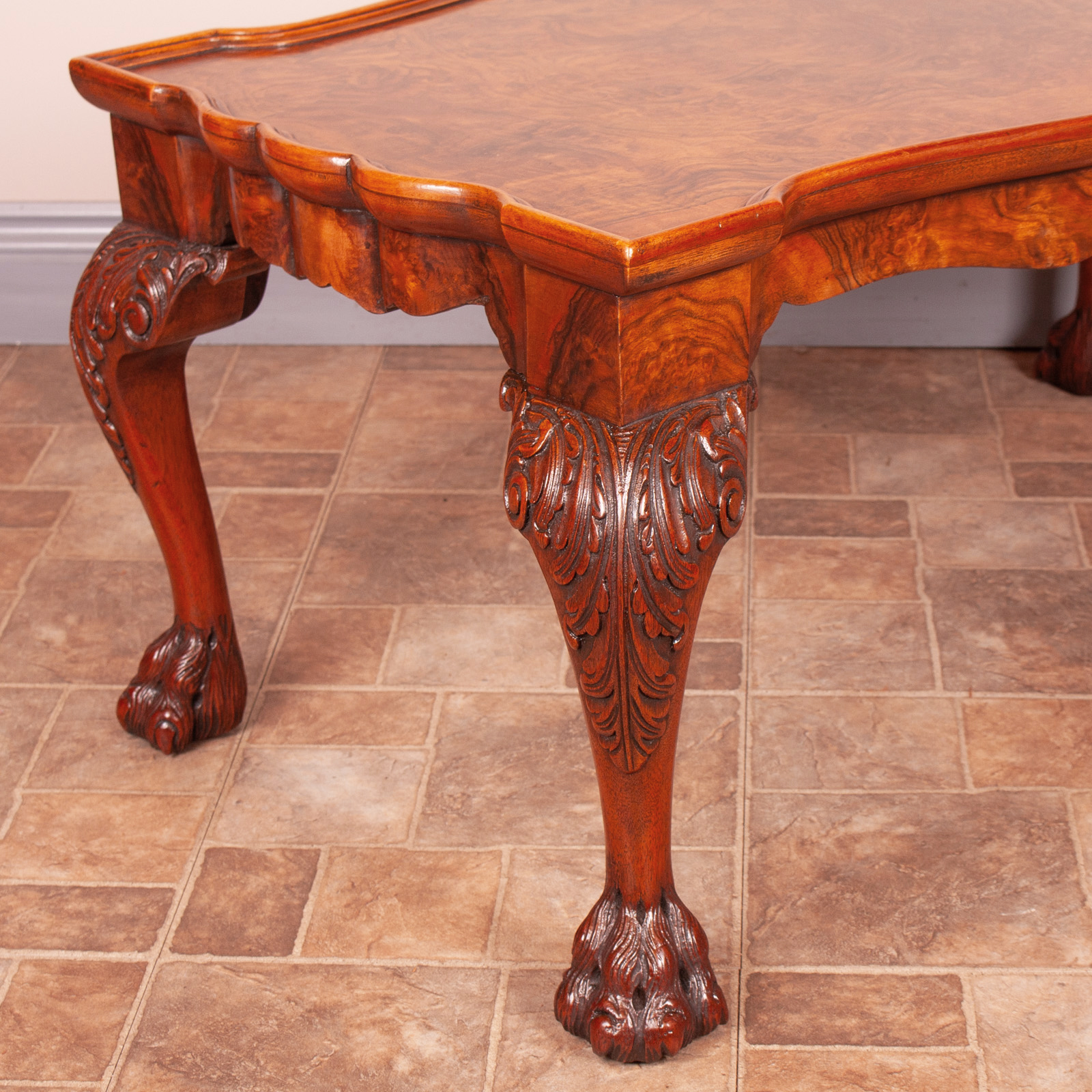 This Fine Quality Walnut Coffee Table has a good solid chunky design. Standing on substantial Cabriole legs that terminate in intricately carved hairy claw and ball feet, along with generous amounts of acanthus leaf carving to the knees.
