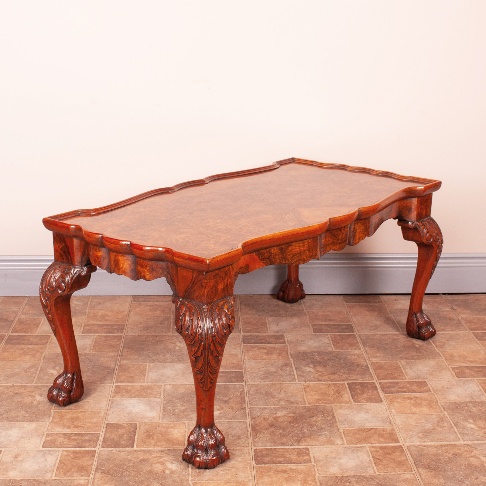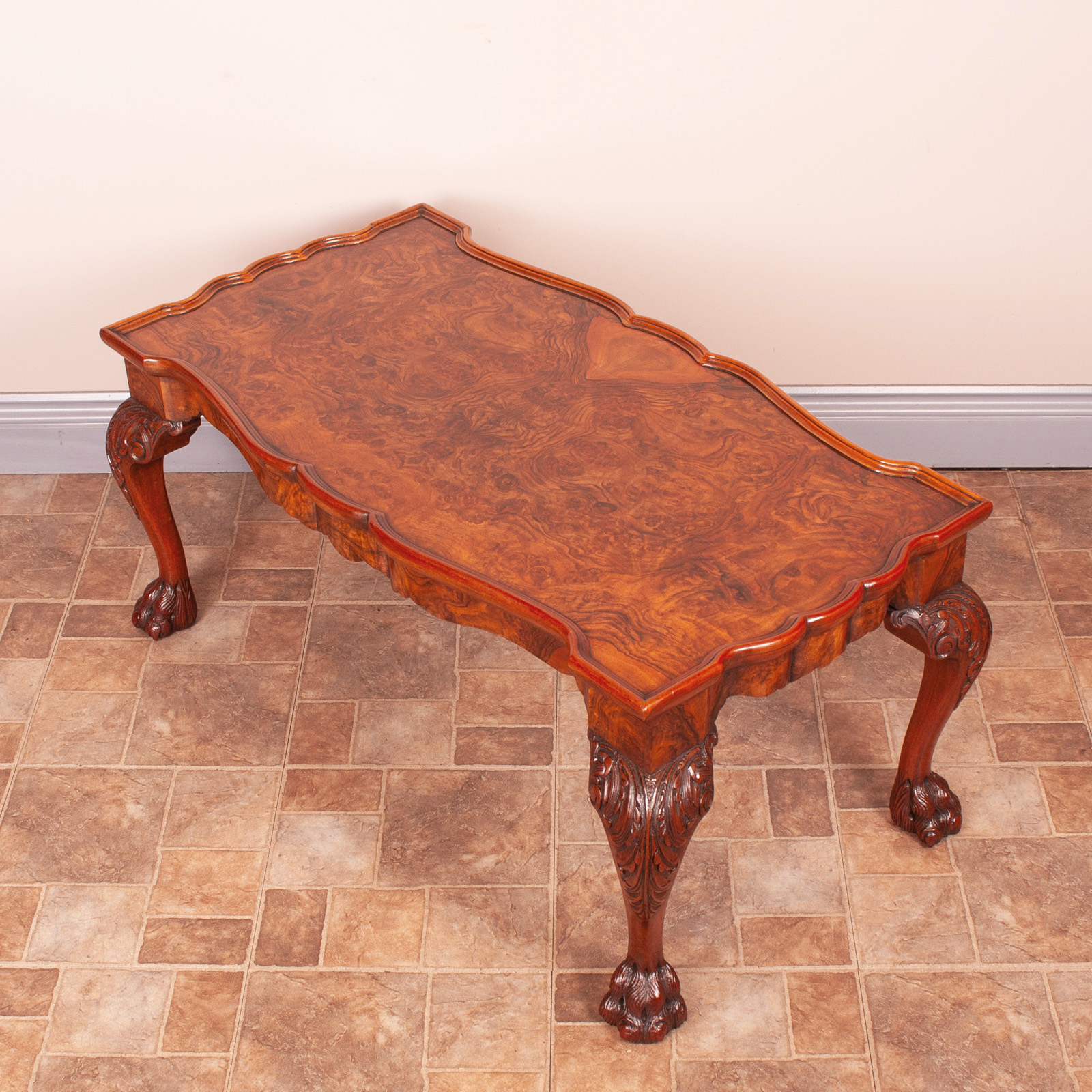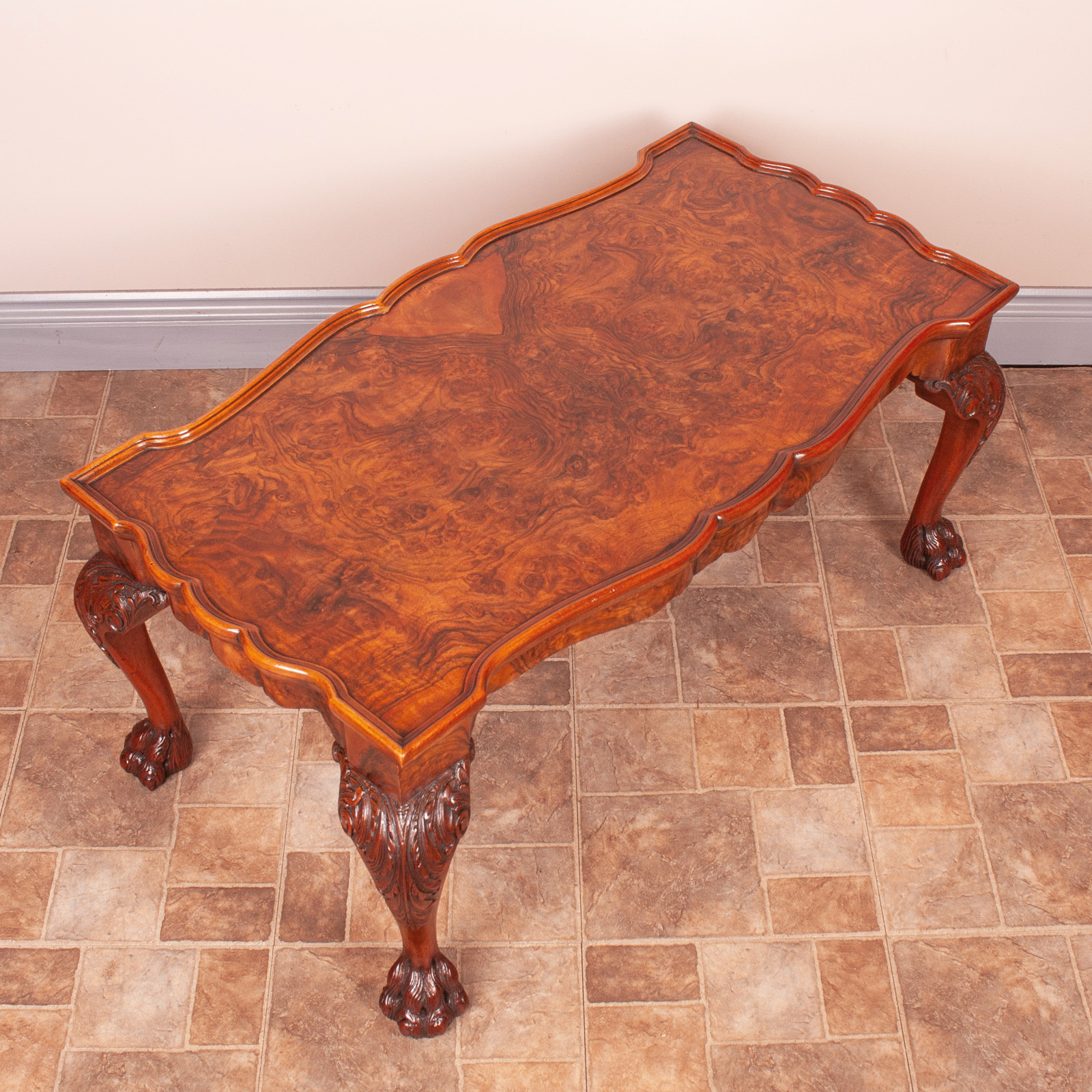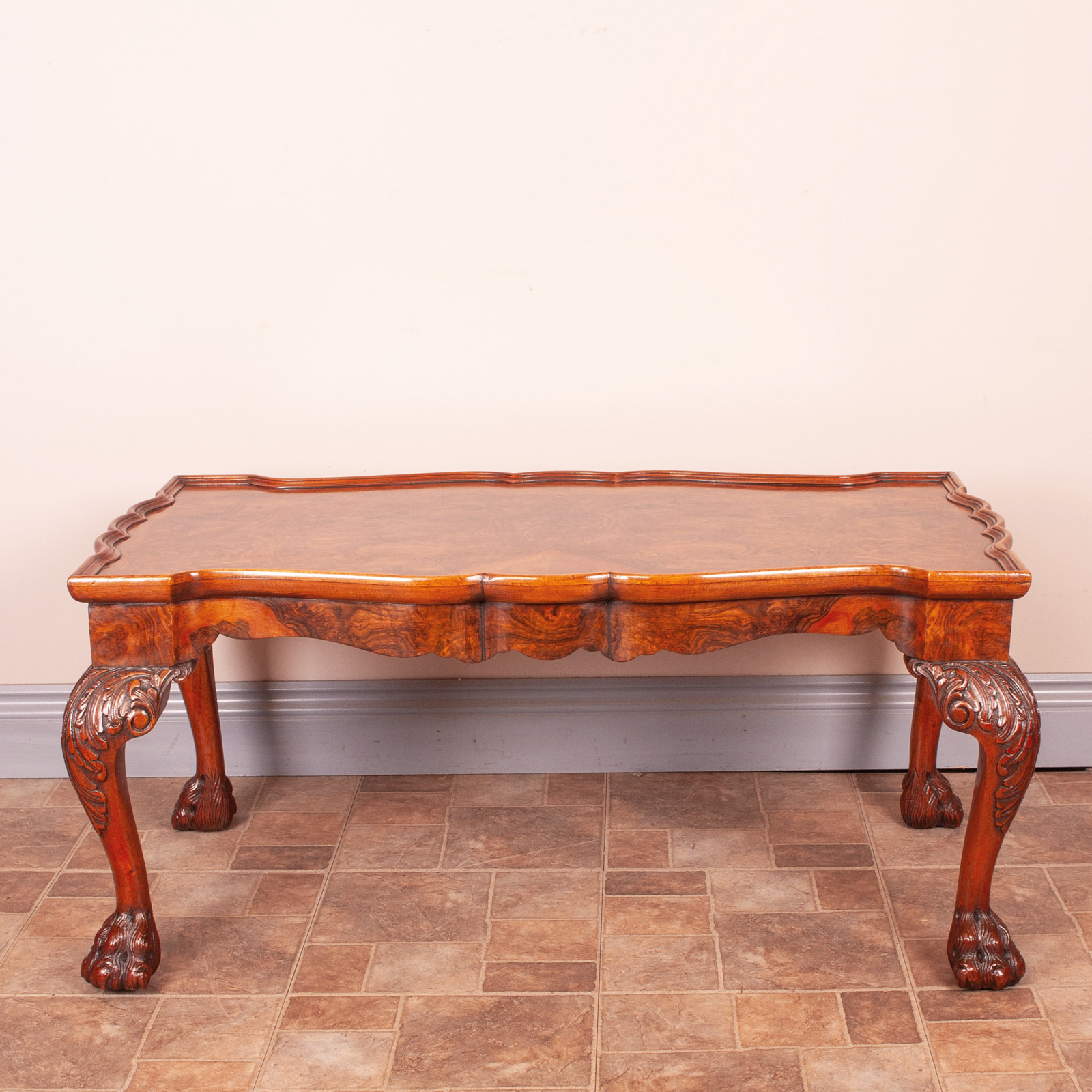 This Fine Quality Walnut Coffee Table has a good solid chunky design. Standing on substantial Cabriole legs that terminate in intricately carved hairy claw and ball feet, along with generous amounts of acanthus leaf carving to the knees.