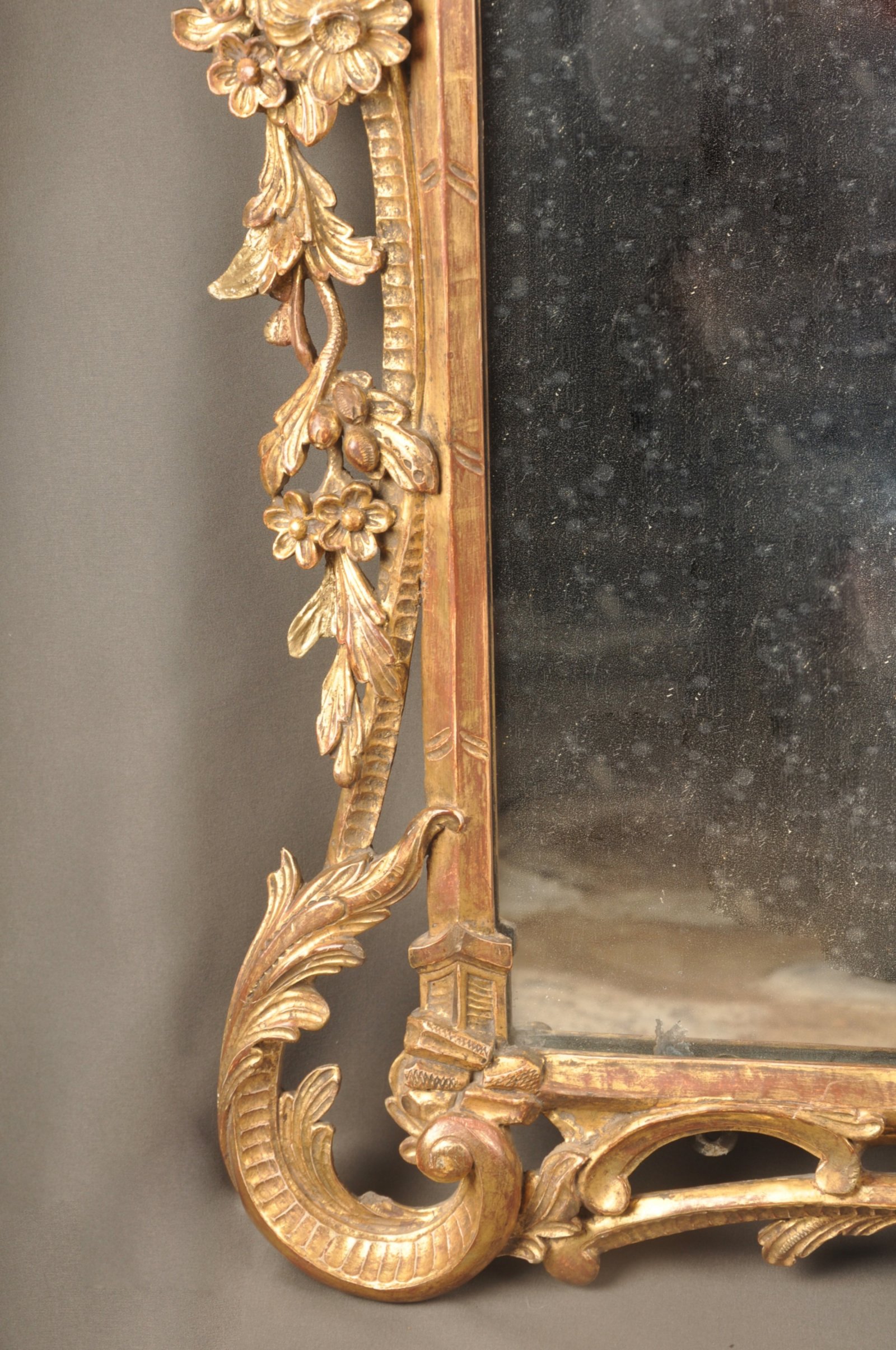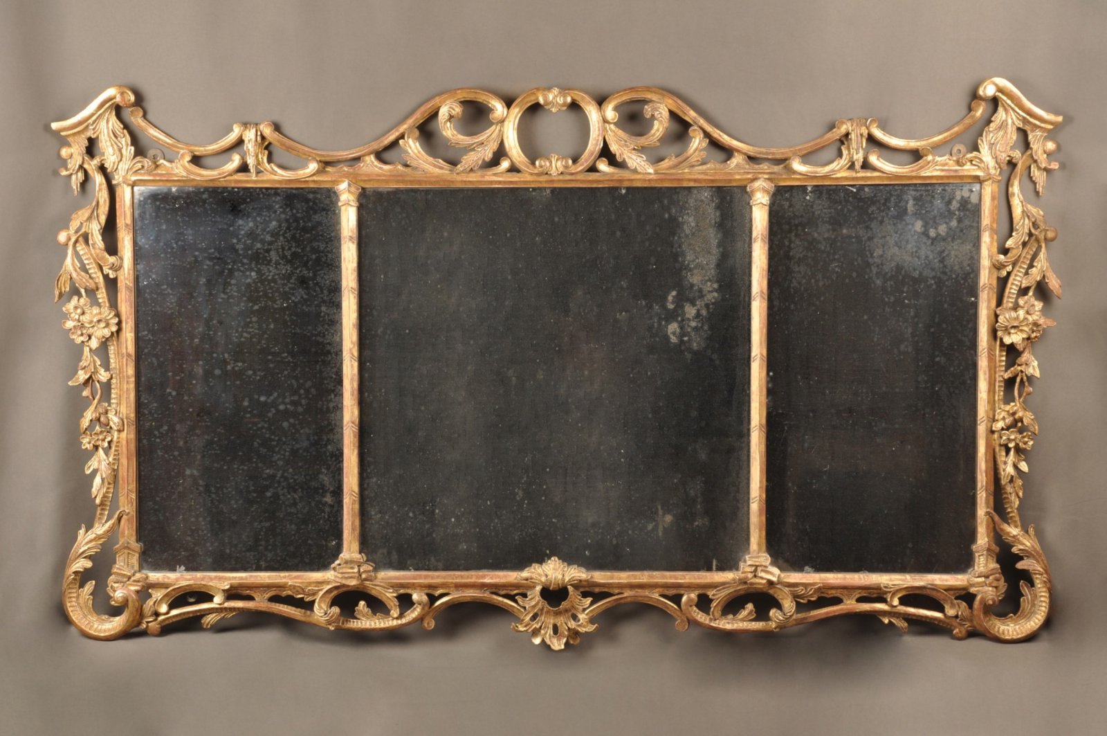 See shipping detailsAn exceptional full period 18th Century Chippendale Rococo Mirror. Beautifully carved with flowing C Scrolls, flowers and foliage. It''s worth noting the very fine and detailed nature of the carving and the exquisite design of this elegant piece with three lightly foxed and sparkling Mercury Mirror plates still in place. The piece is in remarkably good condition with little sign of repair of the years.