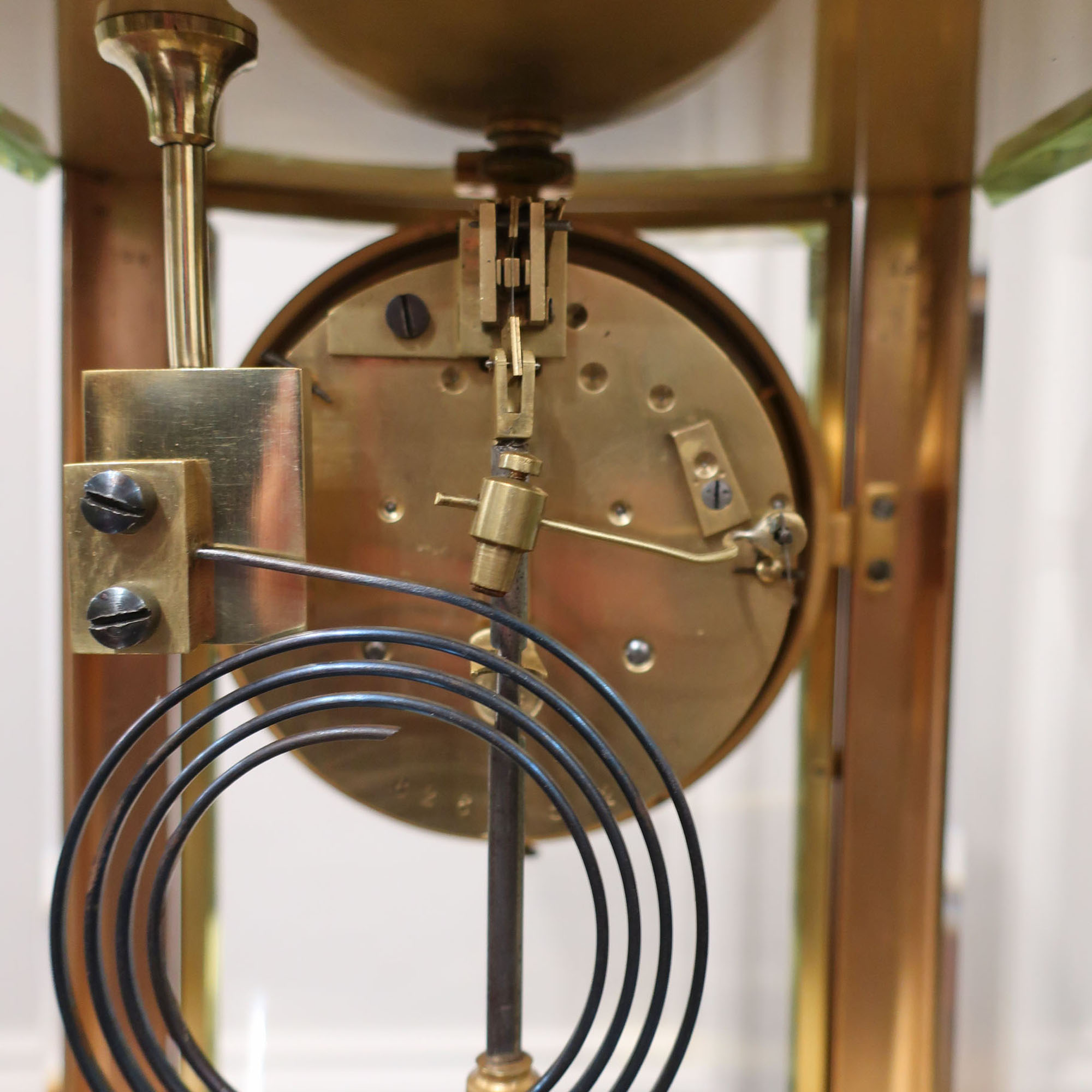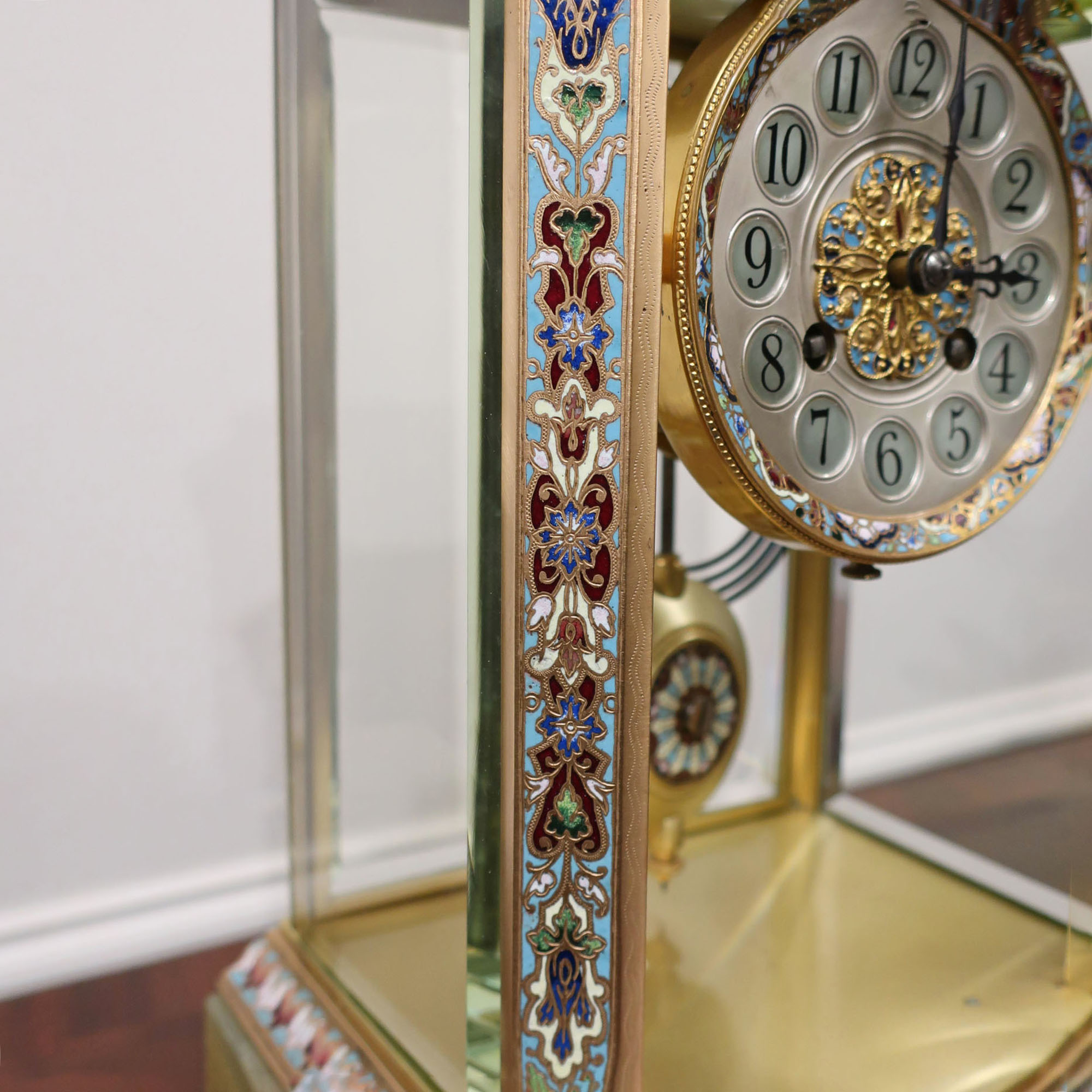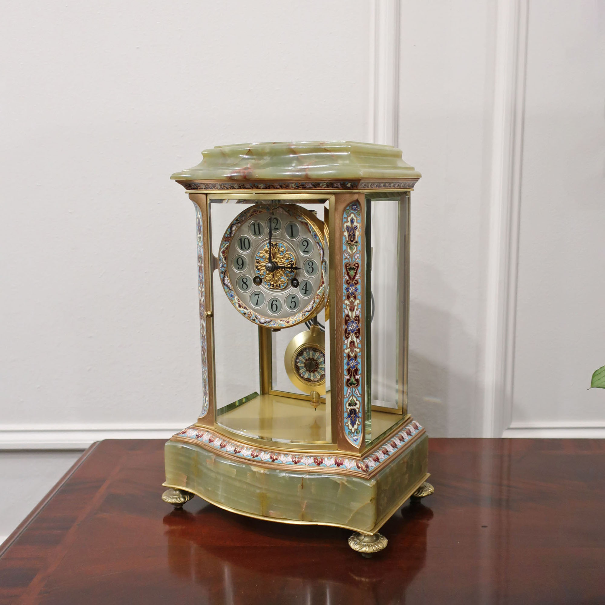 French Belle Epoque Four Glass, Champleve & Onyx Mantel Clock