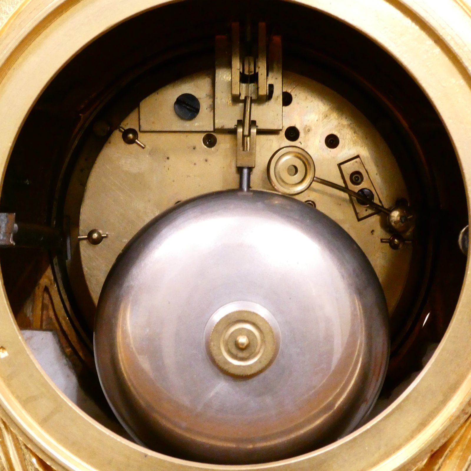 The movement is a French eight day duration which strikes the hours and half hour on a bell.