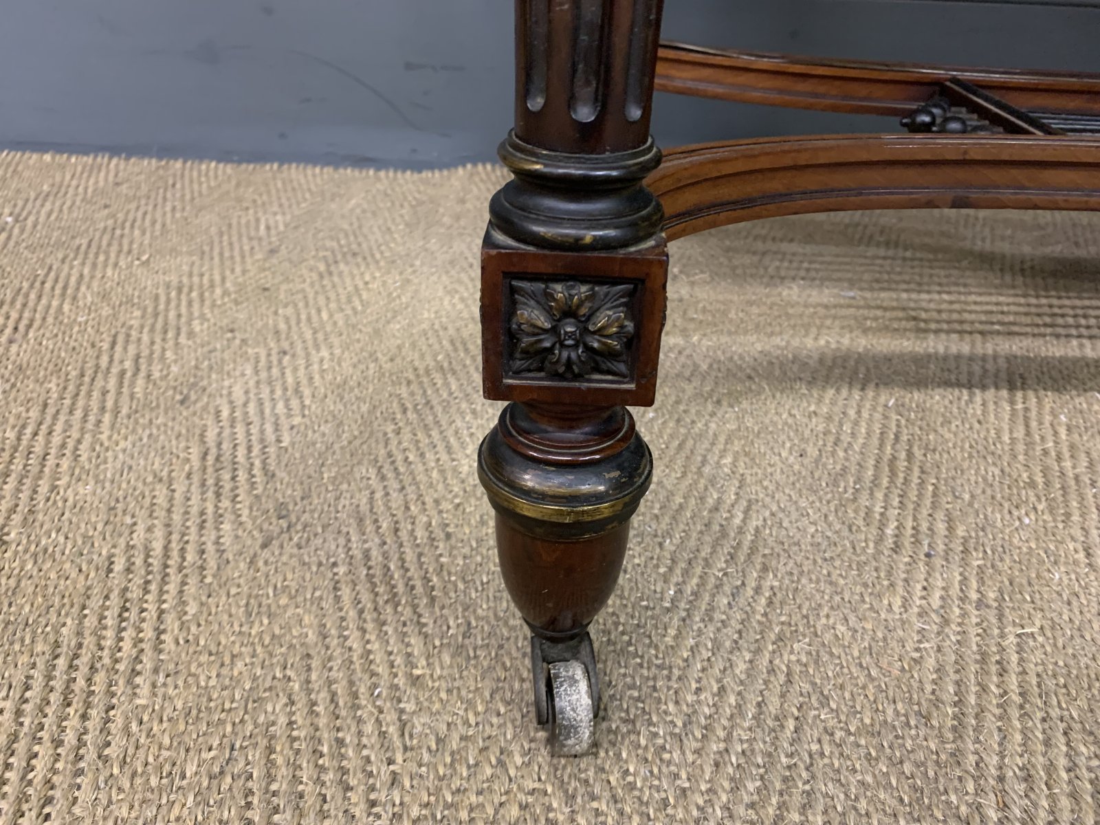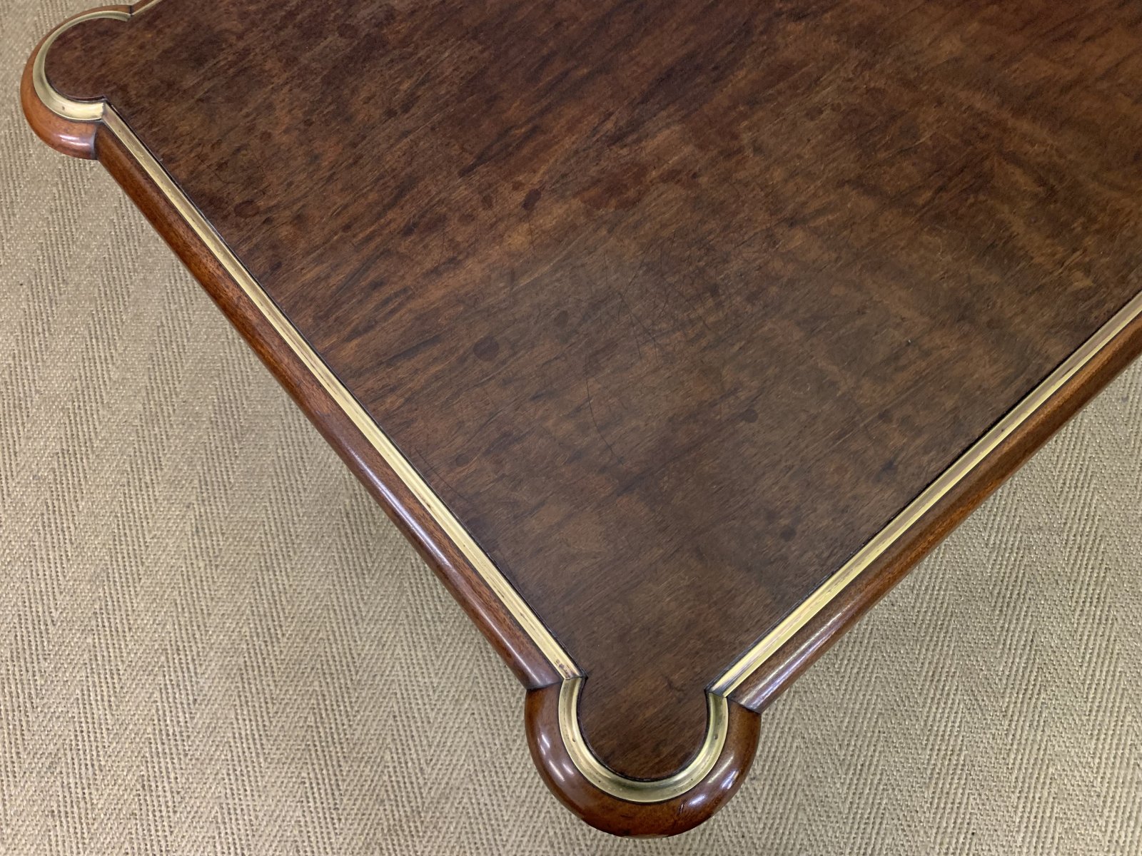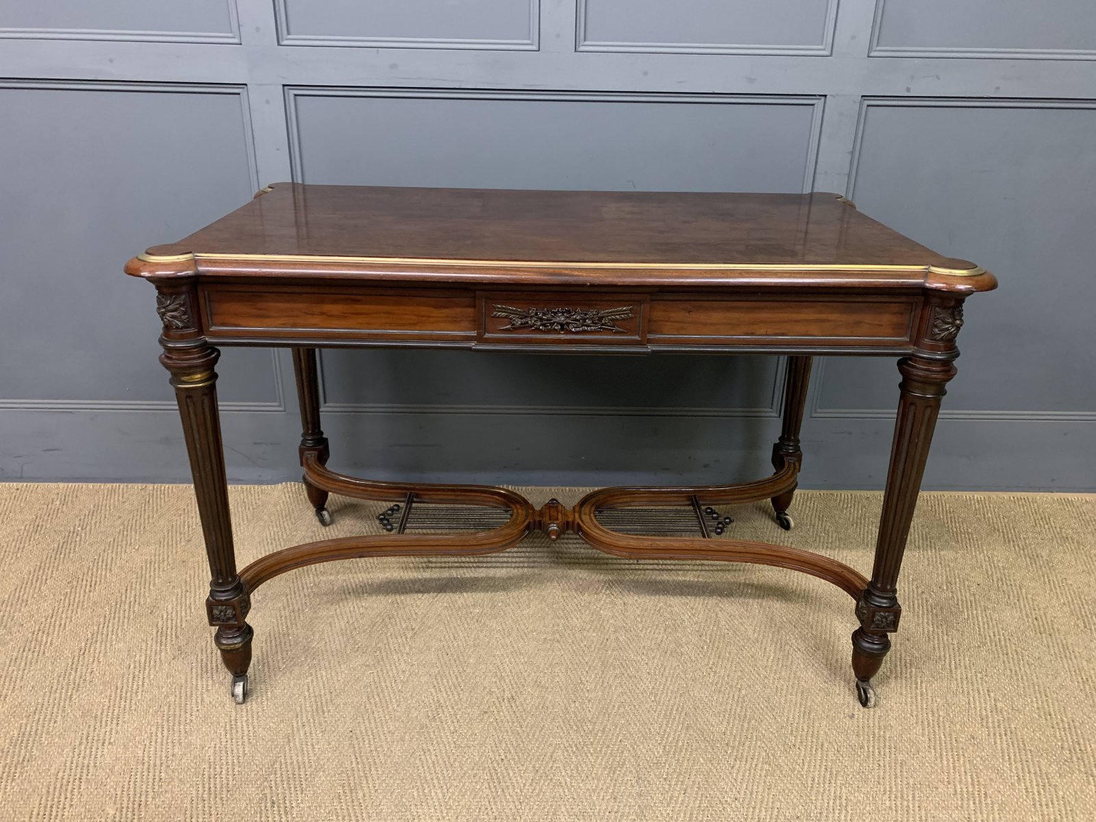 See shipping detailsA fine quality mid 19th century, Louis Philippe period, French library table. Of excellent construction in solid mahogany and embellished with crisply cast gilt bronze mounts and fitted with brass banding and fluting throughout. With a single long drawer to the front, replete with a central gilt bronze mount (repeated to the rear of the table). Standing on elegant turned and fluted legs which terminate in original castors. United by a beautiful double lyre under-stretcher. Cleaned and waxed in our workshops and now offered for sale in very good orignal condition. Some minor historic marks to the top.