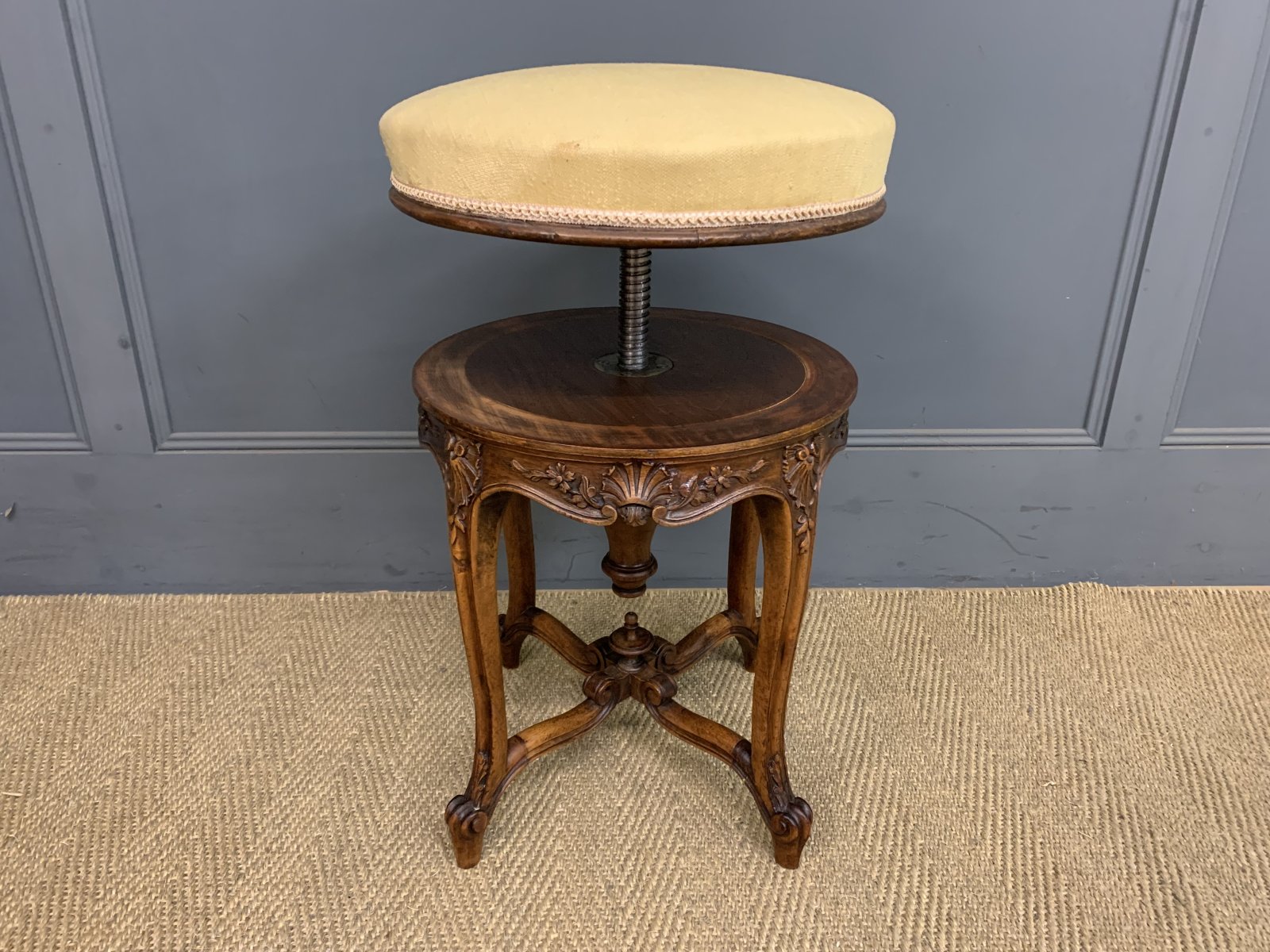 French Walnut Adjustable Piano Stool