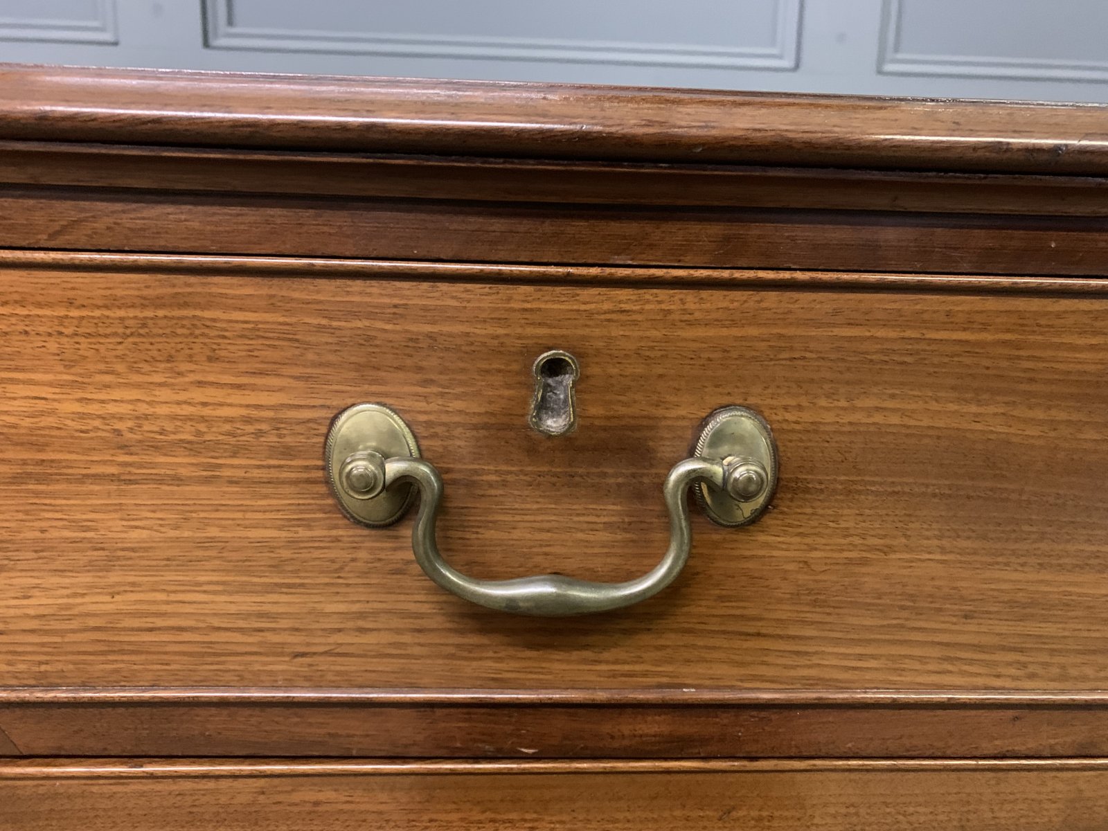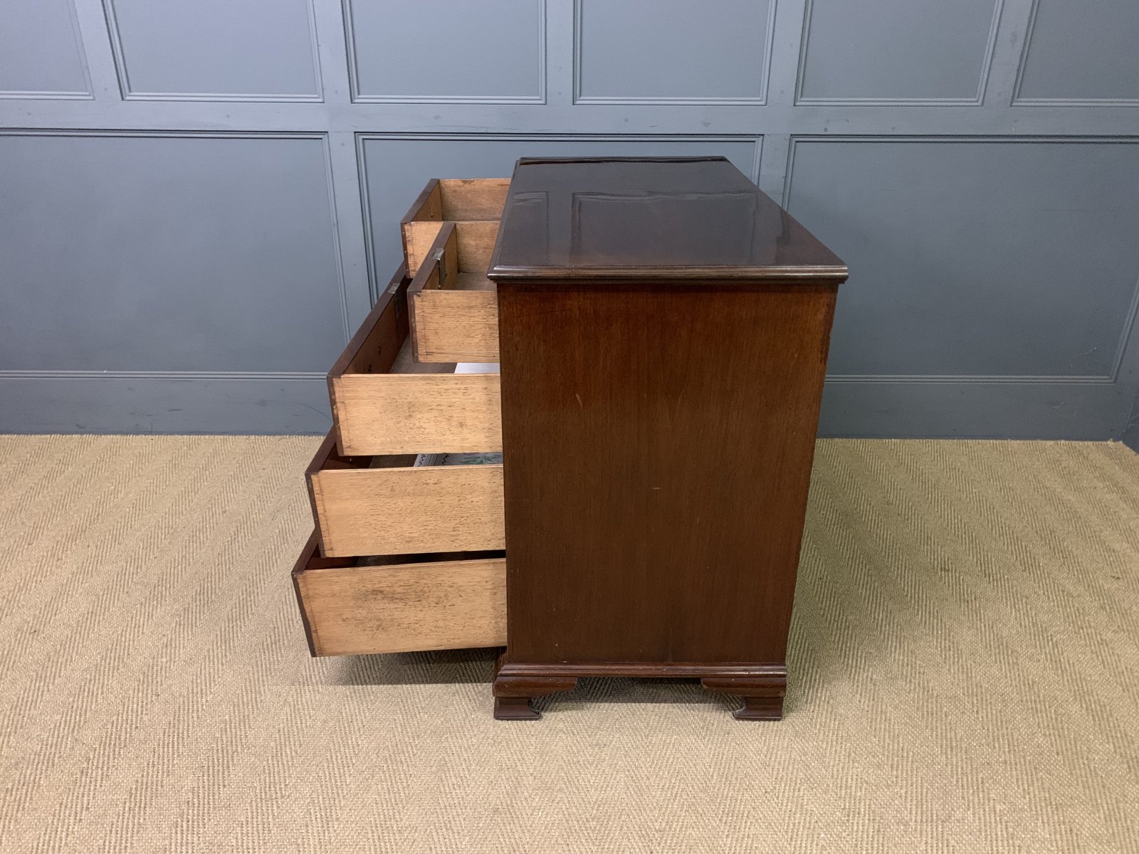 A good George III period mahogany chest of drawers. Well constructed in solid mahogany with oak drawer linings. With an arrangement of 2 short over 3 long graduated drawers. Fitted with its original steel locks and brass swan-neck handles. All standing on lovely ogee bracket feet. The top has been sympathetcially repolished, the remainder cleaned and waxed. Now offered for sale in very good condition, ready to go straight into the home.
