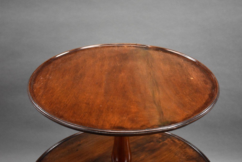 For sale is a good quality George III mahogany dumbwaiter, having a dished top and revolving tier, on swept cabriole legs and castors.