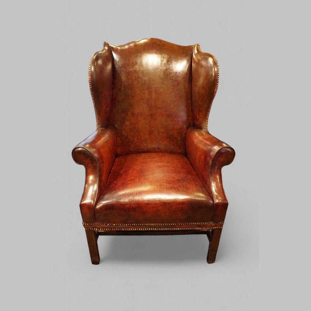 George V tortoiseshell leather wing chair