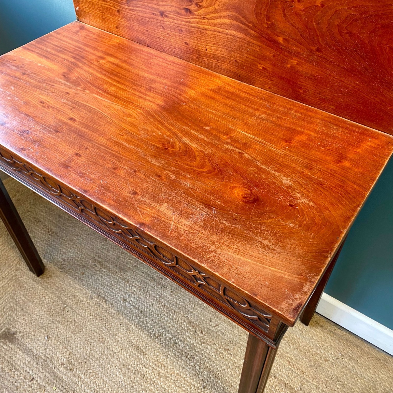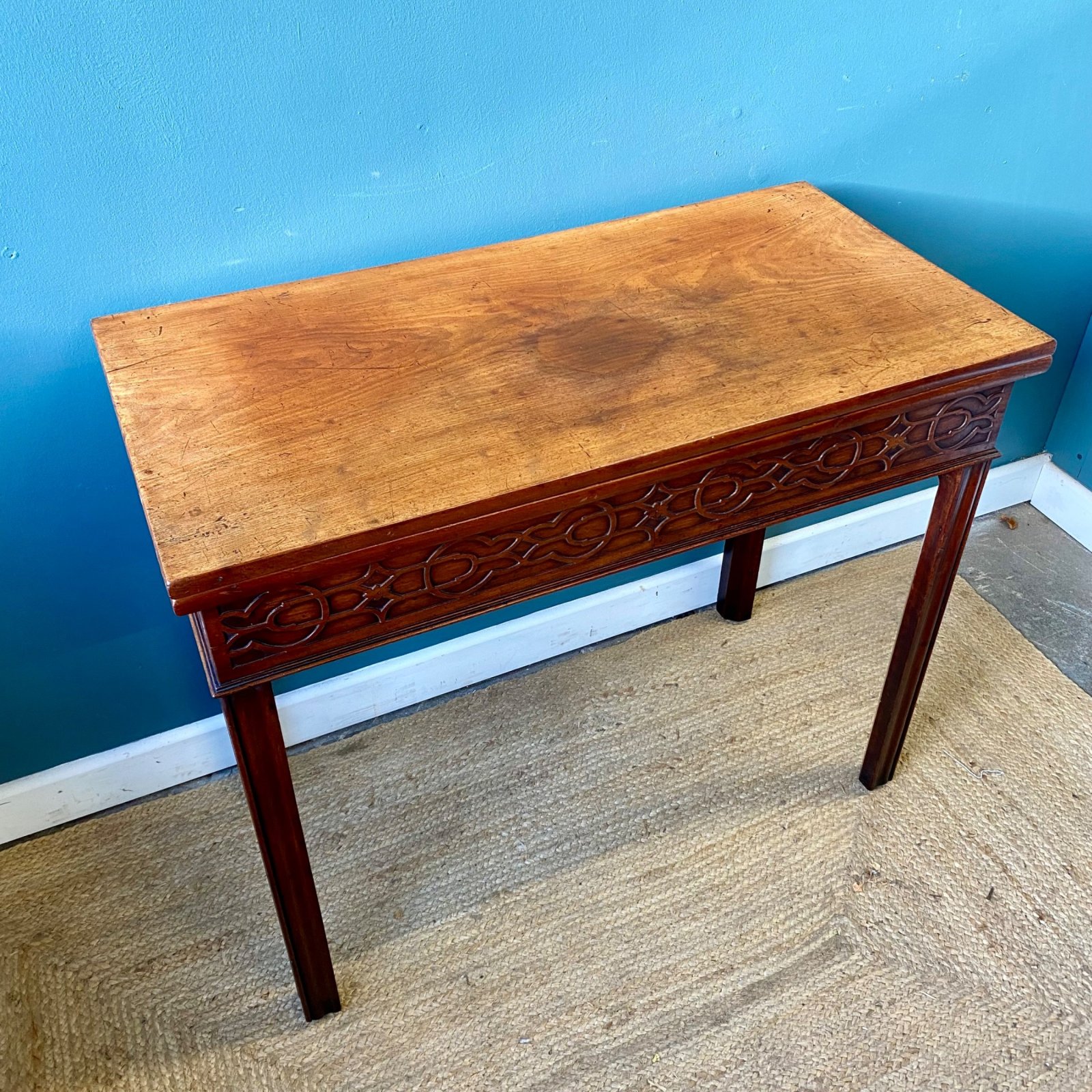 A superb Georgian mahogany fold over tea table in the Chinese Chippendale manner.