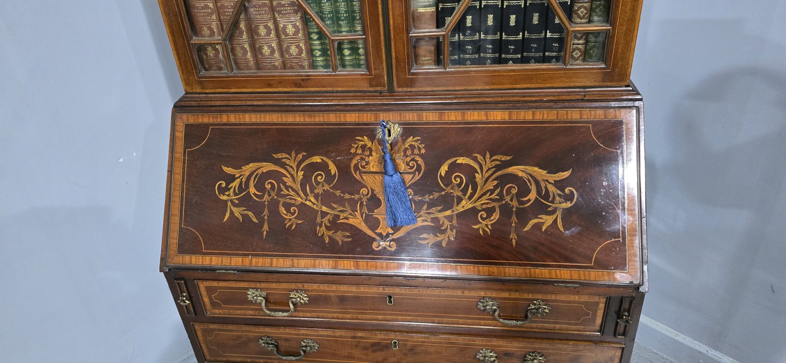 Georgian Inlaid Bureau Bookcase