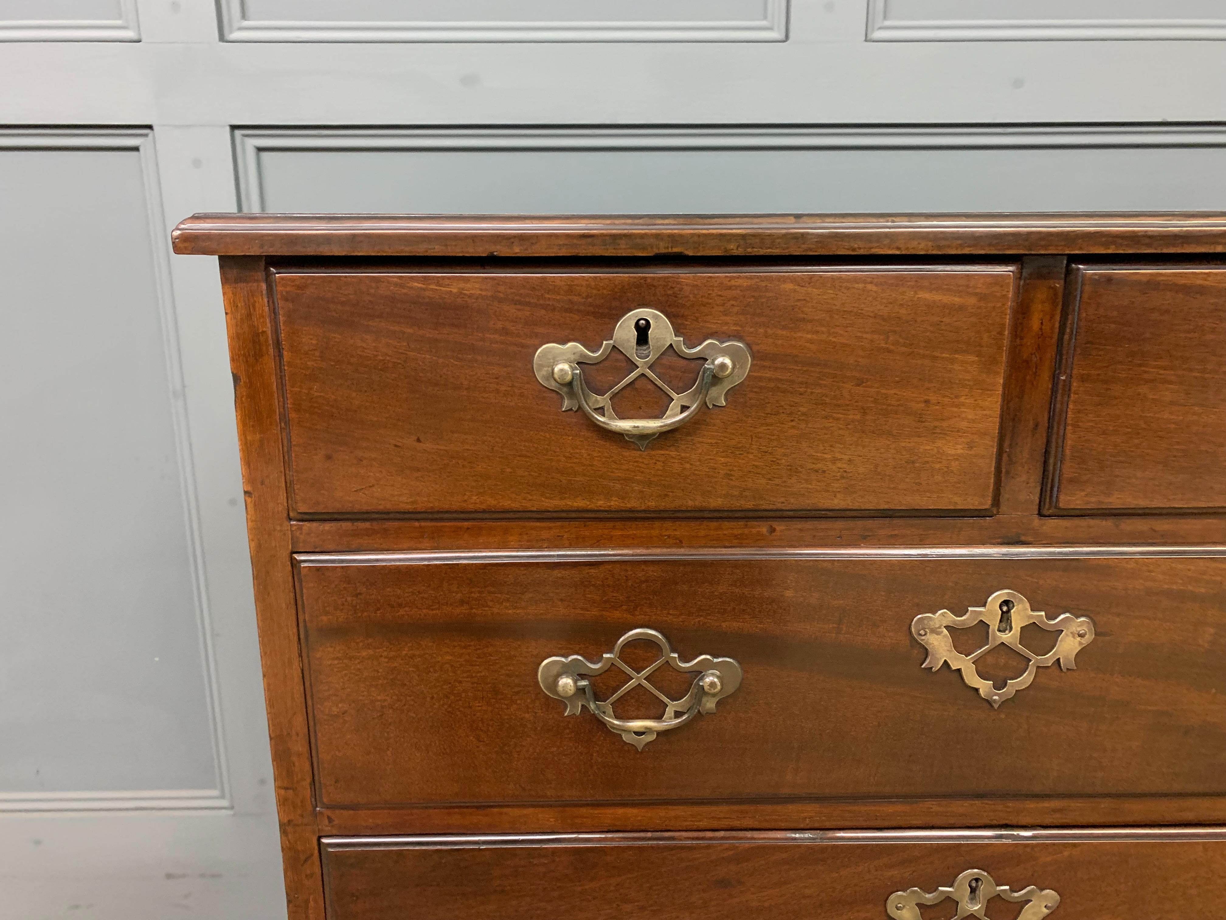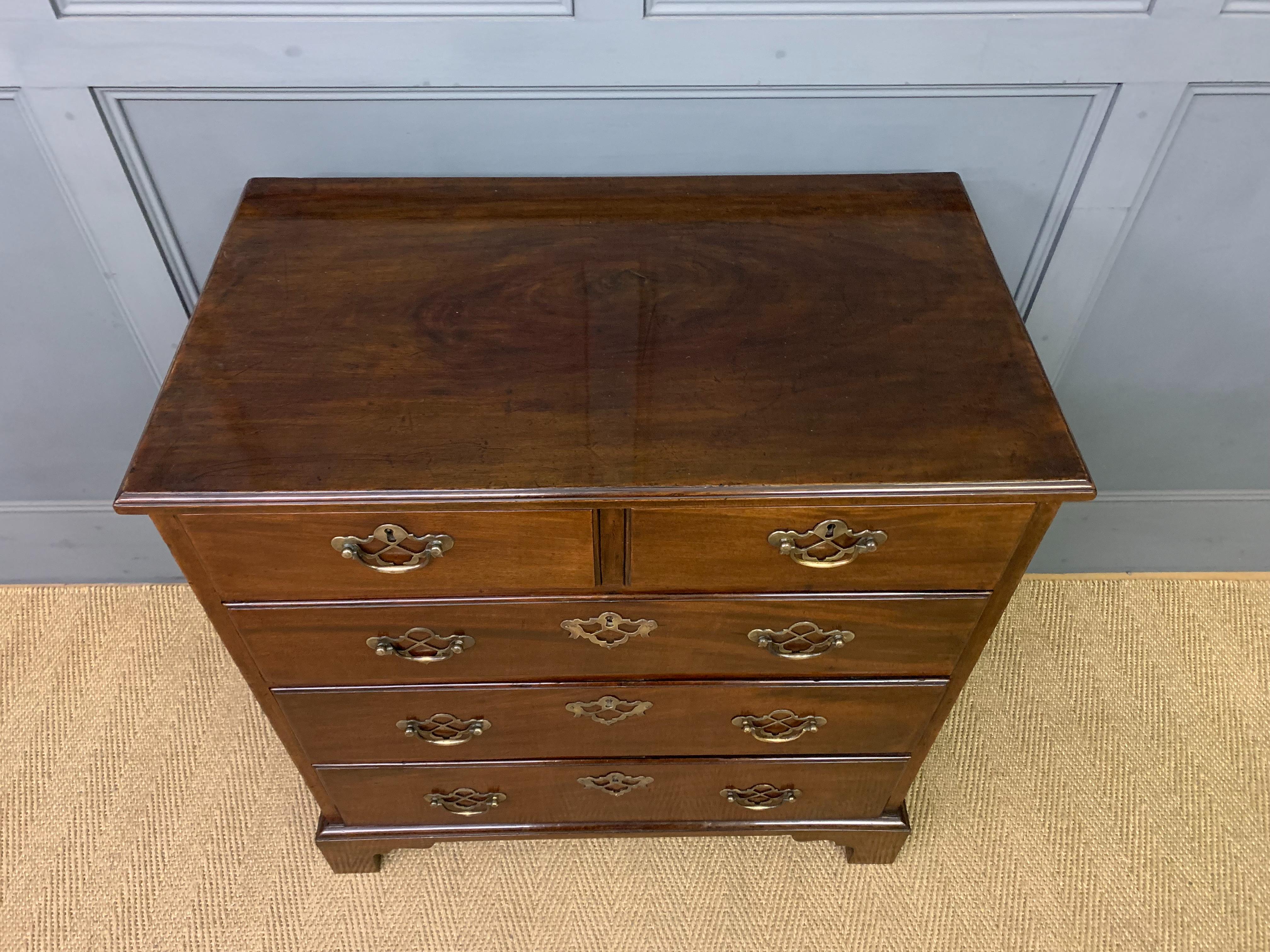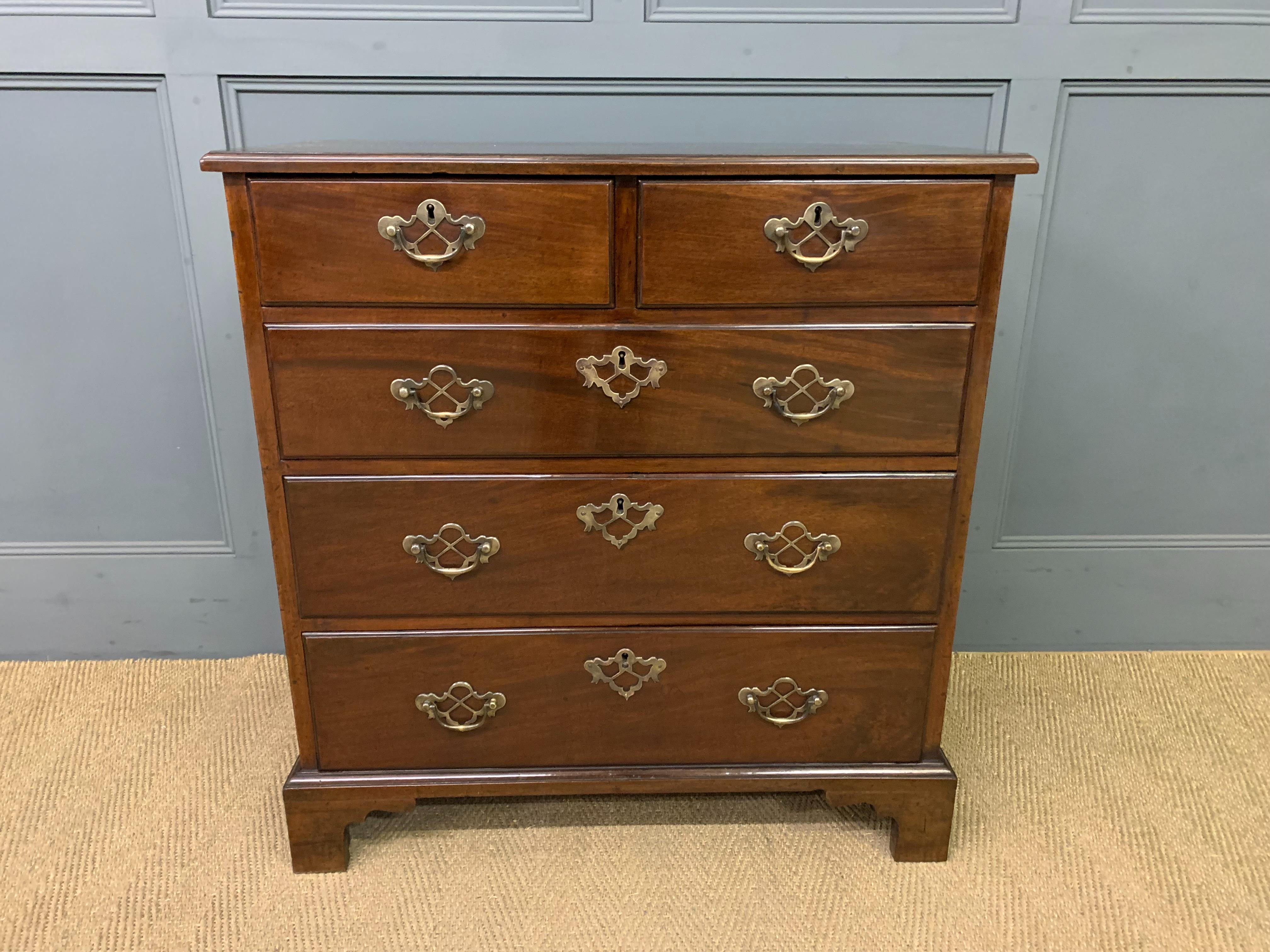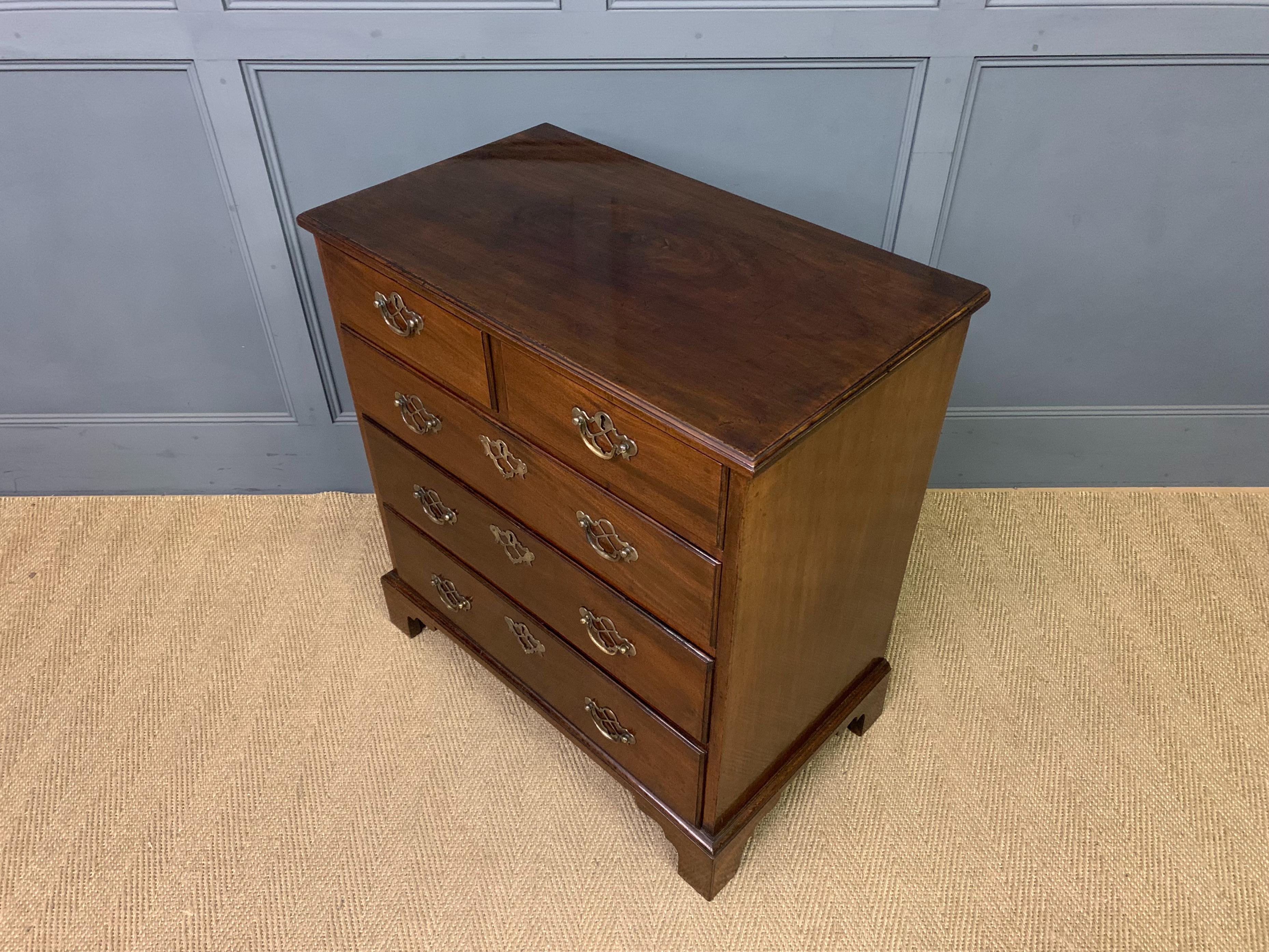 A lovely George III period mahogany bachelors chest of drawers. Well constructed in solid mahogany with solid oak drawer linings. With a series of 2 short over 3 long drawers , all fitted with their original solid brass hardware. All standing on bracket feet. Sympathetically refinished in our workshops and now offered for sale in excellent condition, with a great colour and patina.