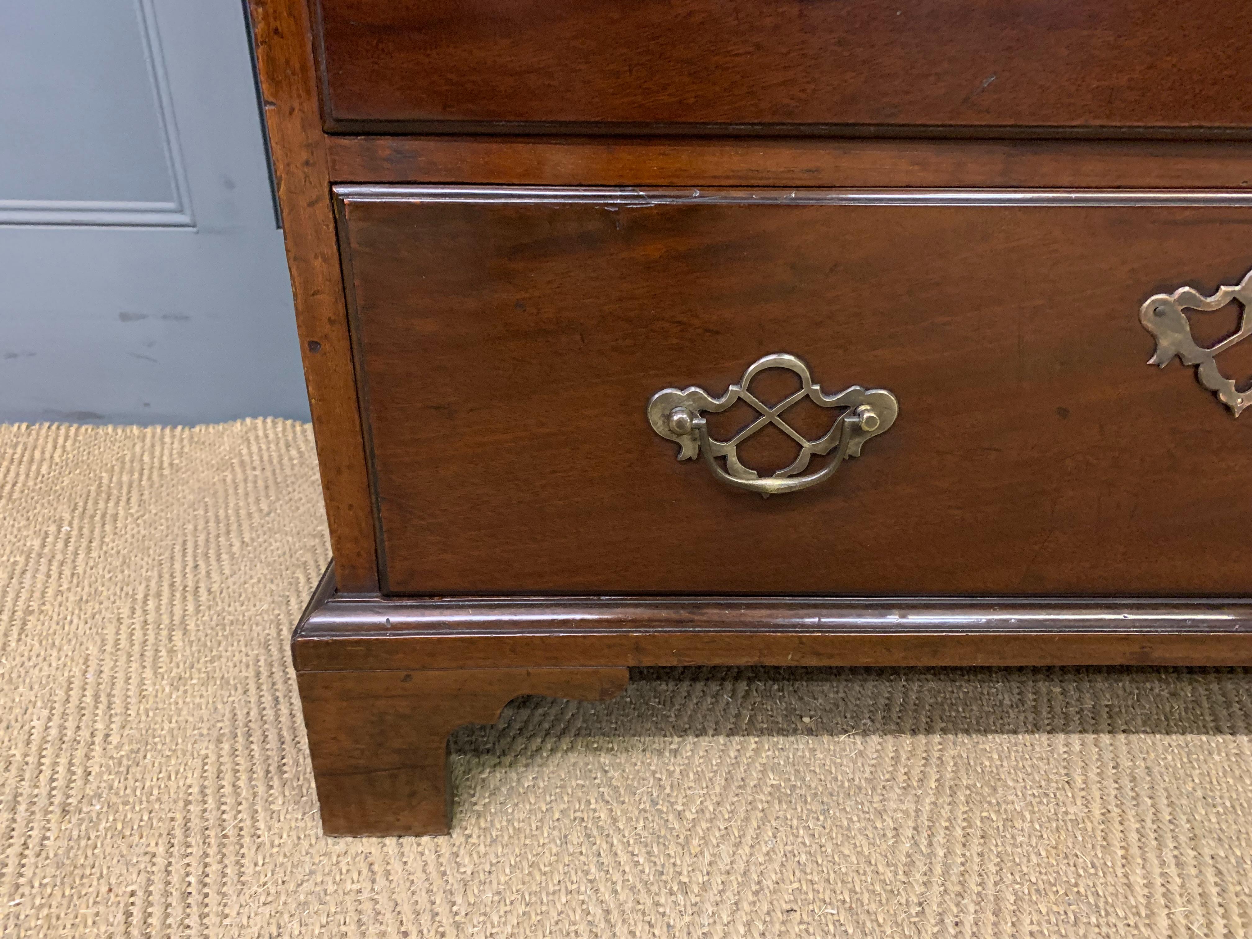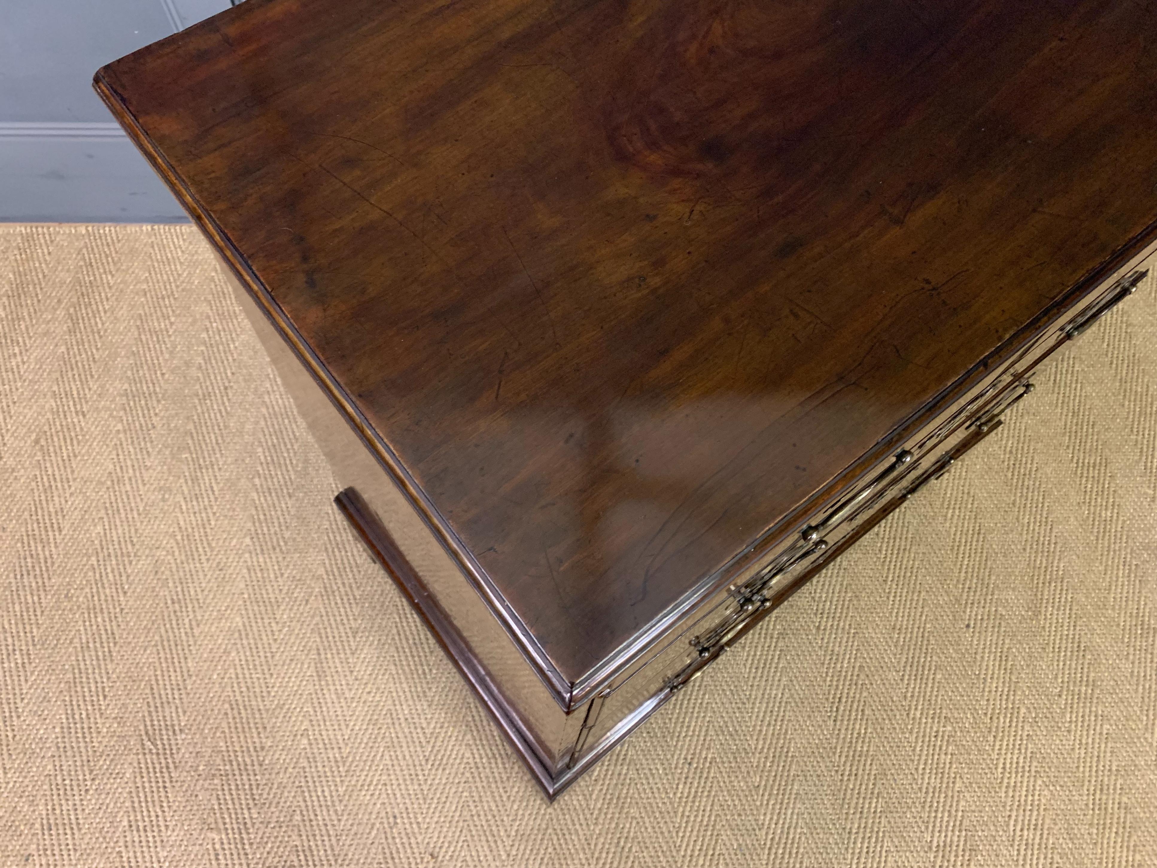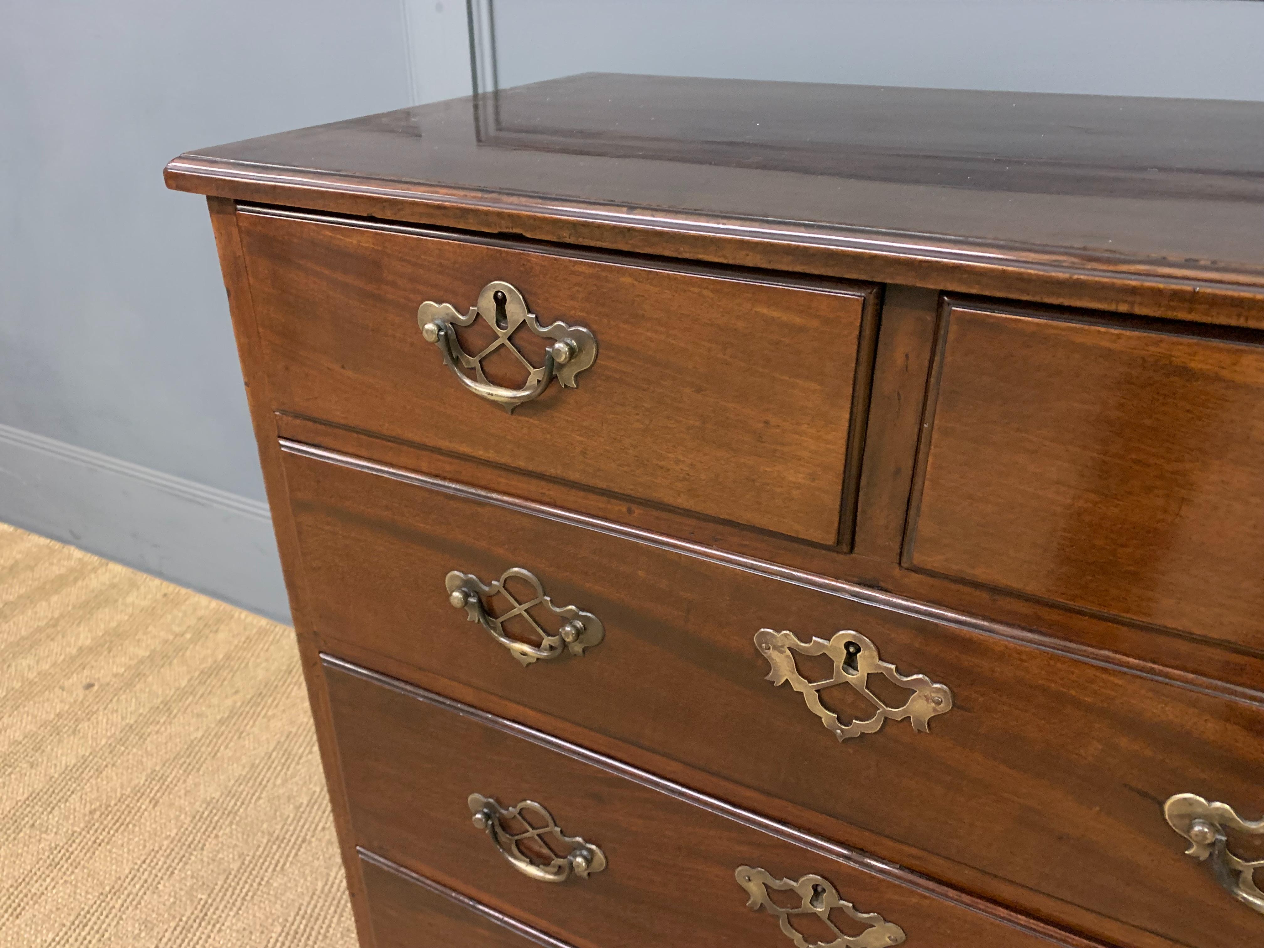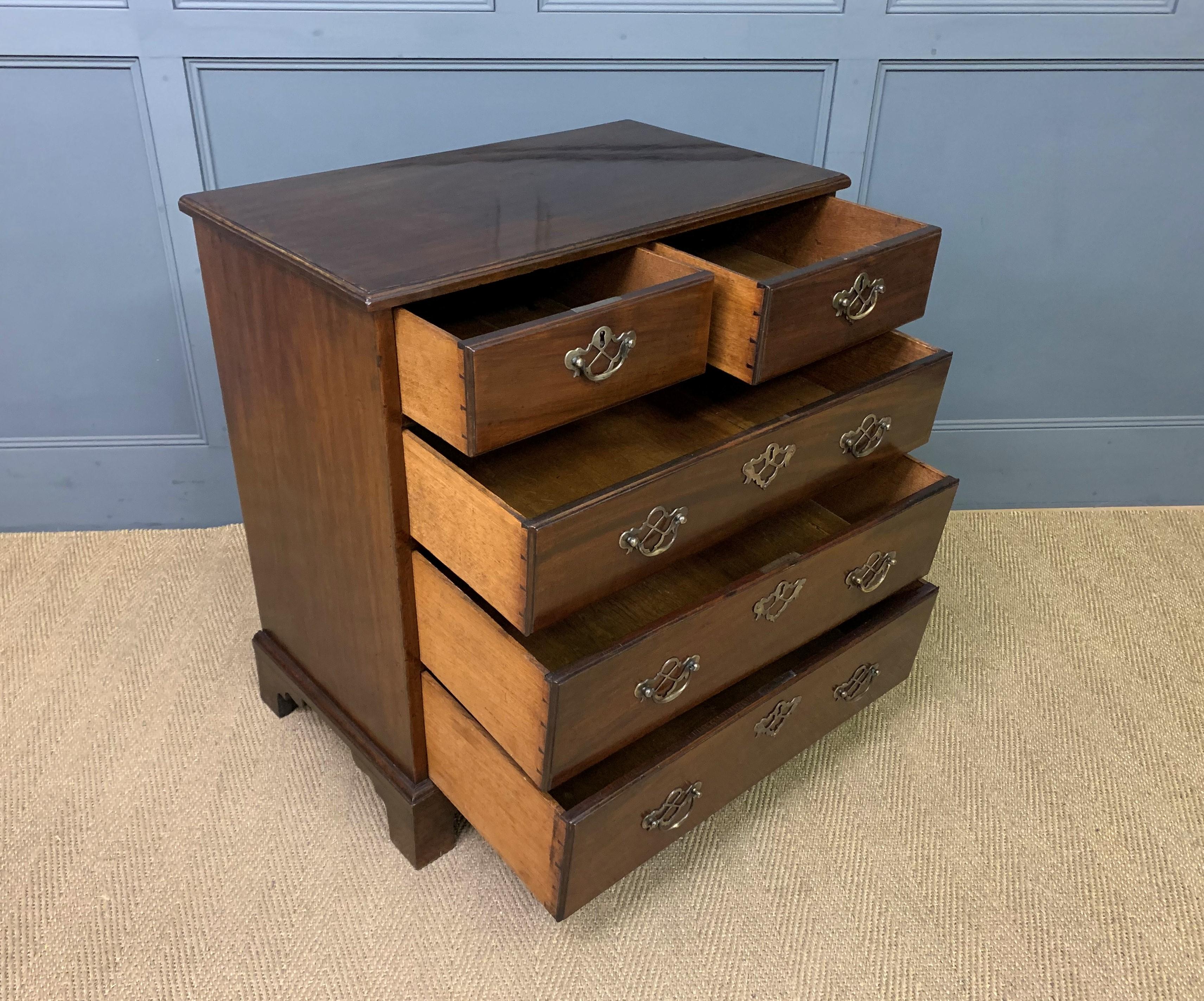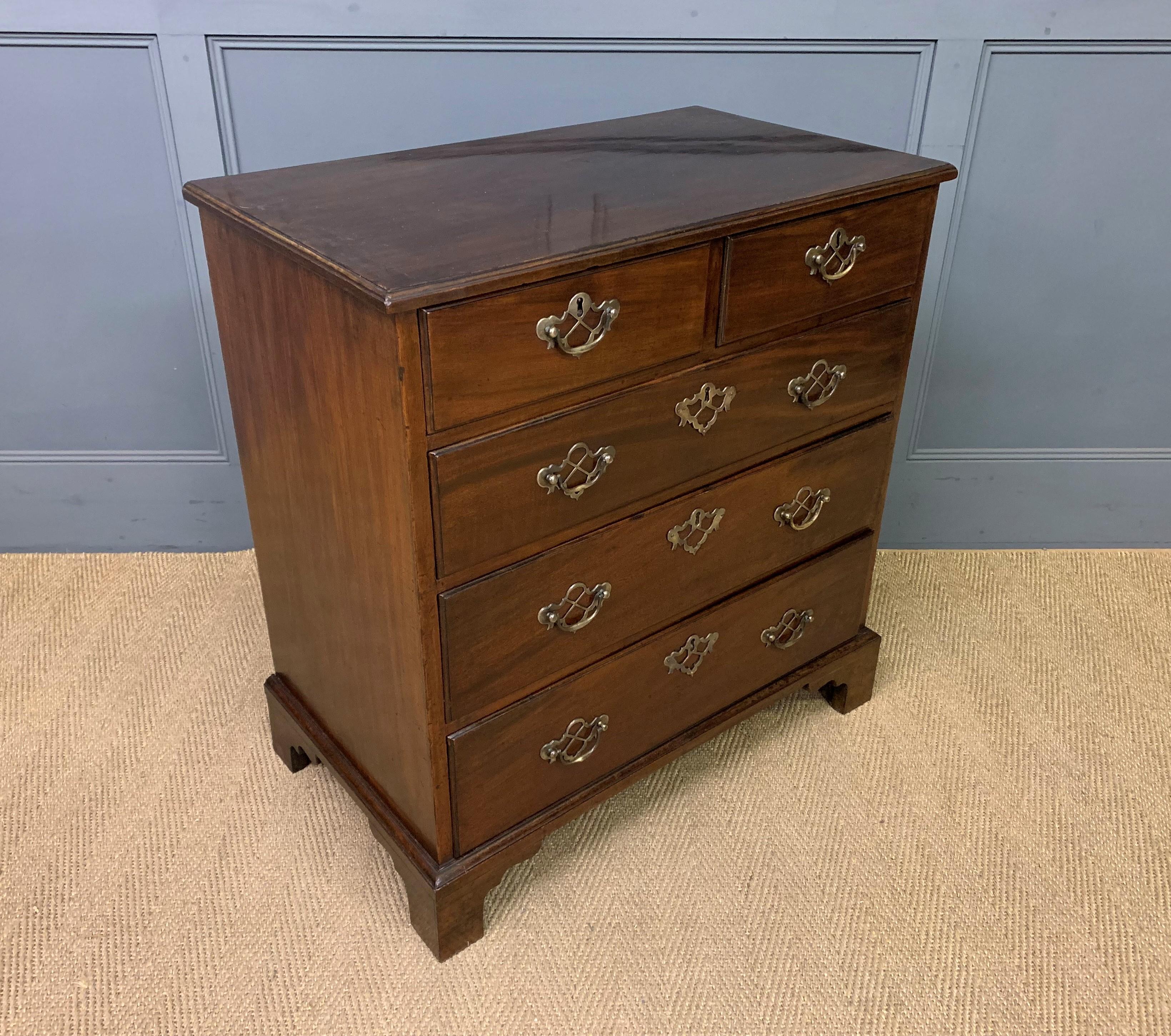 A lovely George III period mahogany bachelors chest of drawers. Well constructed in solid mahogany with solid oak drawer linings. With a series of 2 short over 3 long drawers , all fitted with their original solid brass hardware. All standing on bracket feet. Sympathetically refinished in our workshops and now offered for sale in excellent condition, with a great colour and patina.