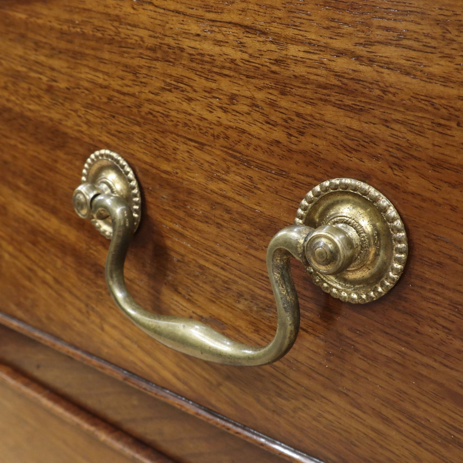 The chest of drawers has moulding to the edge of the top and base, and the chest stand on shaped bracket feet. The five graduating drawers all have cockbeading to the edges, and all the drawers are oak lined and run smoothly. Each drawer has a working lock and the chest comes with two keys.