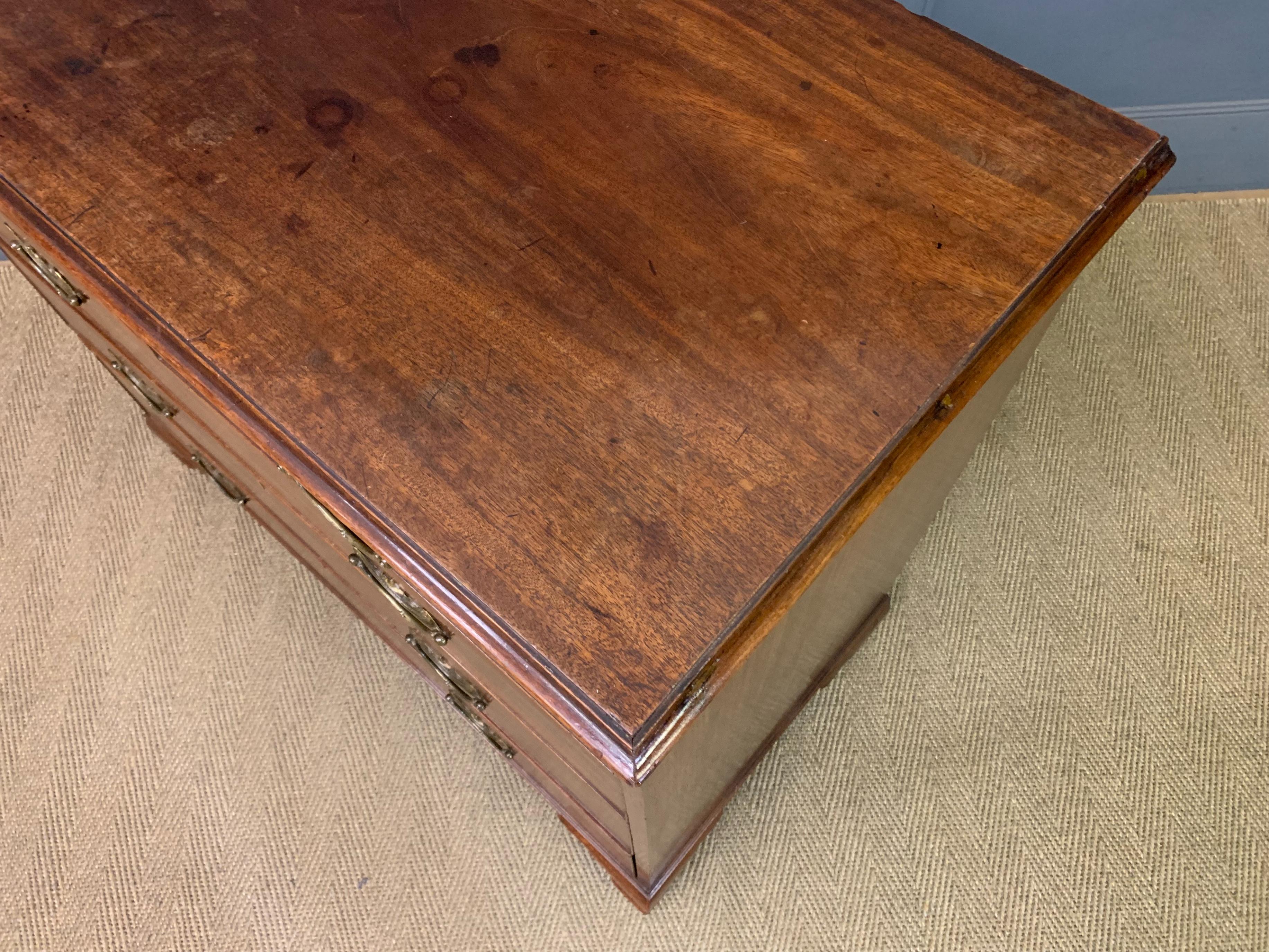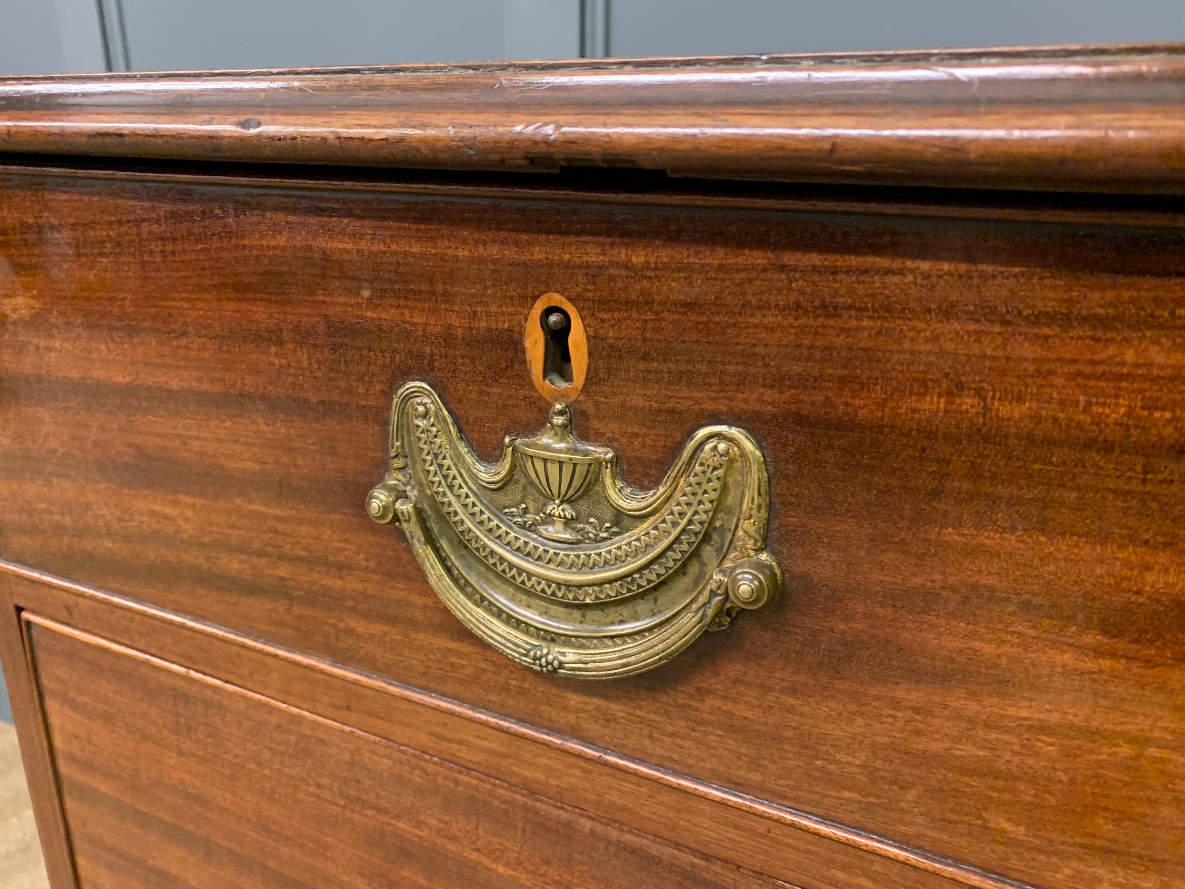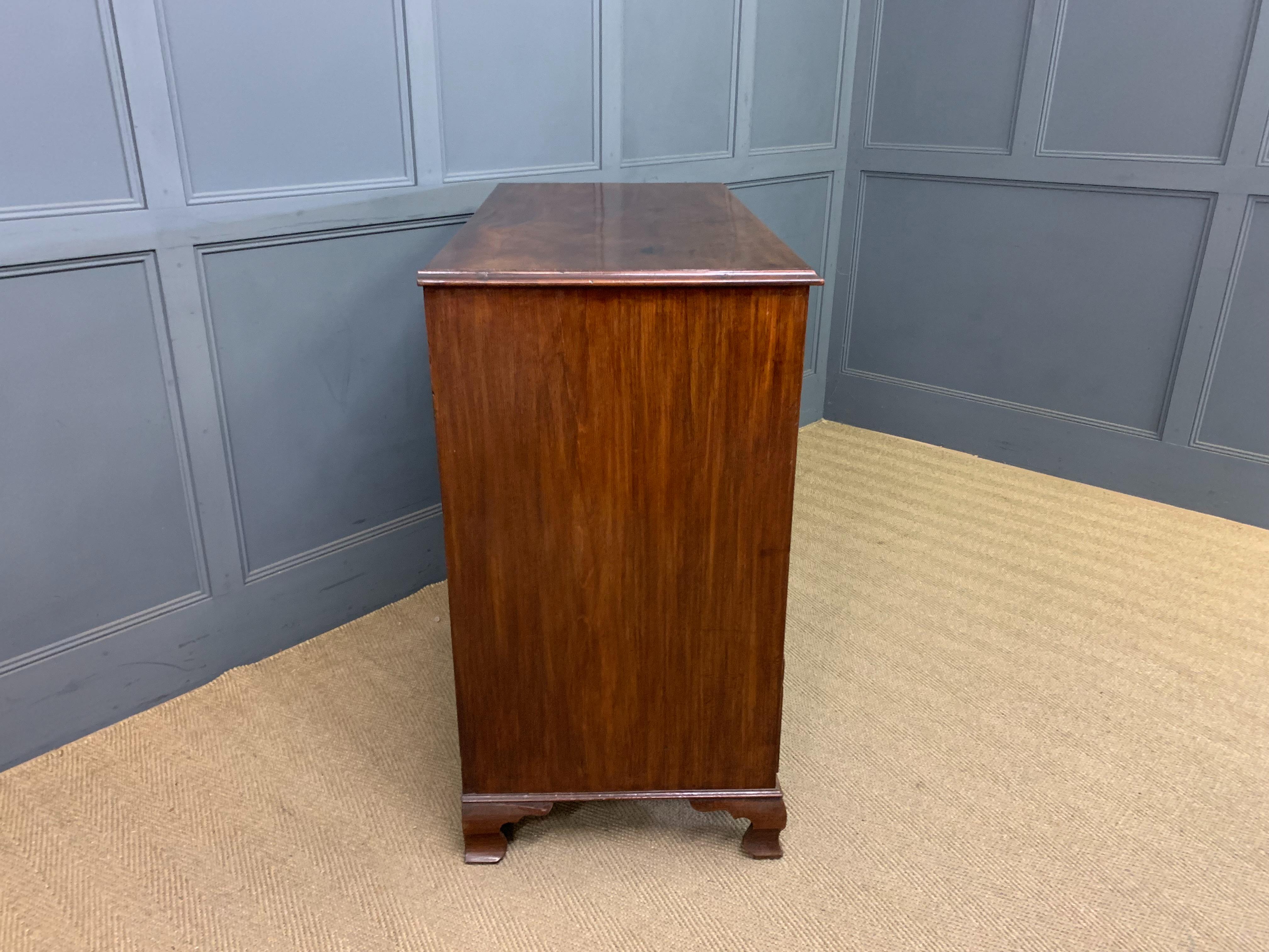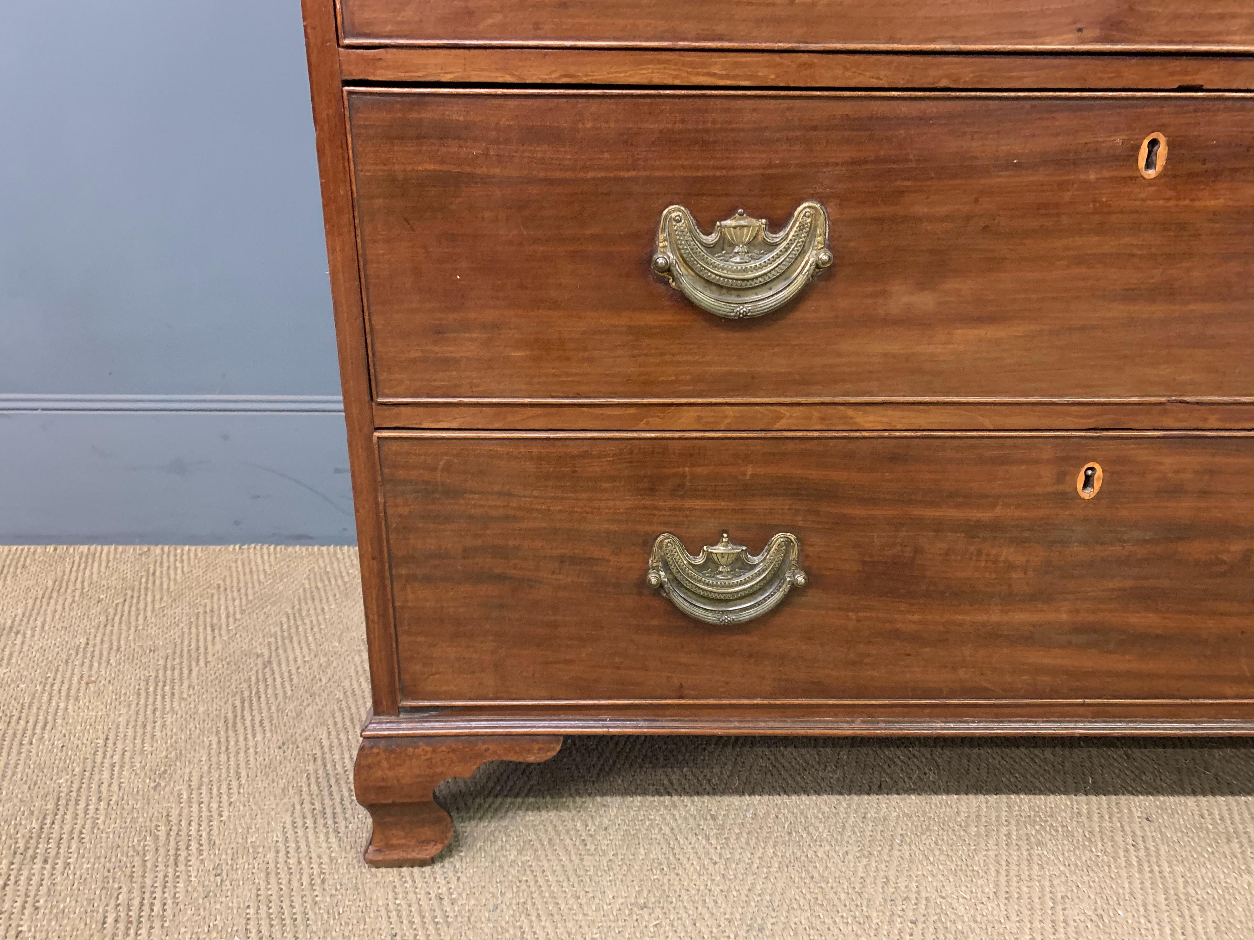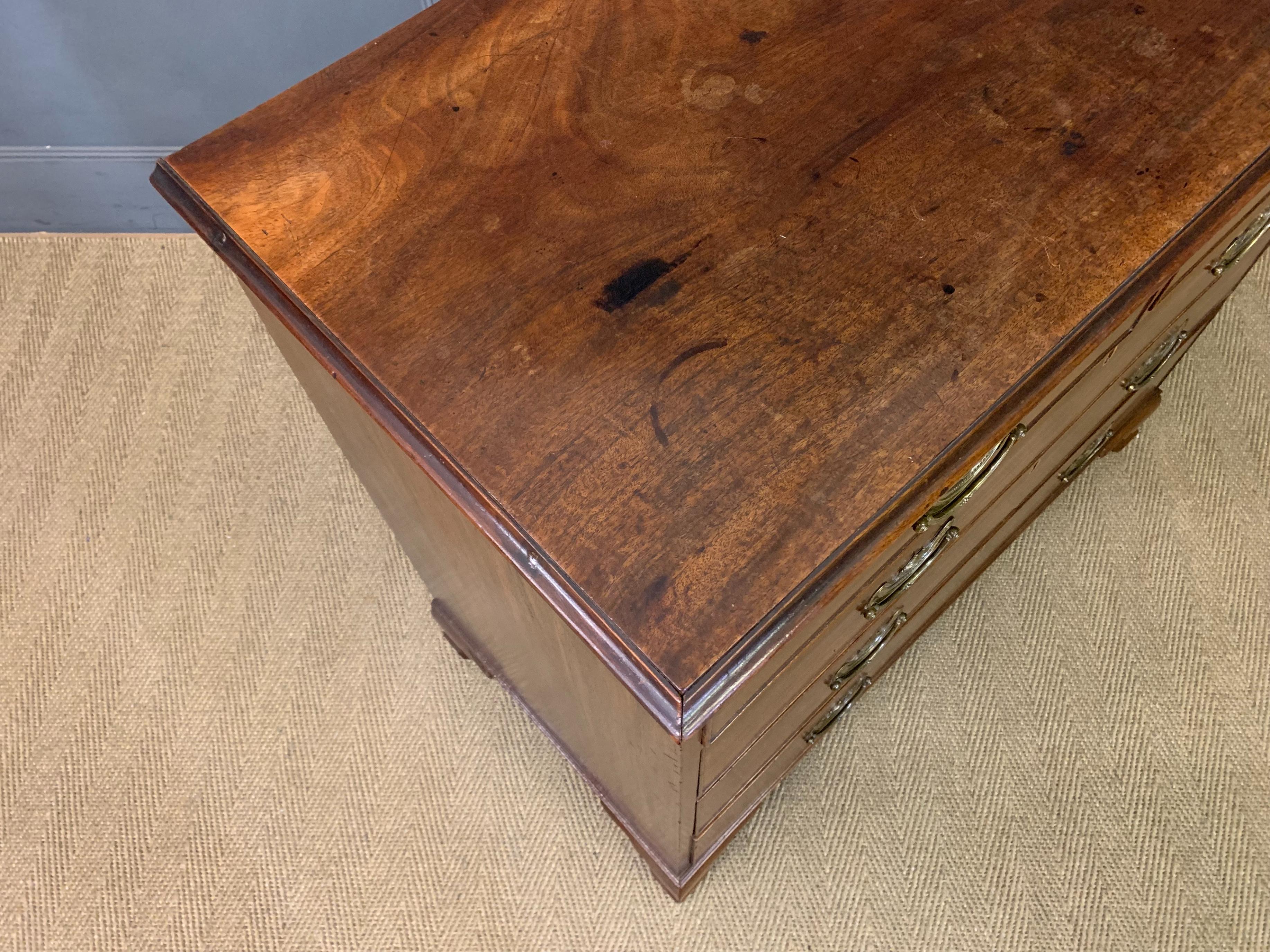 A charming George III period mahogany chest of drawers retaining its original superb solid brass handles. Well constructed in solid mahogany with solid oak drawer linings. With satinwood escutcheons. Retaining its original locks and bold solid brass handles. With an arrangement of 2 short over 3 long, graduated drawers. All standing on ogee bracket feet. Cleaned and waxed in our workshops and now offered for sale in very good original condition, with a warm colour and patina. With minor imperfections , adding character and befiting of a chest 250 years old.