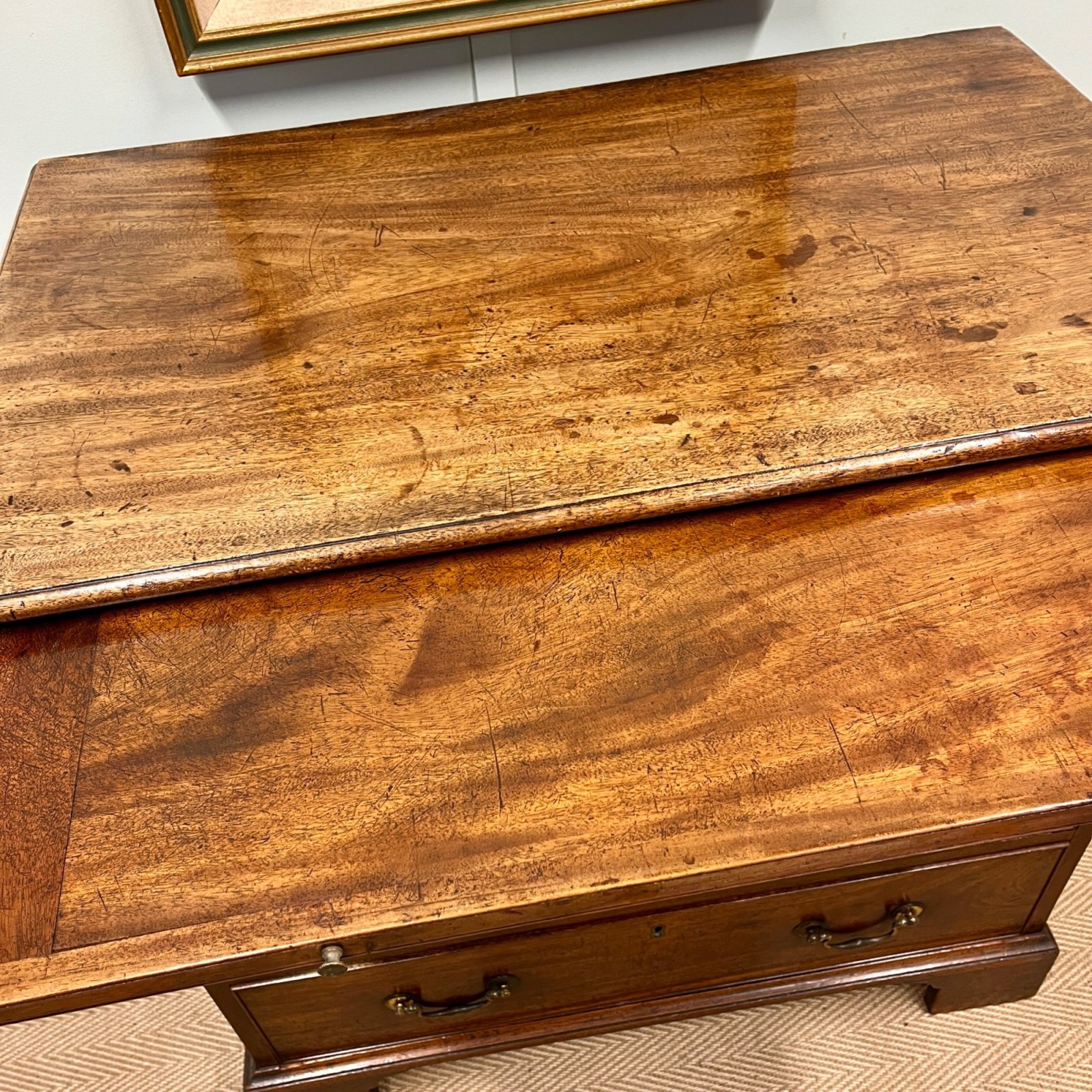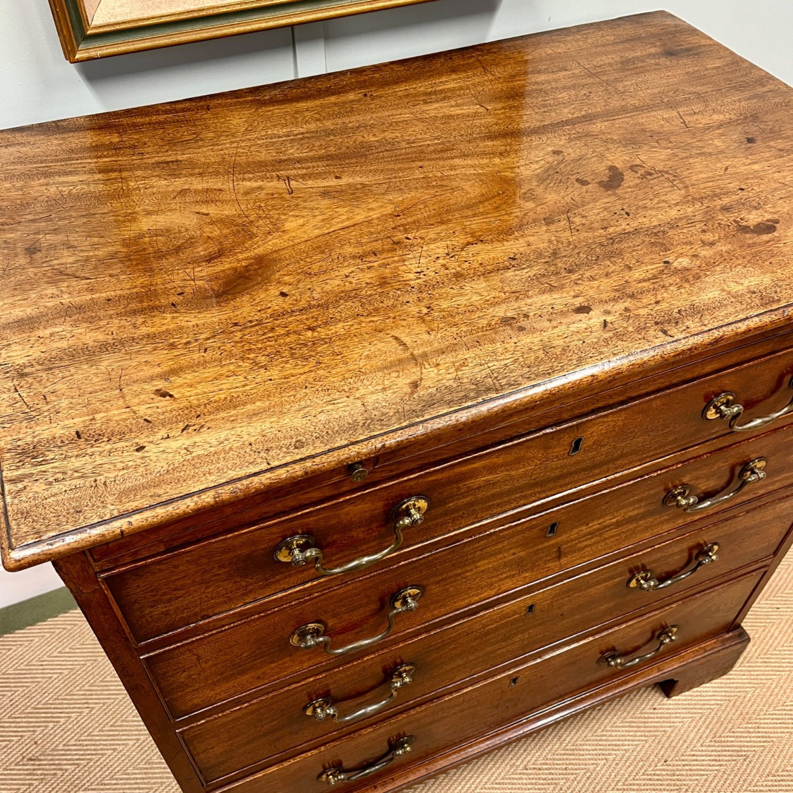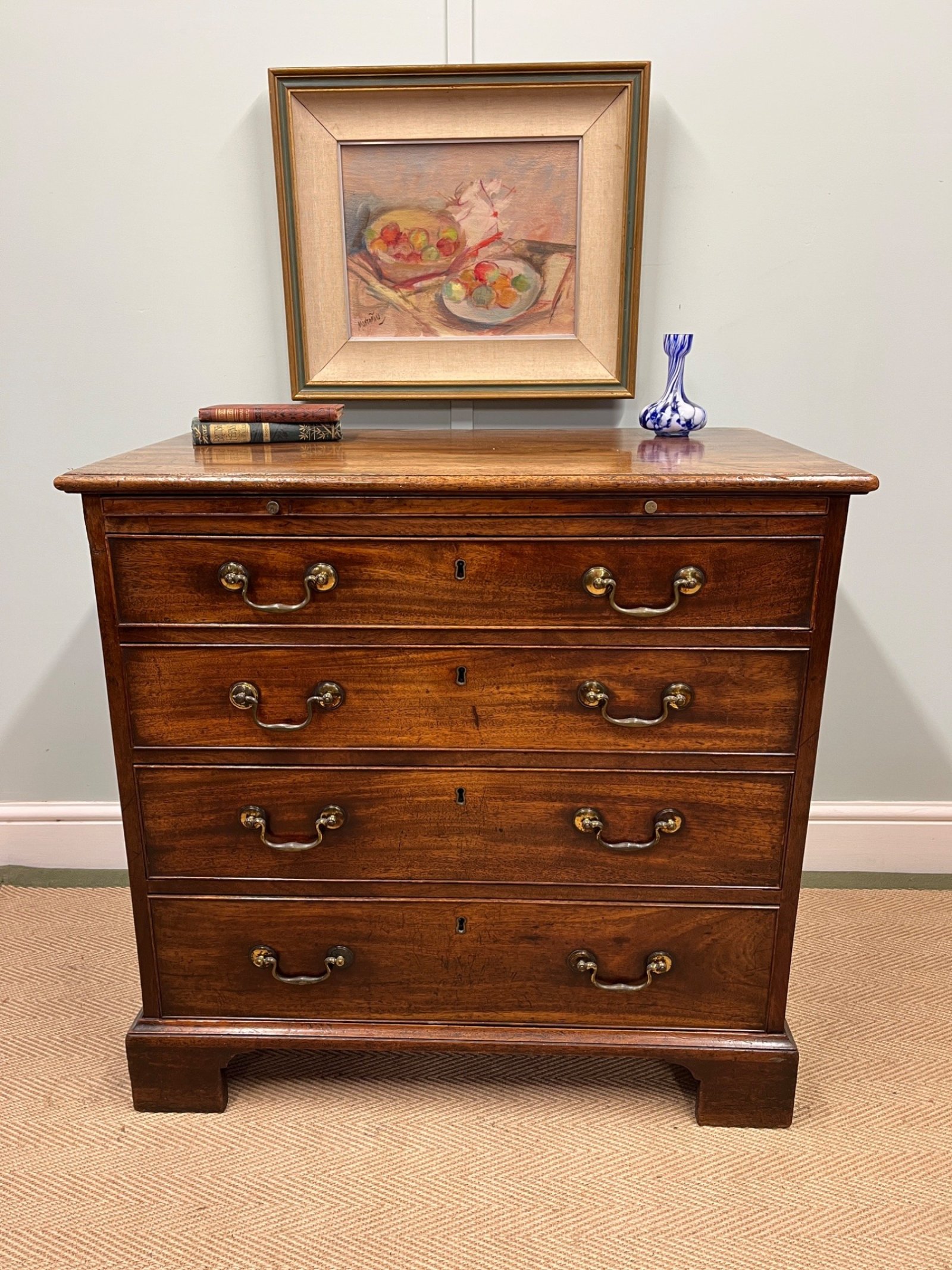 A wonderful pale mahogany Georgian chest of drawers. With brushing slide and original swan neck handles. This chest is in really fabulous condition throughout.