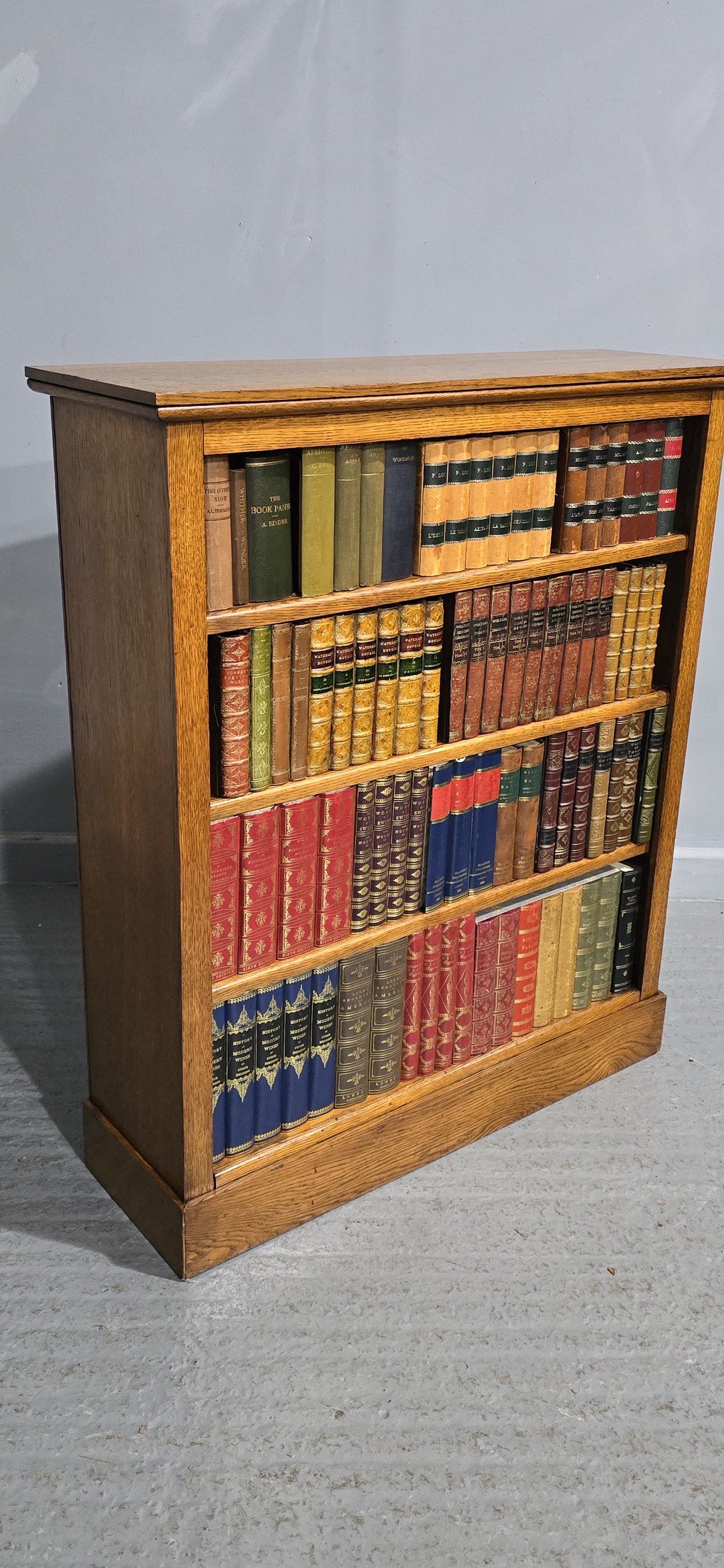 A very good Edwardian Golden oak open adjustable library bookcase with three shelves, in very nice original home ready condition.
