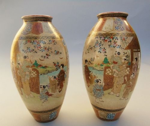 Good Pair Of Antique Satsuma Vases By Ishiyama