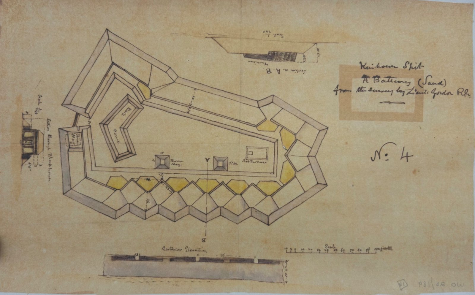 The primary fort, a stone-built, square structure with bastions, mounted 50 guns. Some of these were installed in protective casemates, while others were mounted en barbette, firing over the parapets.