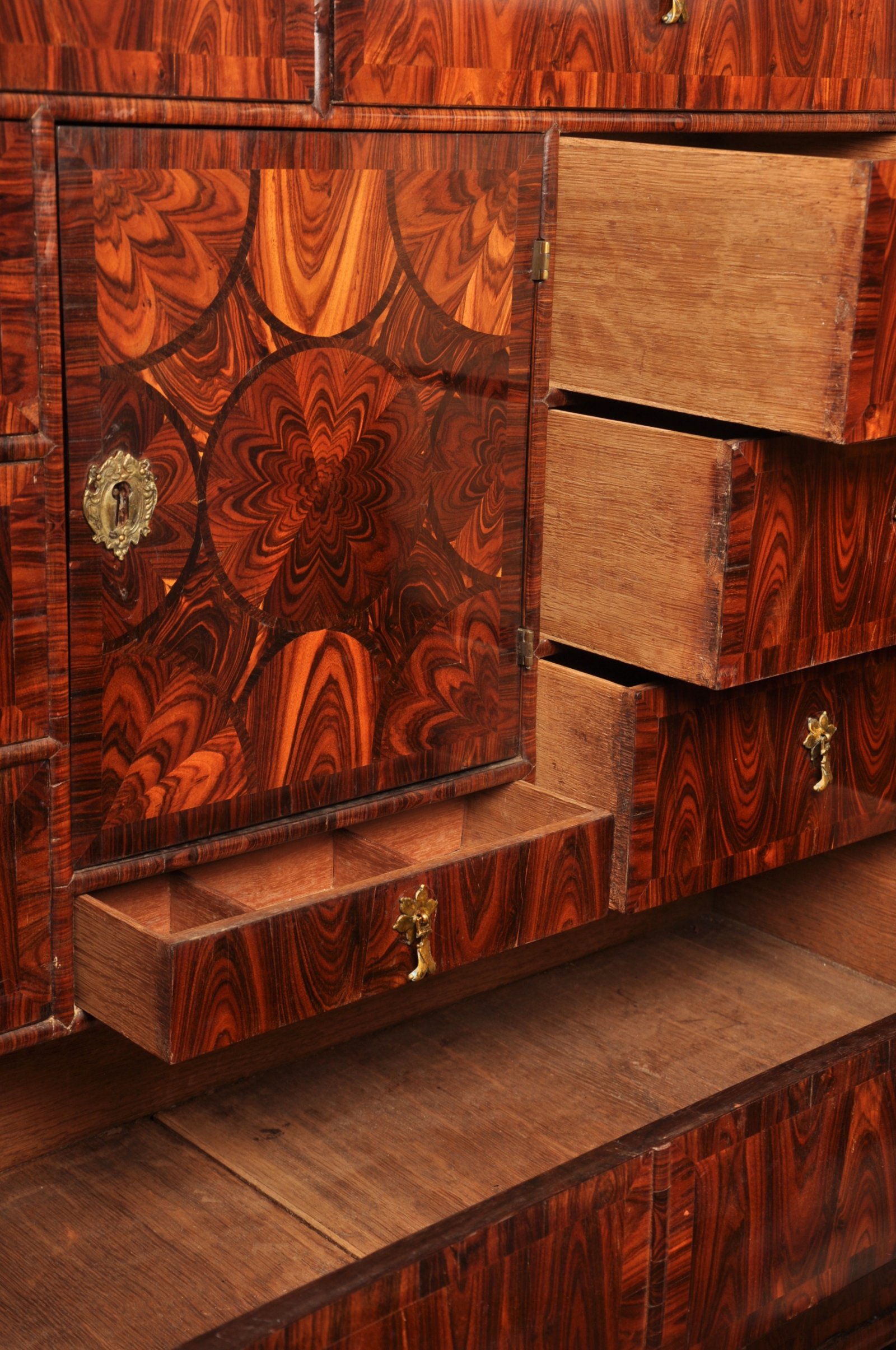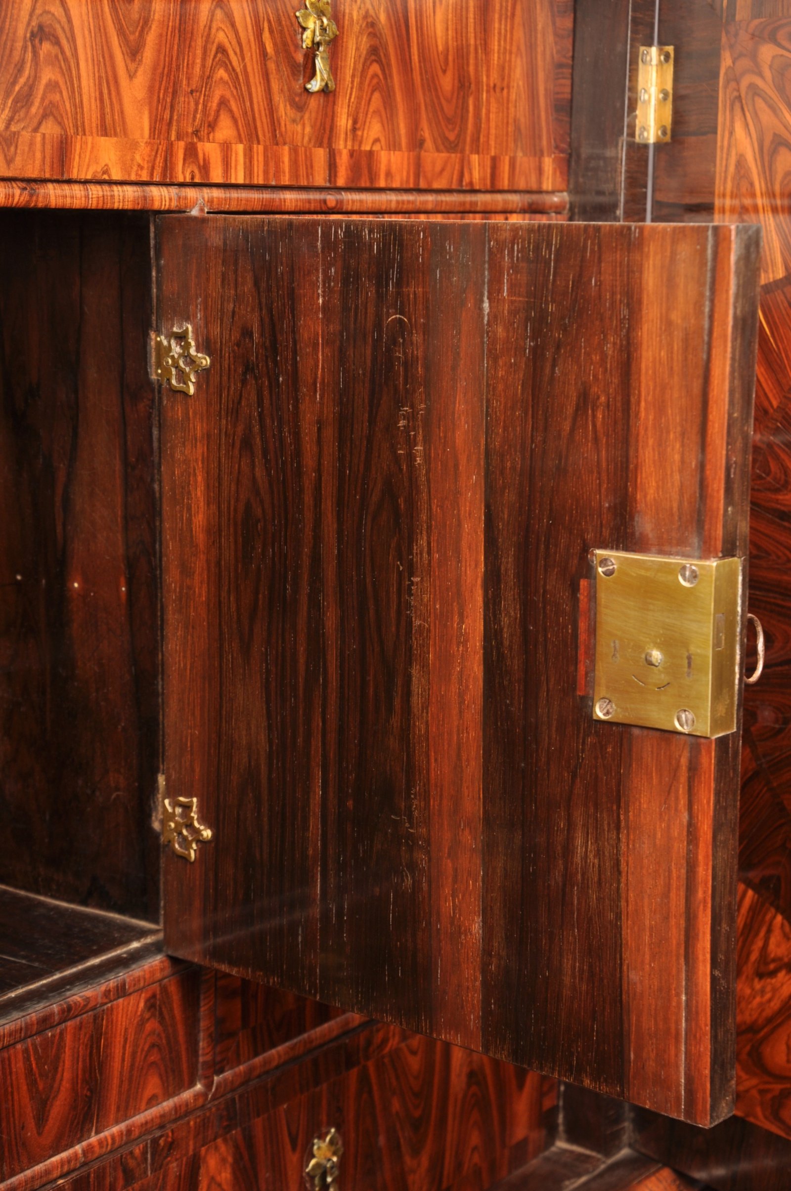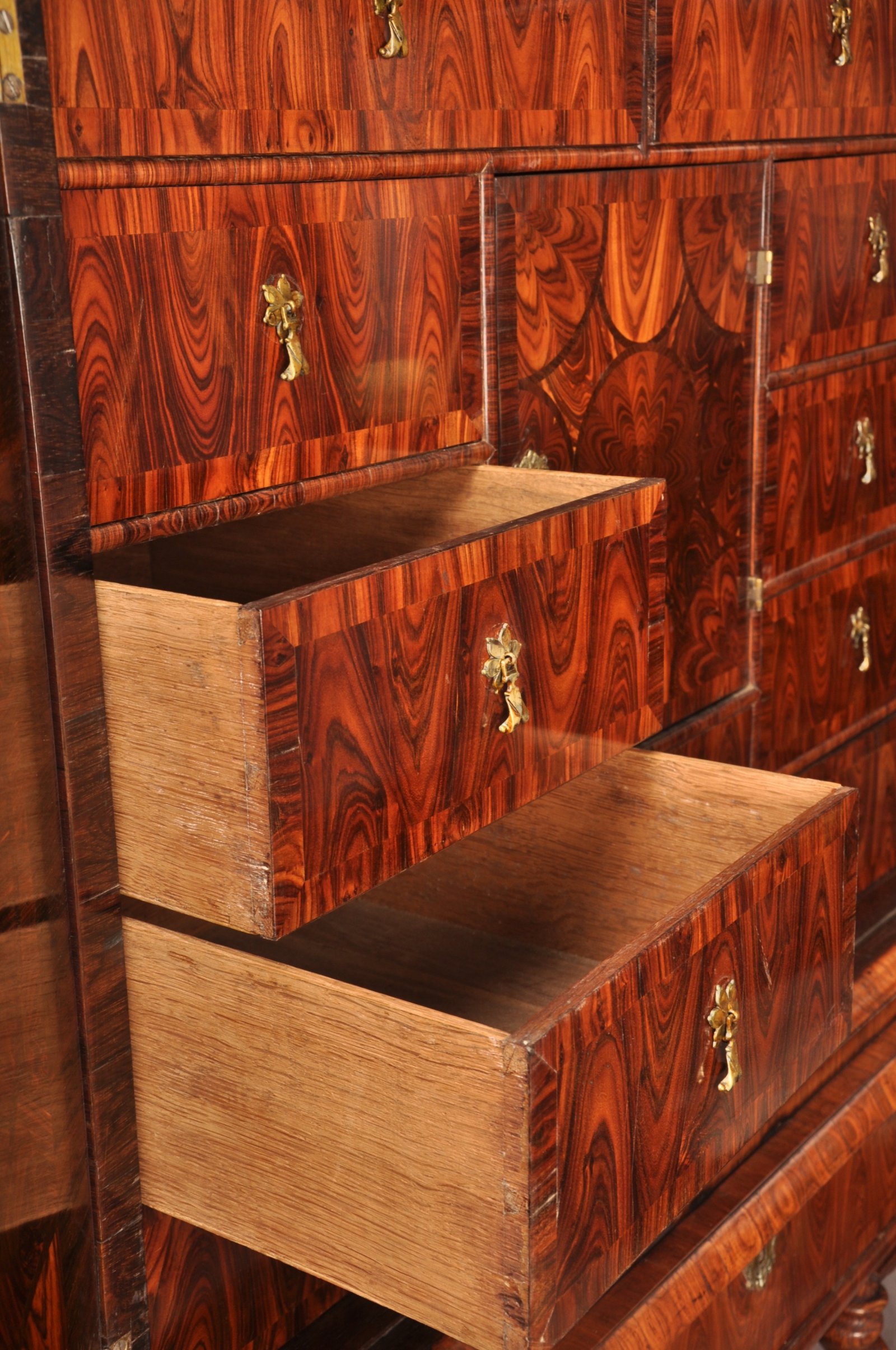 Kingwood was the most expensive wood of the 17th Century. Thanks to the fabulous work of the furniture historian Adam Bowett we know that Cabinets of this type were made by Thomas Pistor who is thought to be one of the most important makers of the period and who supplied furniture to Levens Hall and other fine houses.